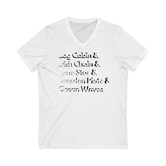 Quilt Pattern Tee Shirt V Neck- Quilter- Quilt Collector Tee- Unisex Jersey Short Sleeve V-Neck TeeRegular price From $30.00 CADRegular priceUnit price / per-