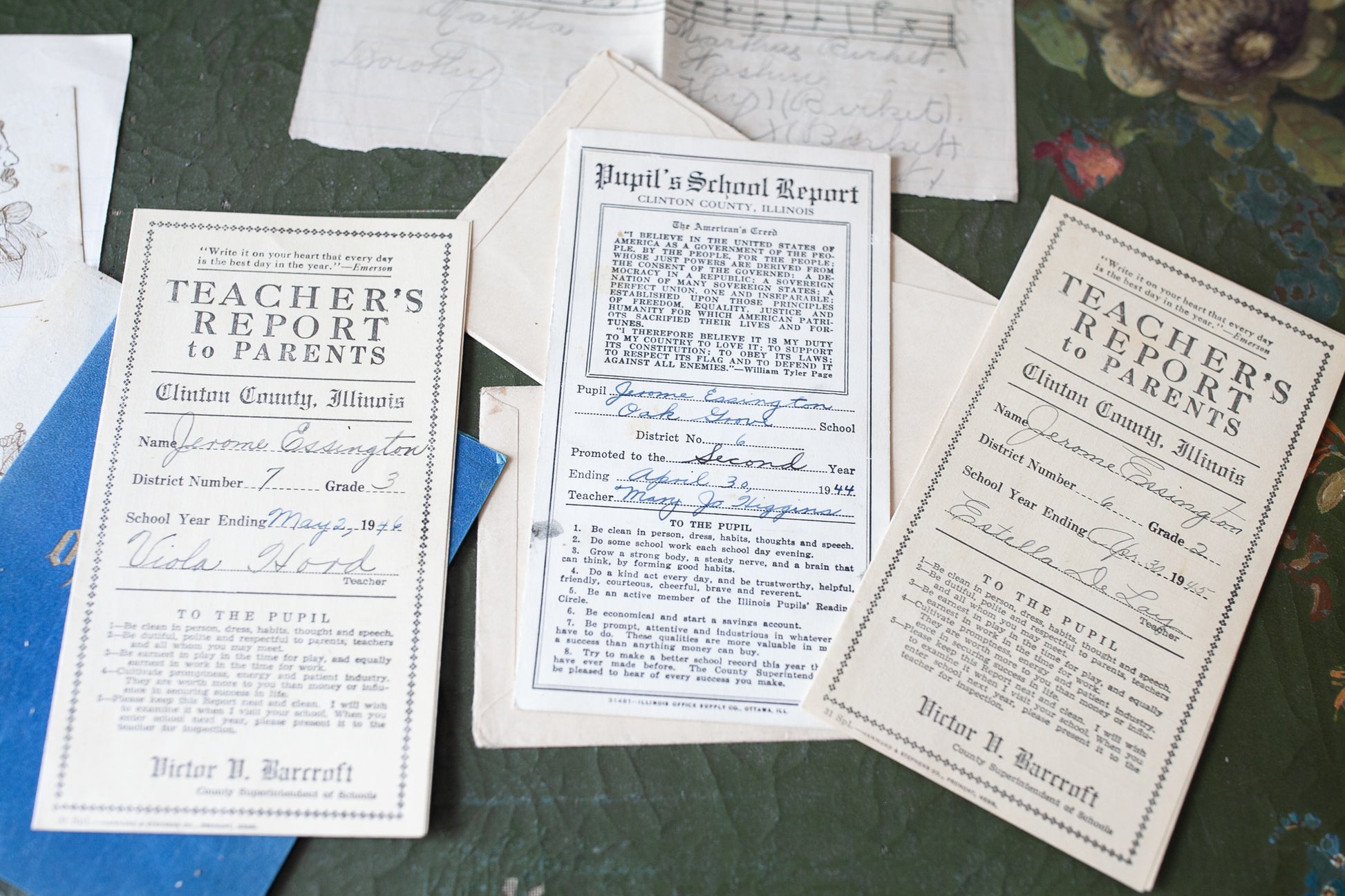 1940s Paper Ephemera- School Report Cards- Vintage Ephemera
