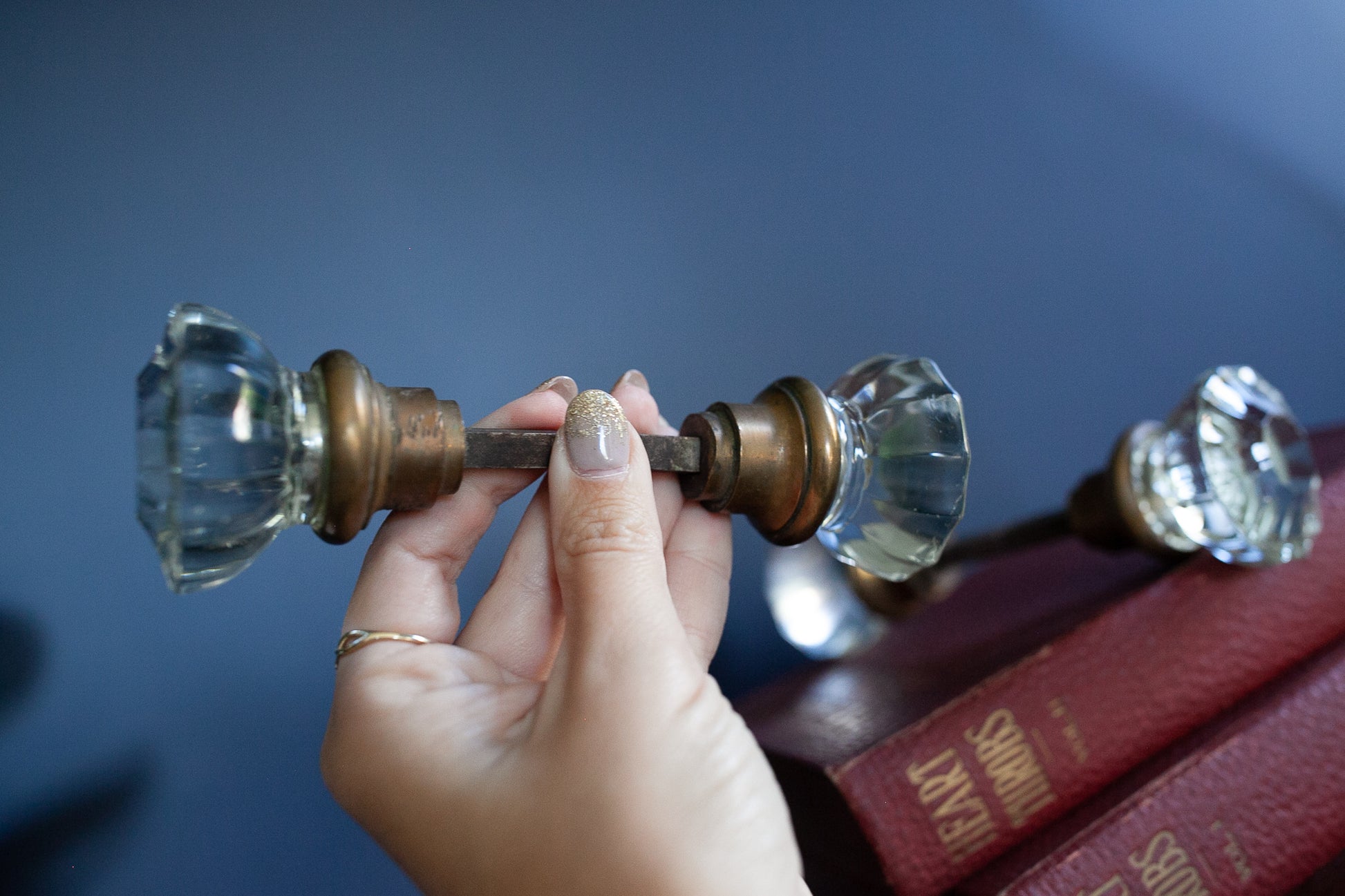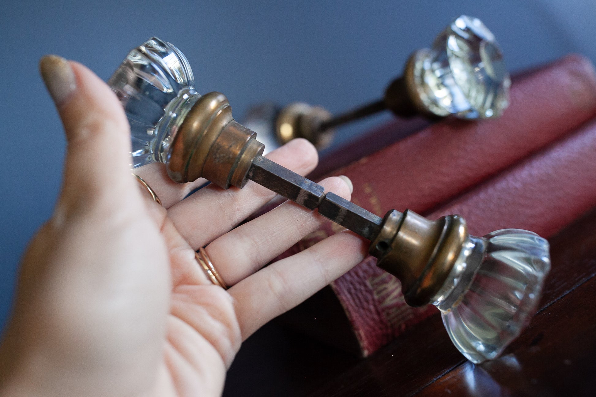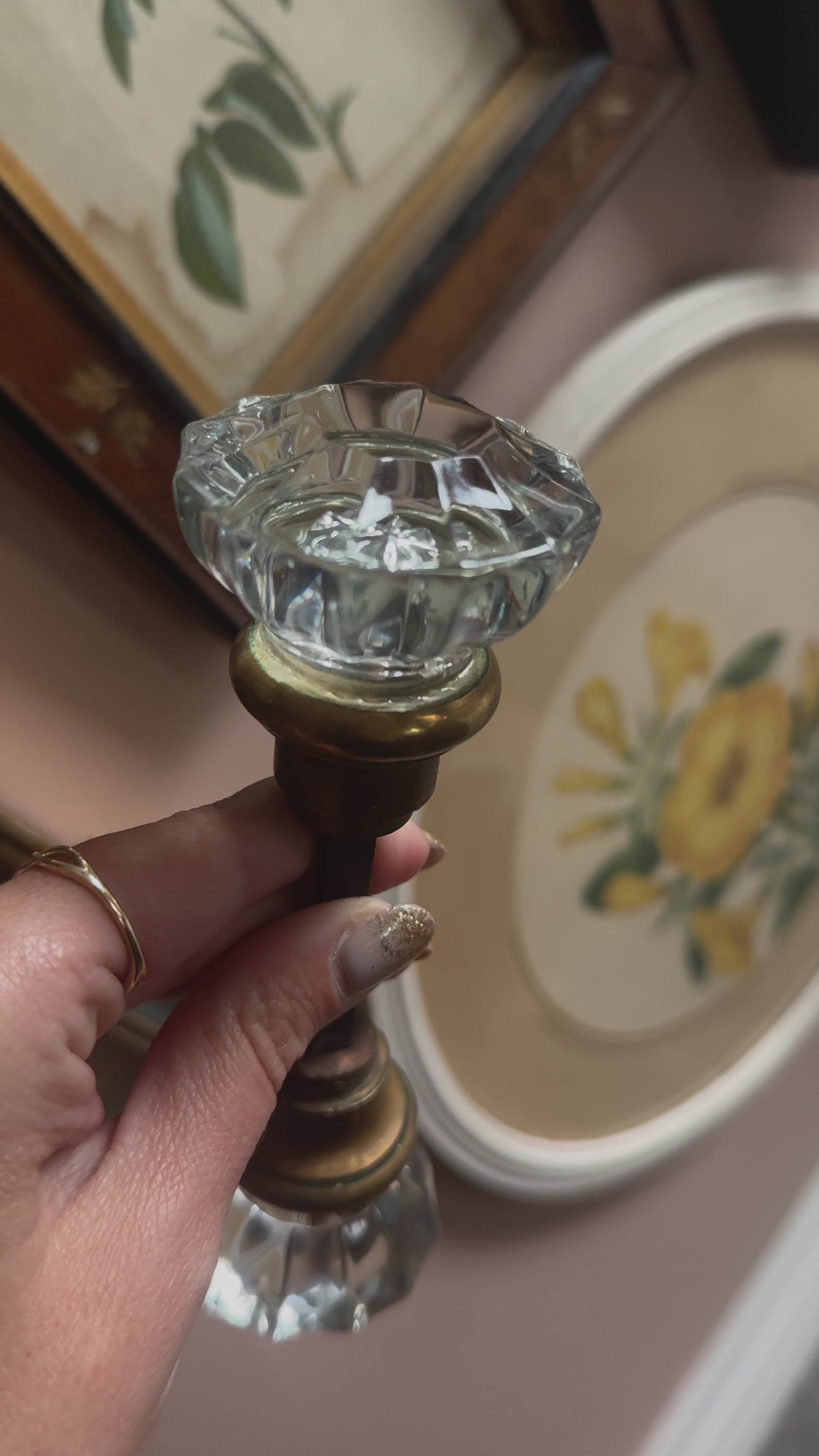 Antique Crystal Glass 12 Point Door Knob Set With Spindle