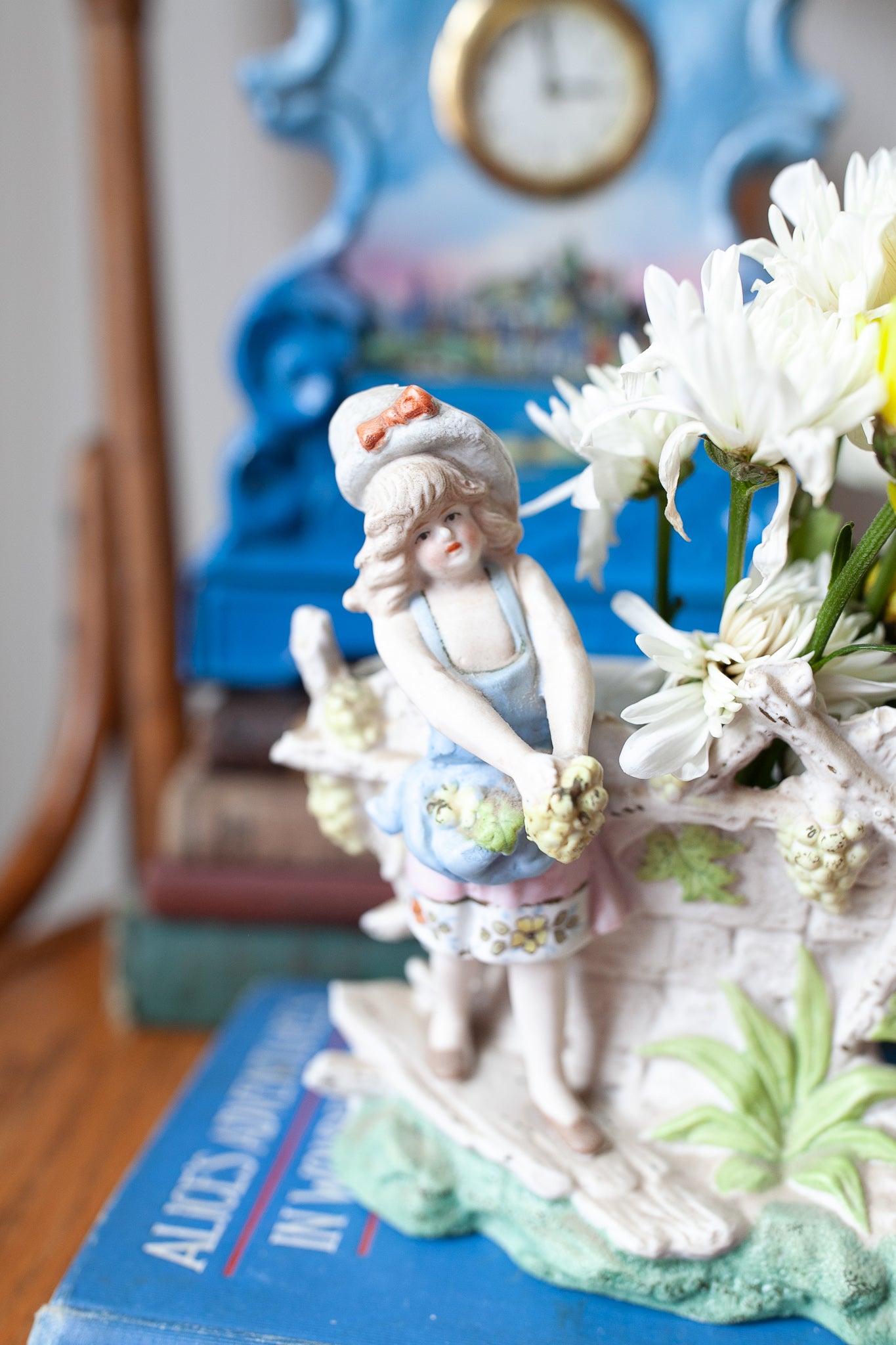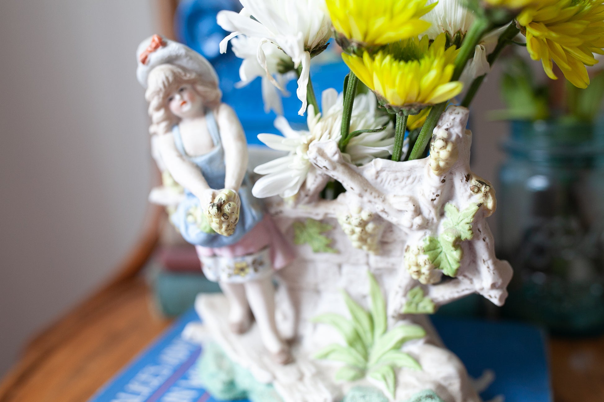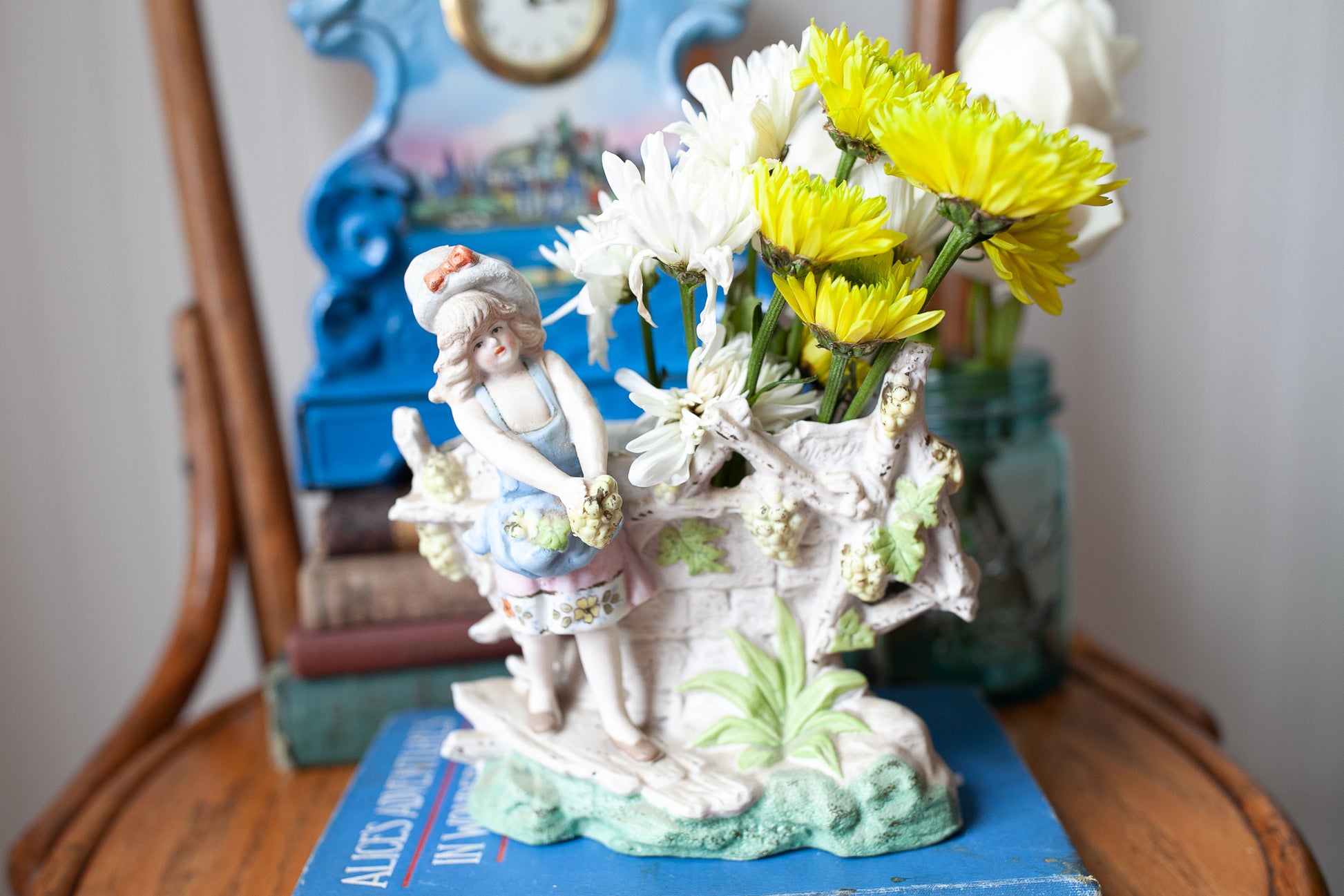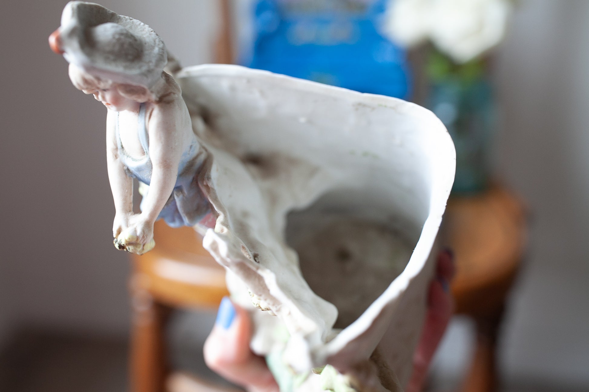 Antique German Carl Schneider Bisque Porcelain Young Girl with Grapes Vase