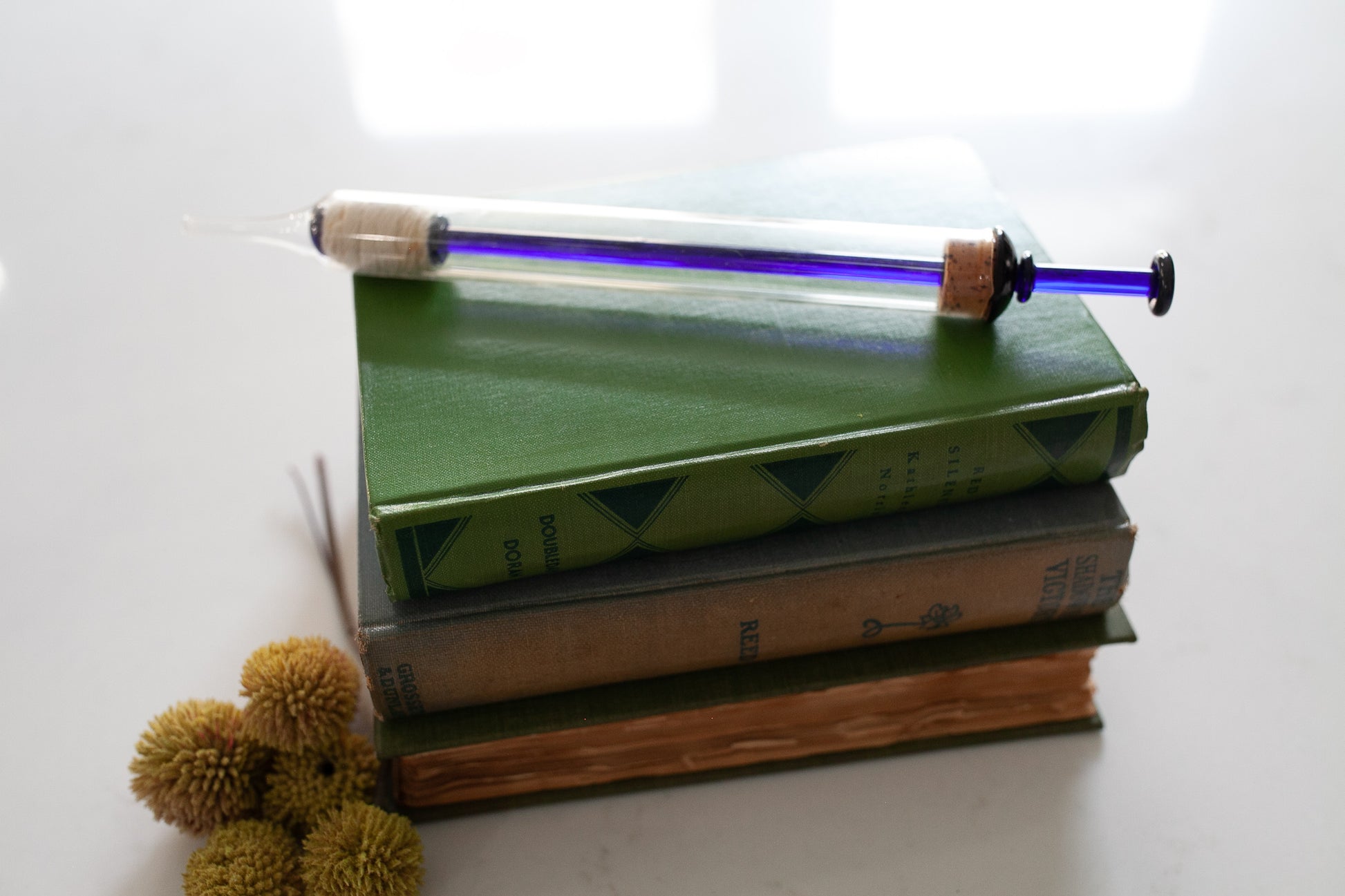 Antique glass medical syringe with blue glass plunger-
