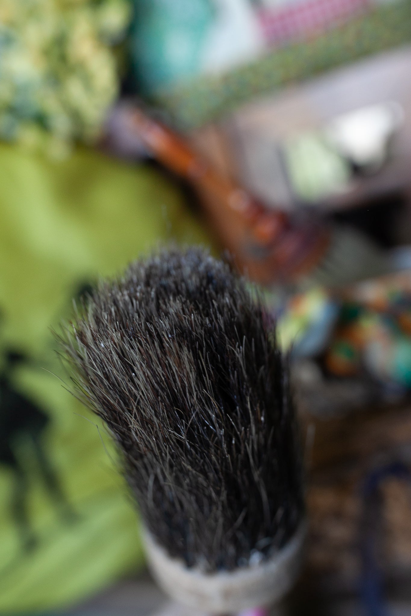 Antique Horse Hair Round Brush With Wood Handle and Natural Bristle