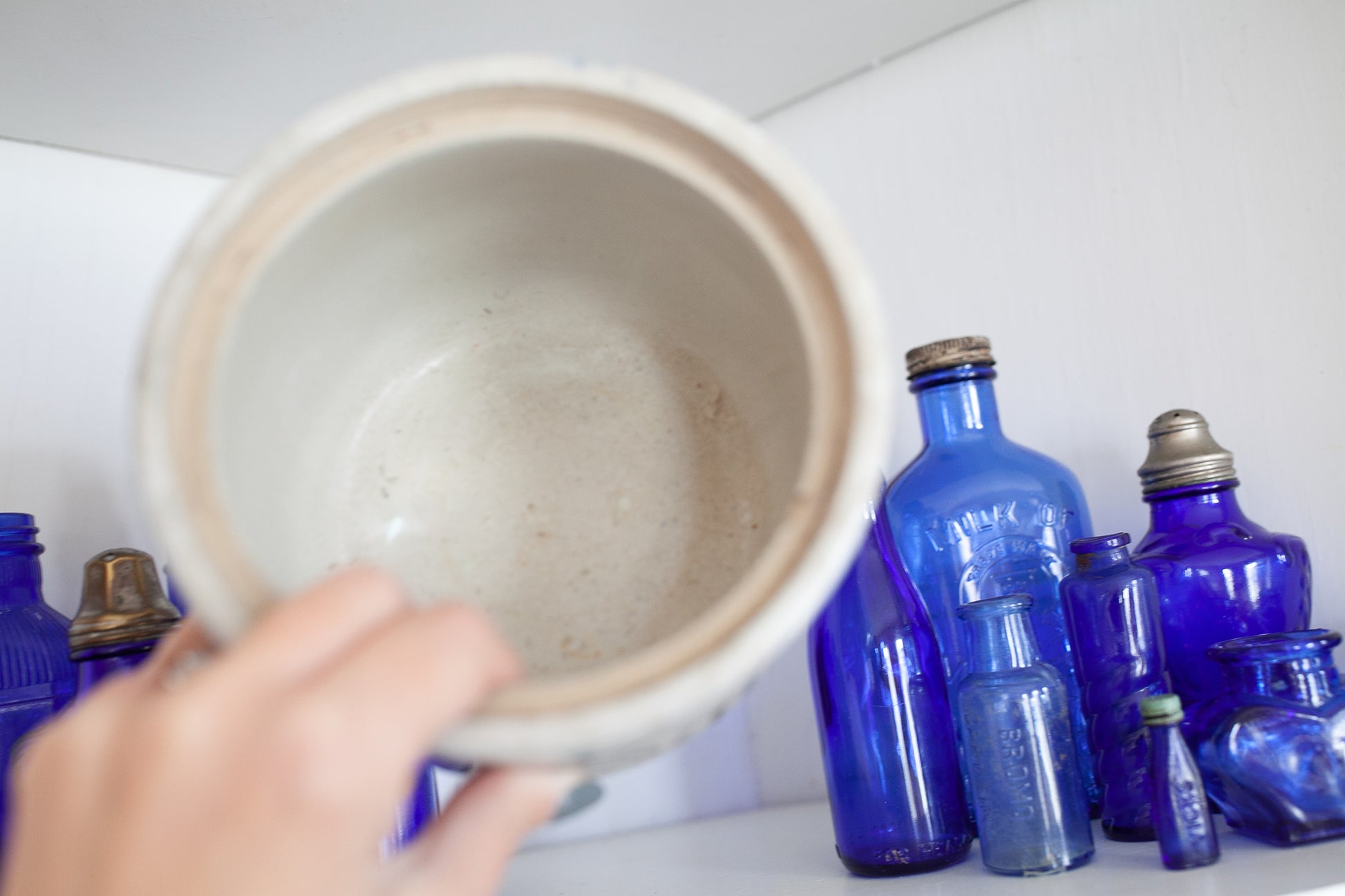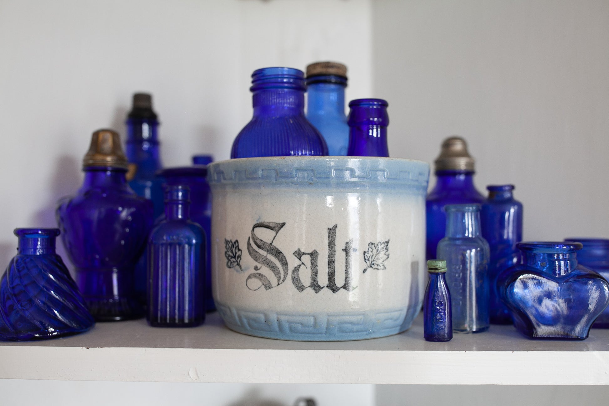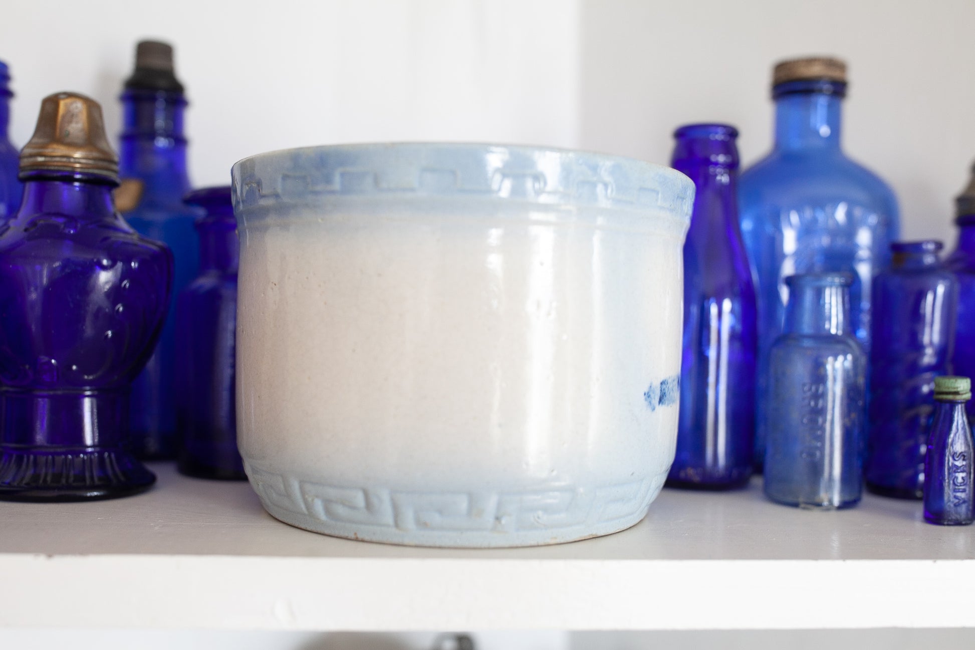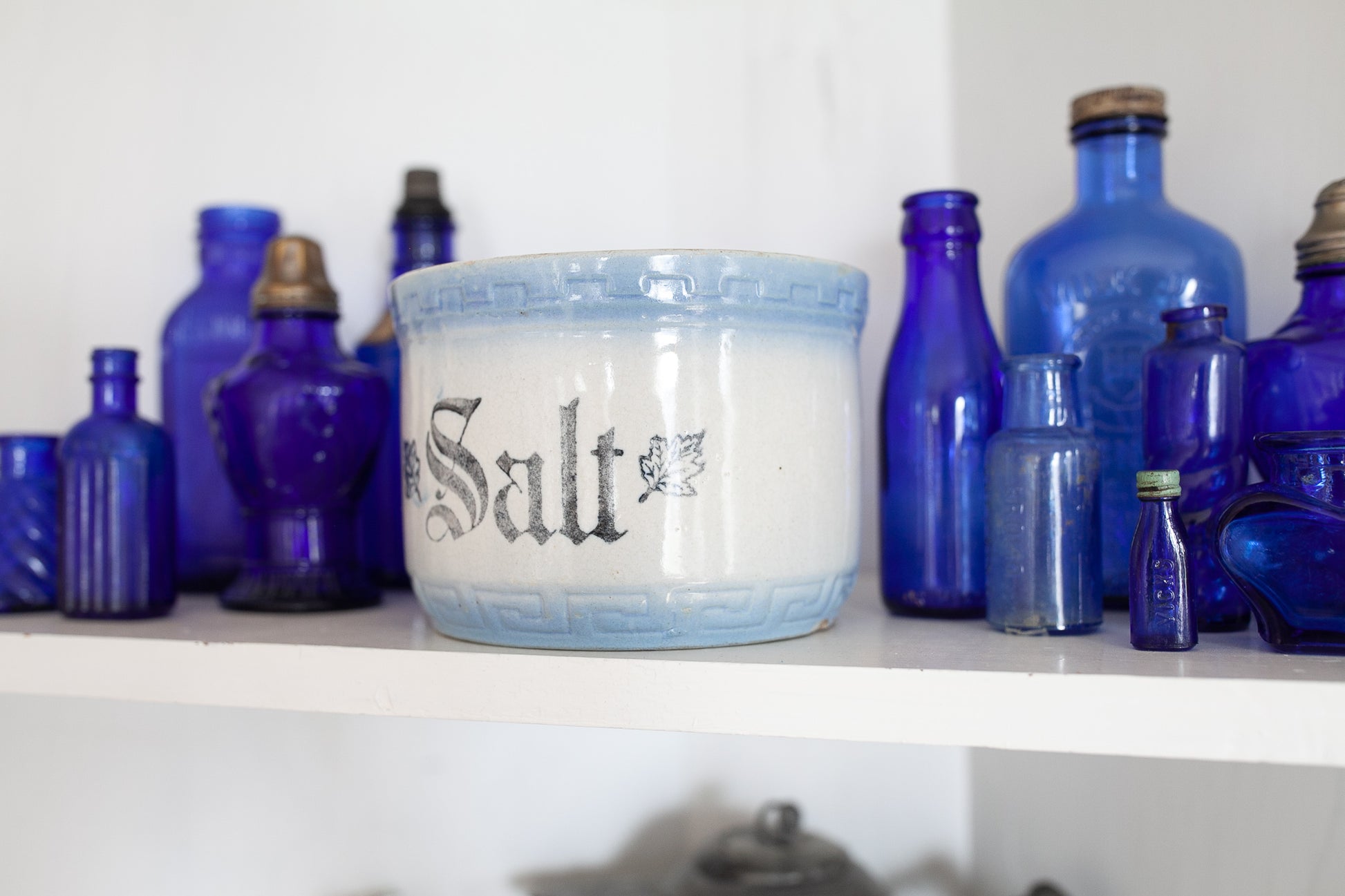 Antique Salt Crock - Salt Stone Bowl - Blue and White