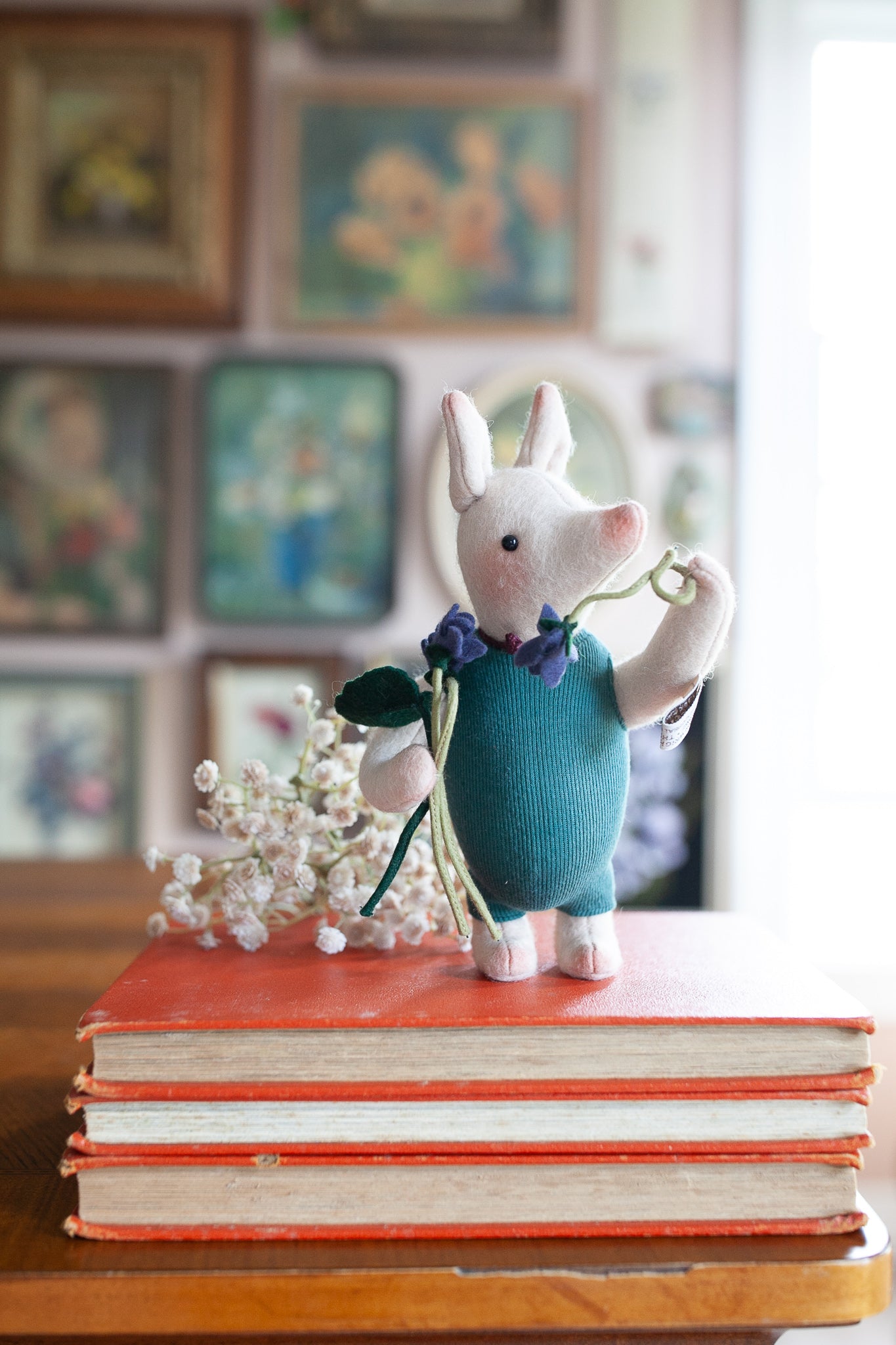 Piglet with Violets by R. John Wright - Vintage Piglet - Winnie the Pooh