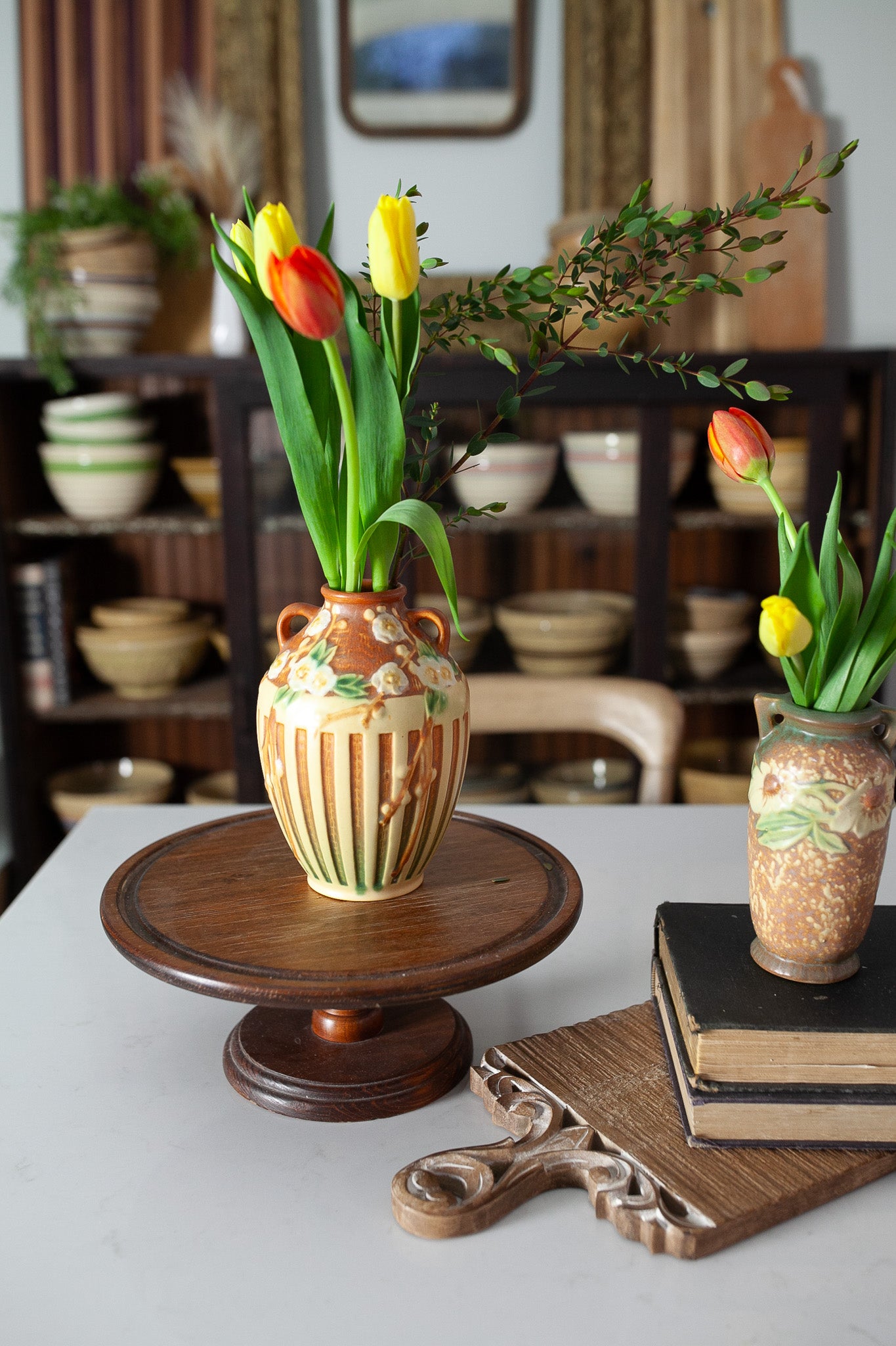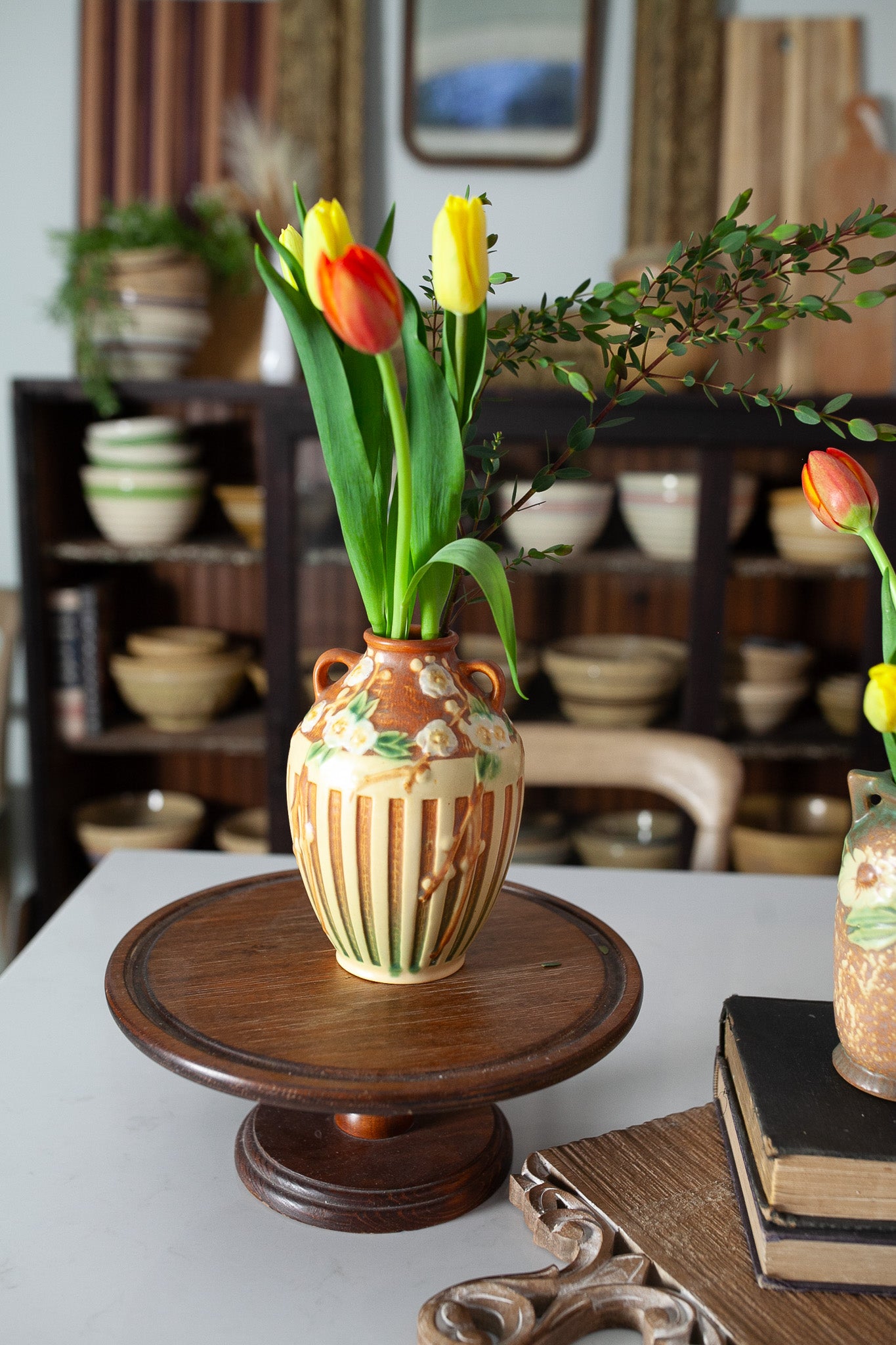 Roseville Cherry Blossom Brown 1933 Vintage Art Pottery Ceramic Vase 622-7