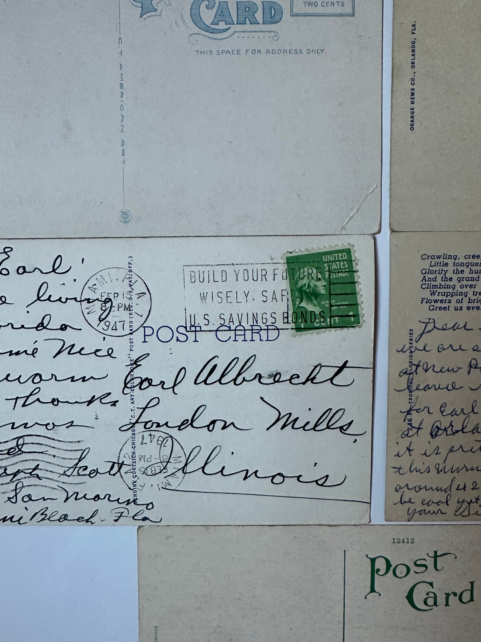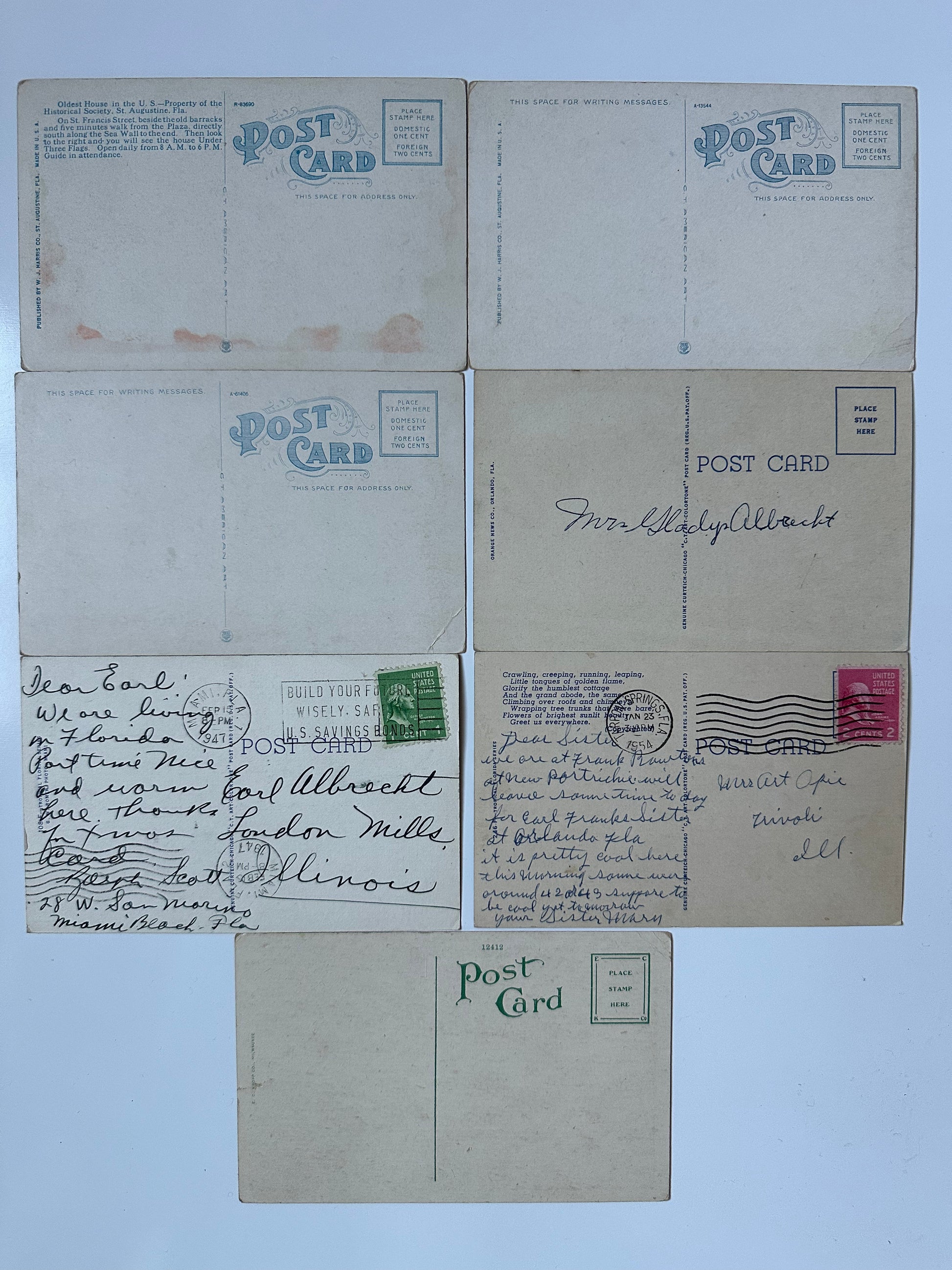 Enhance your collection with this set of 7 vintage Florida Postcards. Perfect for collectors, these used postcards are a must-have addition to your collection. 3 are written on.