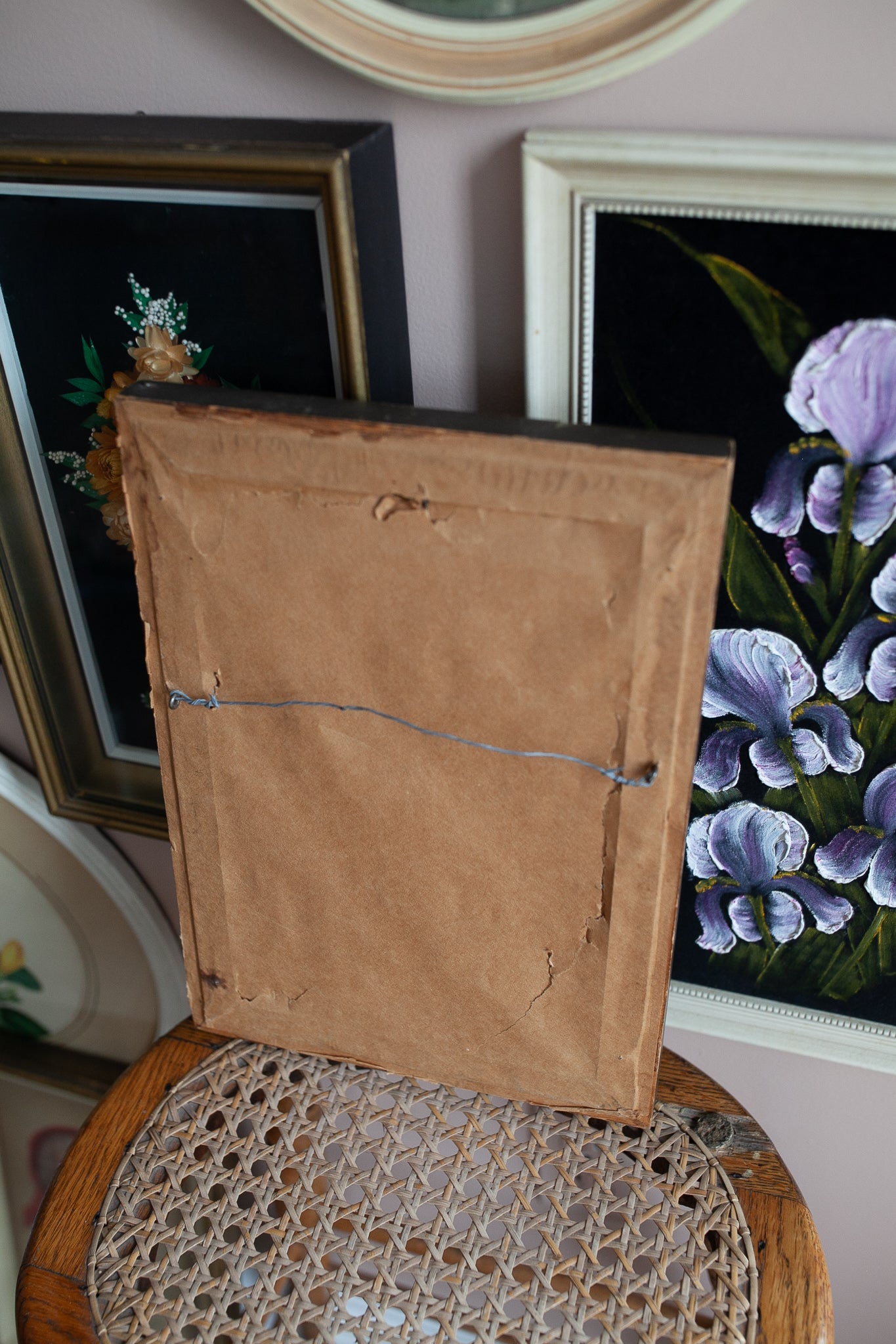These are so cool! To me they look like an off duty Santa and Mrs Claus, but they are great portraits! They are about 13."x9.5" each. Both have wires to hang with and some wear, but still in great vintage condition. The man's portrait has a little wear to the actual print, a few white spots.