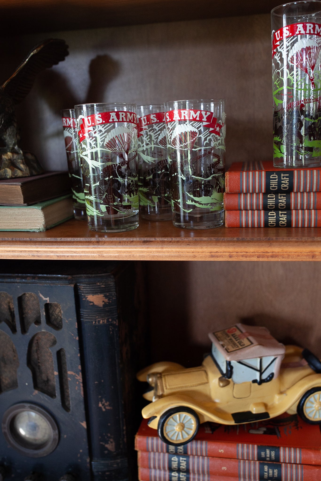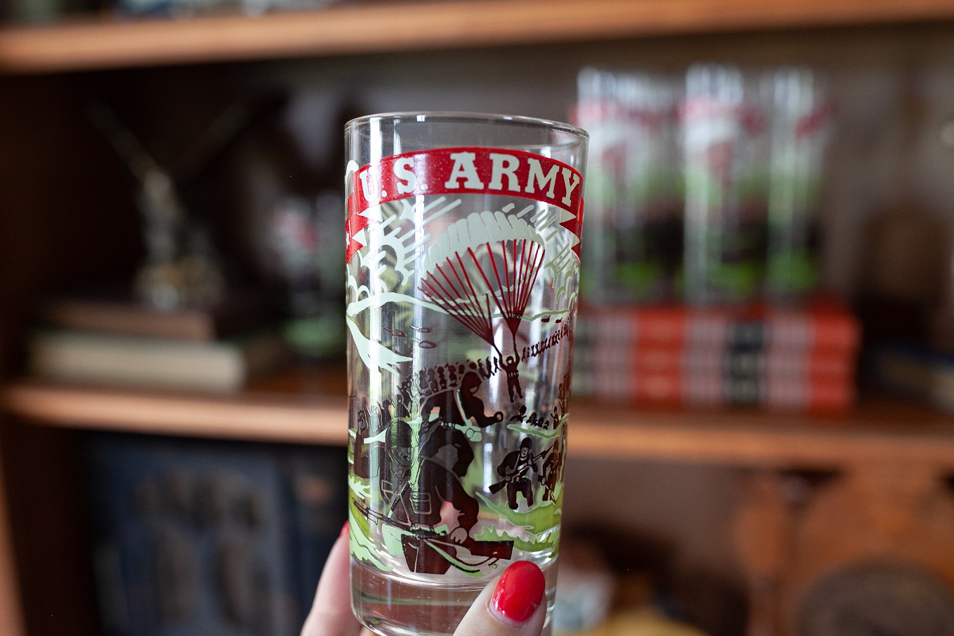 Set of 4 glasses - US Army Glasses measures 5.75" tall and 2.75" diameter each. All 4 in good shape with no chips or cracks.