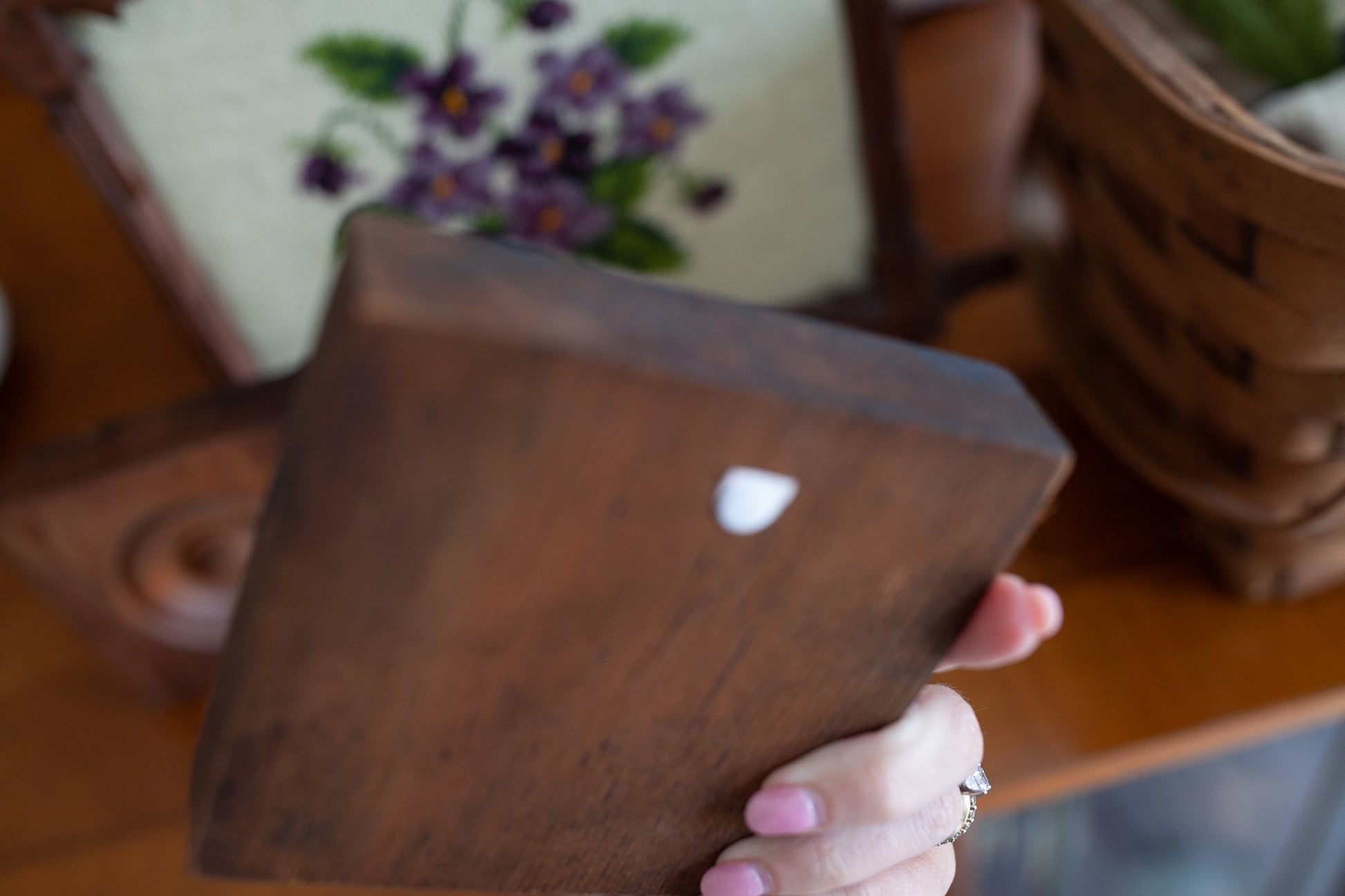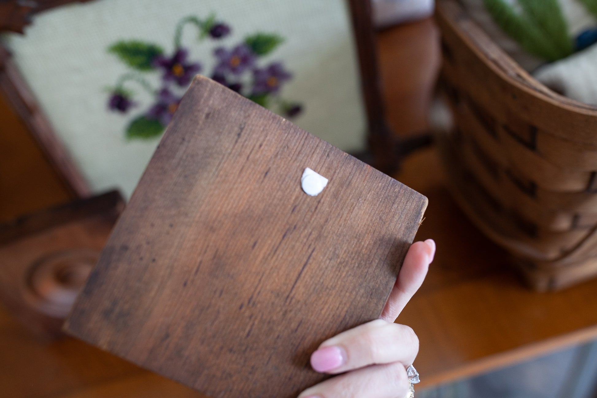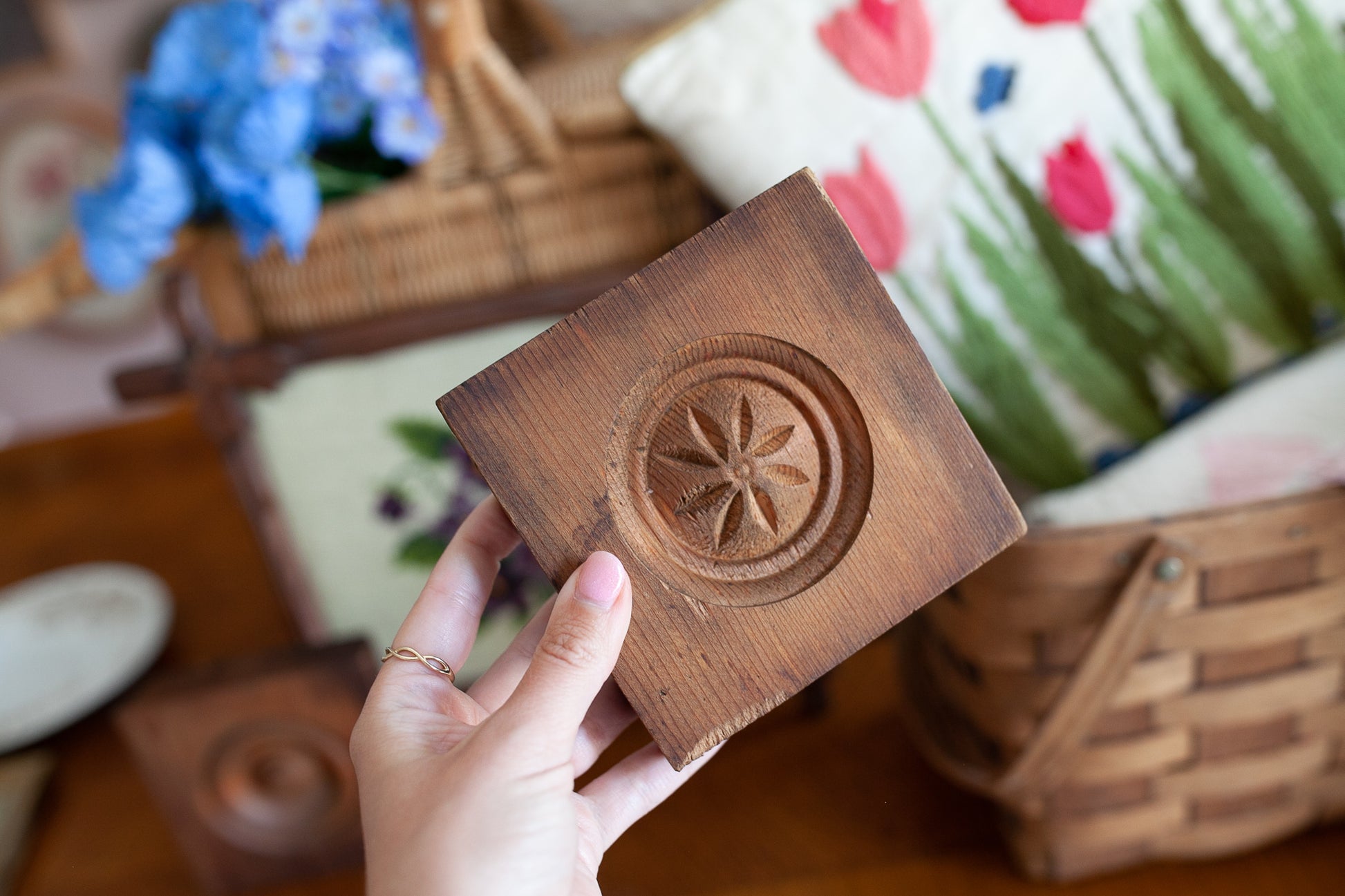 This wood plinth block- 5"x5"x1" in size. The wood is in good vintage shape with some wear around the edges. Fun for decor or use as intended!