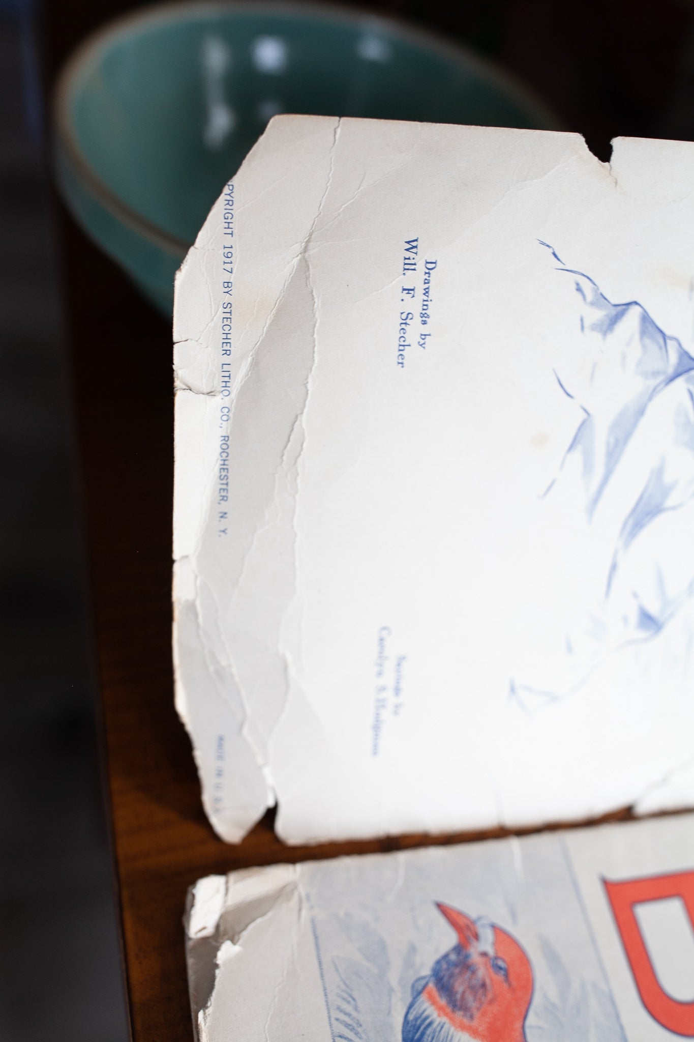 This book is full of gorgeous images! Take a look inside and see the beauty! There is wear to the book especially to the cover with creases and tears- see photos. Some of the pages inside are not held together in the binding any longer. This book is from 1910's illustrated by Will F Stecher Stecher Litho. Softback book -about 14" x7.5" in size