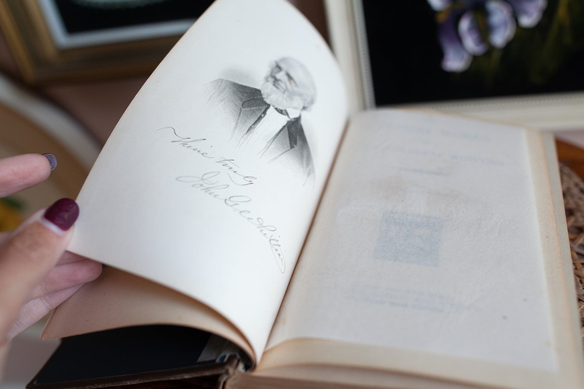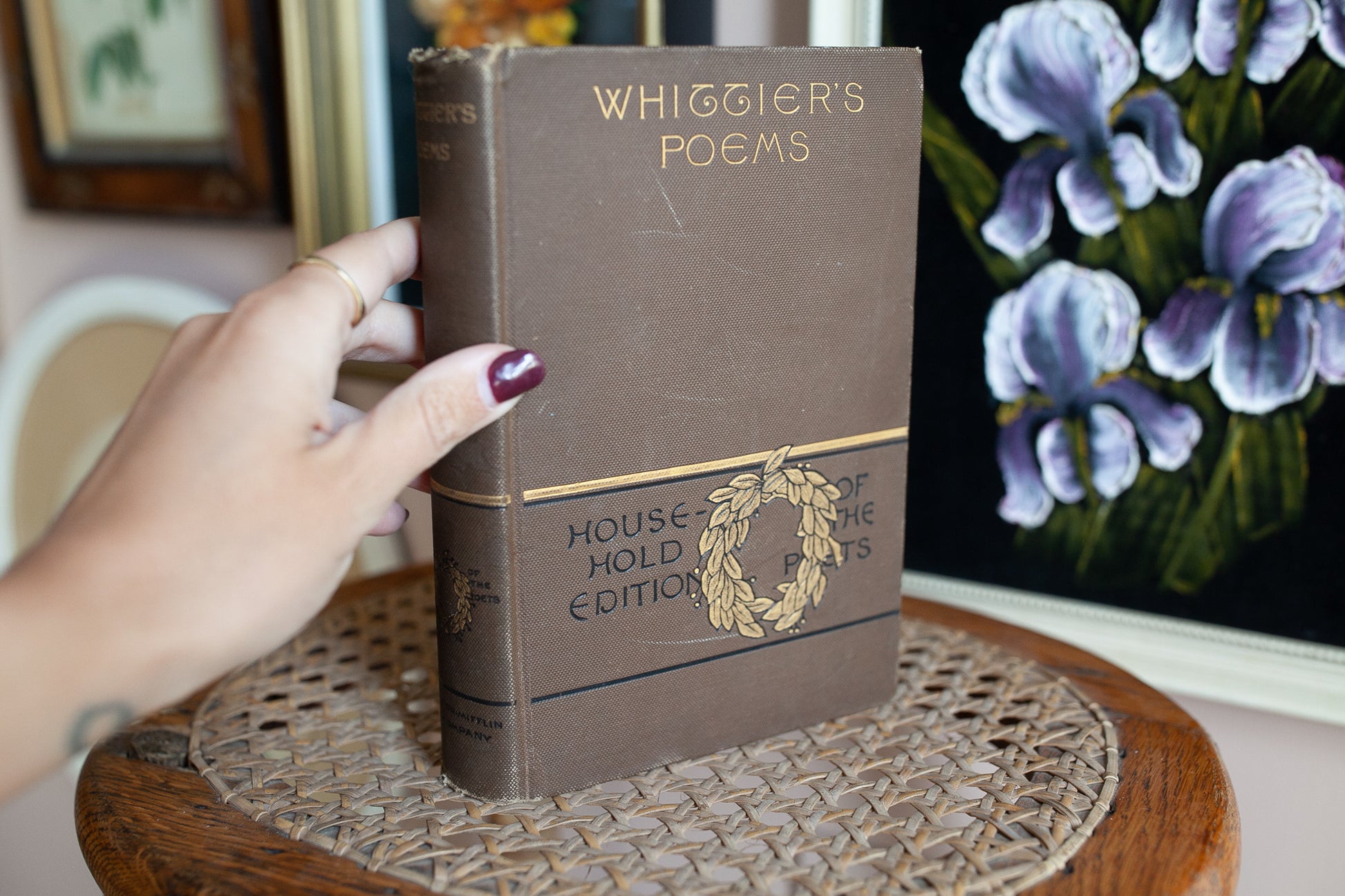 1888 Antique 19th century Whittier poetry book Houghton Mifflin edition-Antique Book- Poetry Book- Household Edition of the Poets