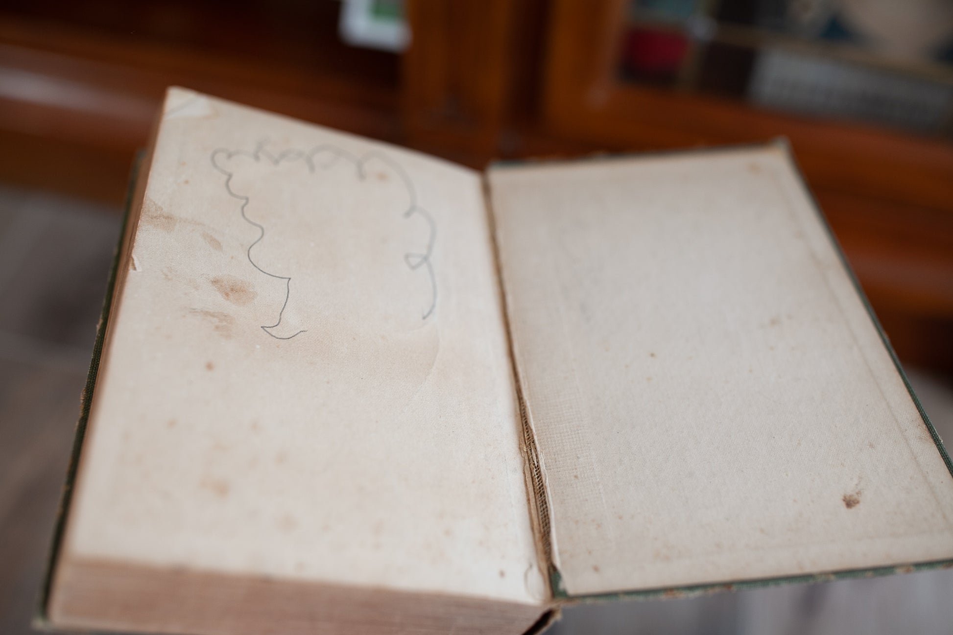 This is an antique book with a green pretty cover! It has wear at the spine inside and the cover is barely holding to the pages. It has 540 pages and an 1897copyright. It has some markings on the front and back page, but the rest look to be clear of markings by pencil or pen.