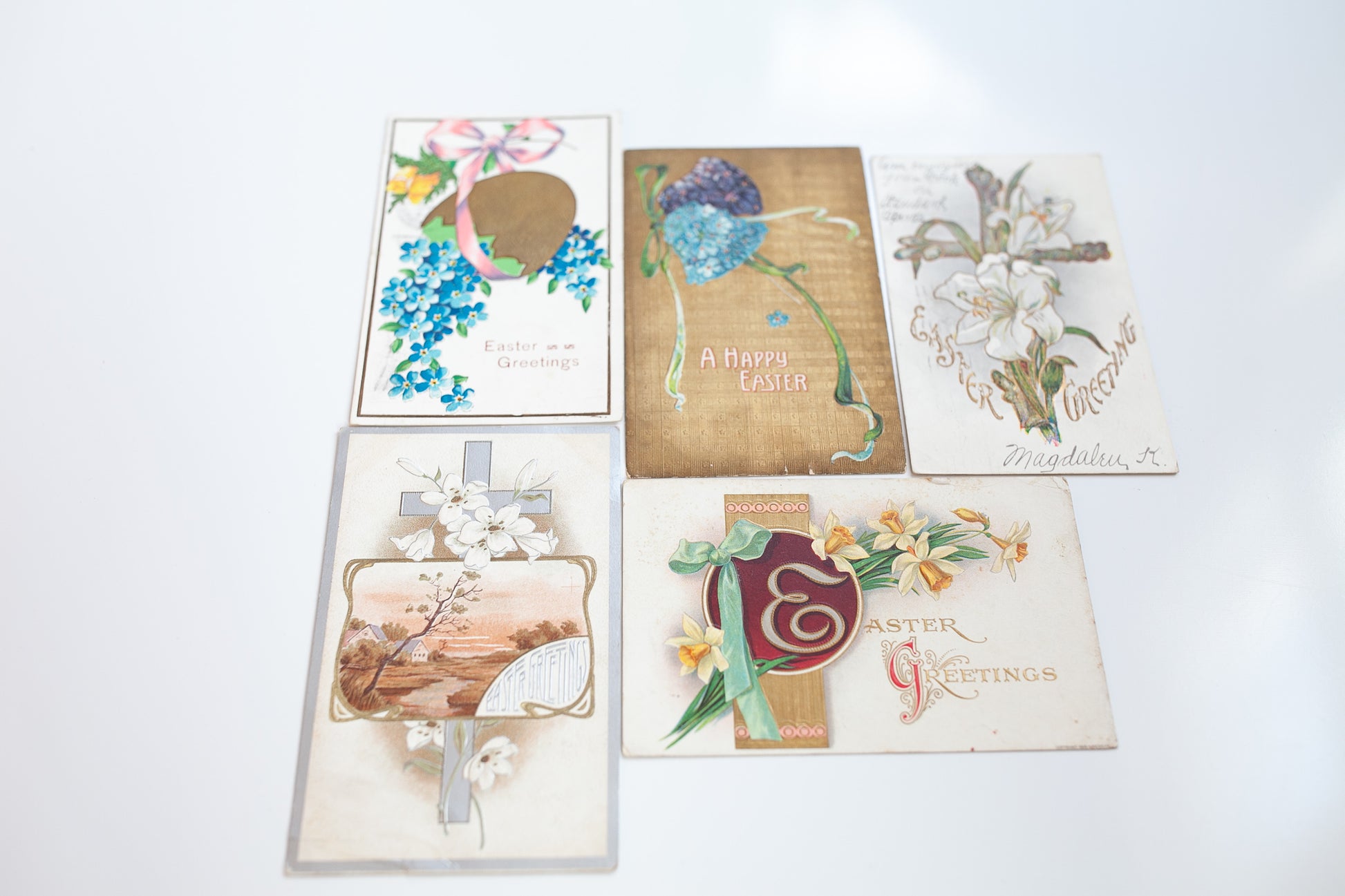 All 5 of these cards are Easter post cards. These are all written on and are 1907-1910 from what I can find on them. They are in good condition with some light wear but no tears. Light corner wear.