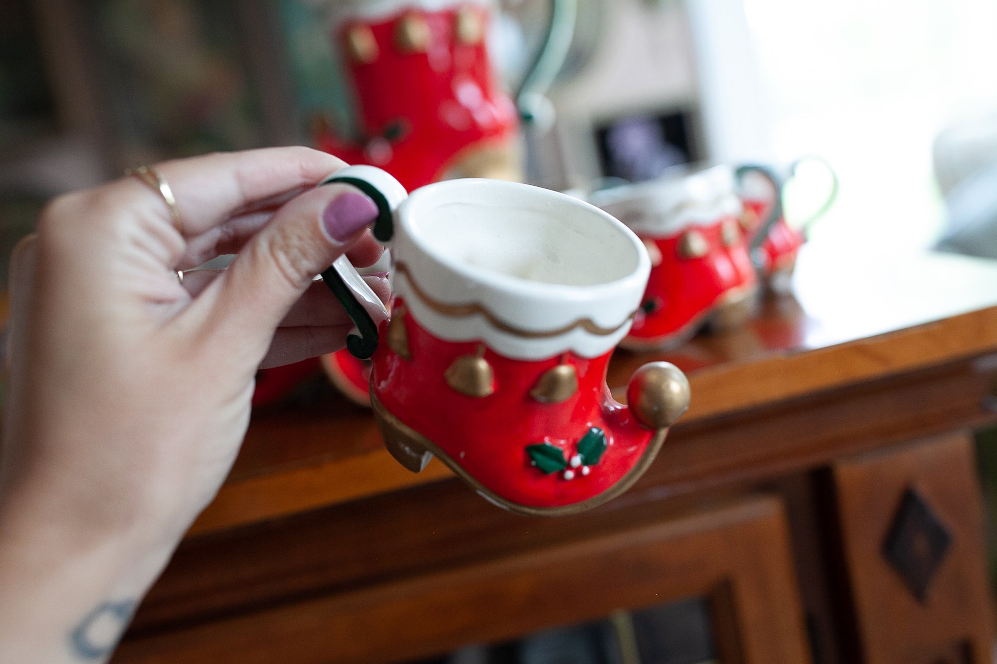 Christmas Mug Set - Vintage Mugs- Elf Shoes - Christmas Mugs- Elf Boots