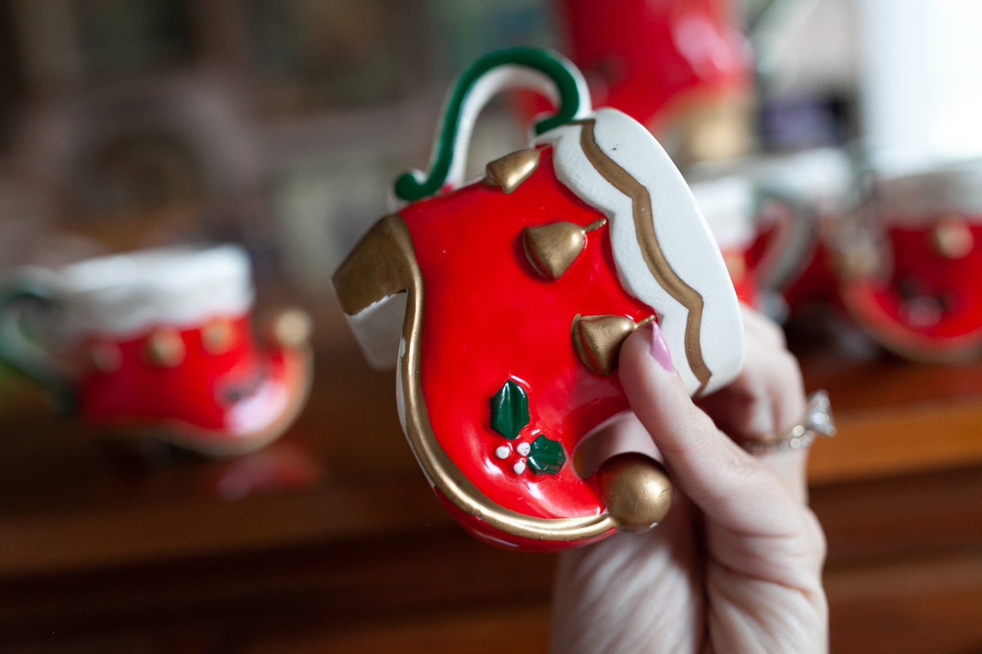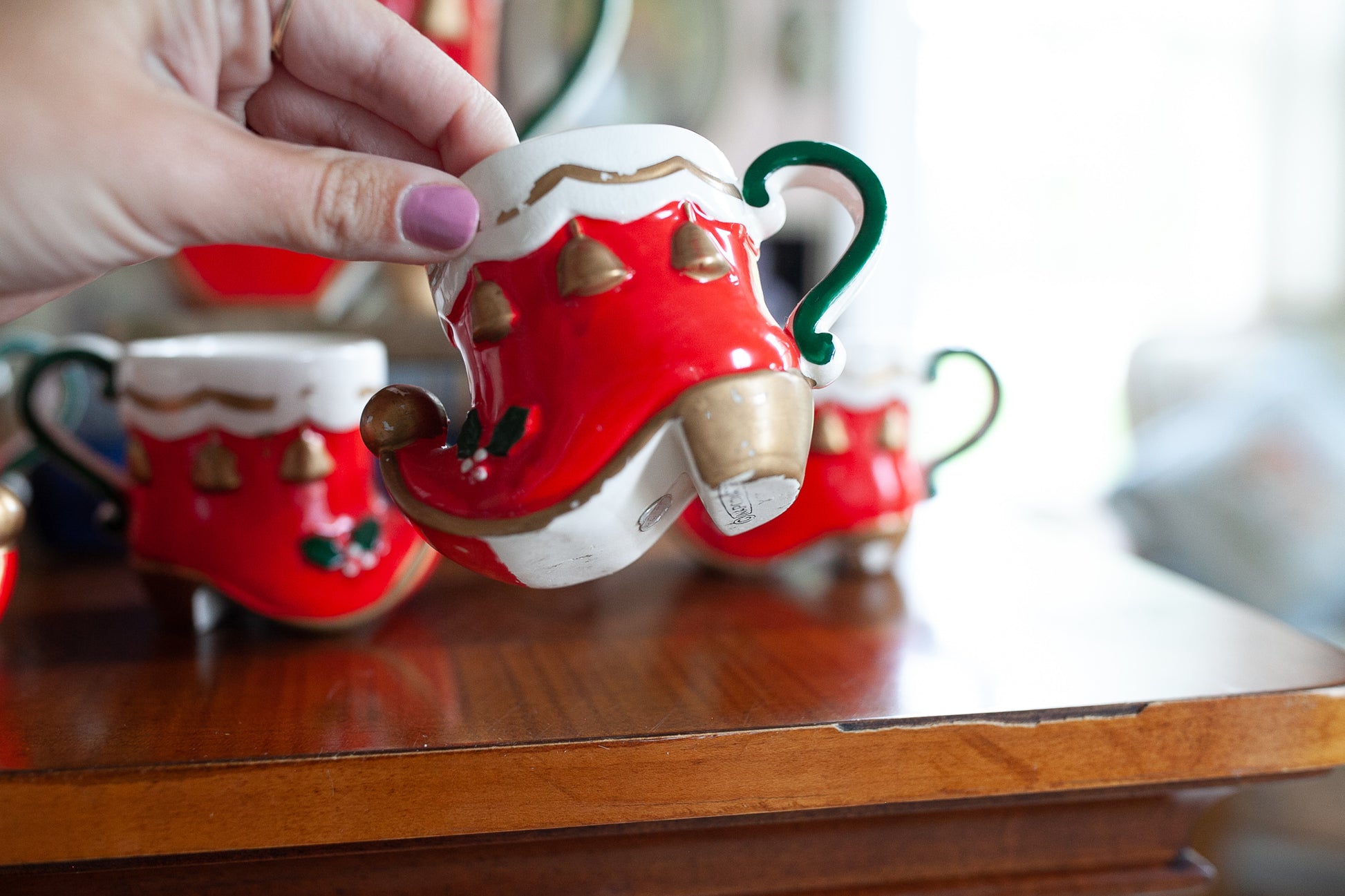 Christmas Mug Set - Vintage Mugs- Elf Shoes - Christmas Mugs