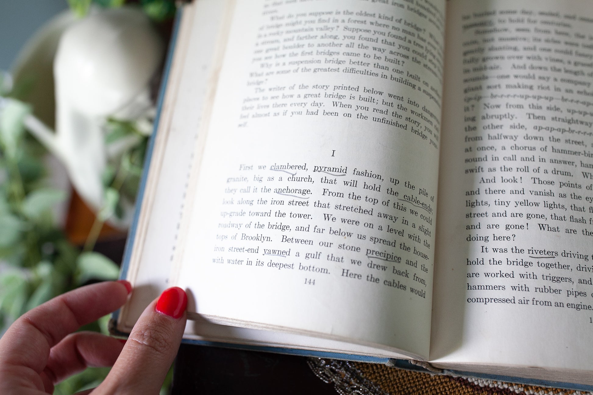 It is in good condition with some wear to the book especially at the corners. It was a school book so there are multiple kids names inside the front cover.  448 pages. The pages seem to be in good condition but have underlining and notes on some of the pages.