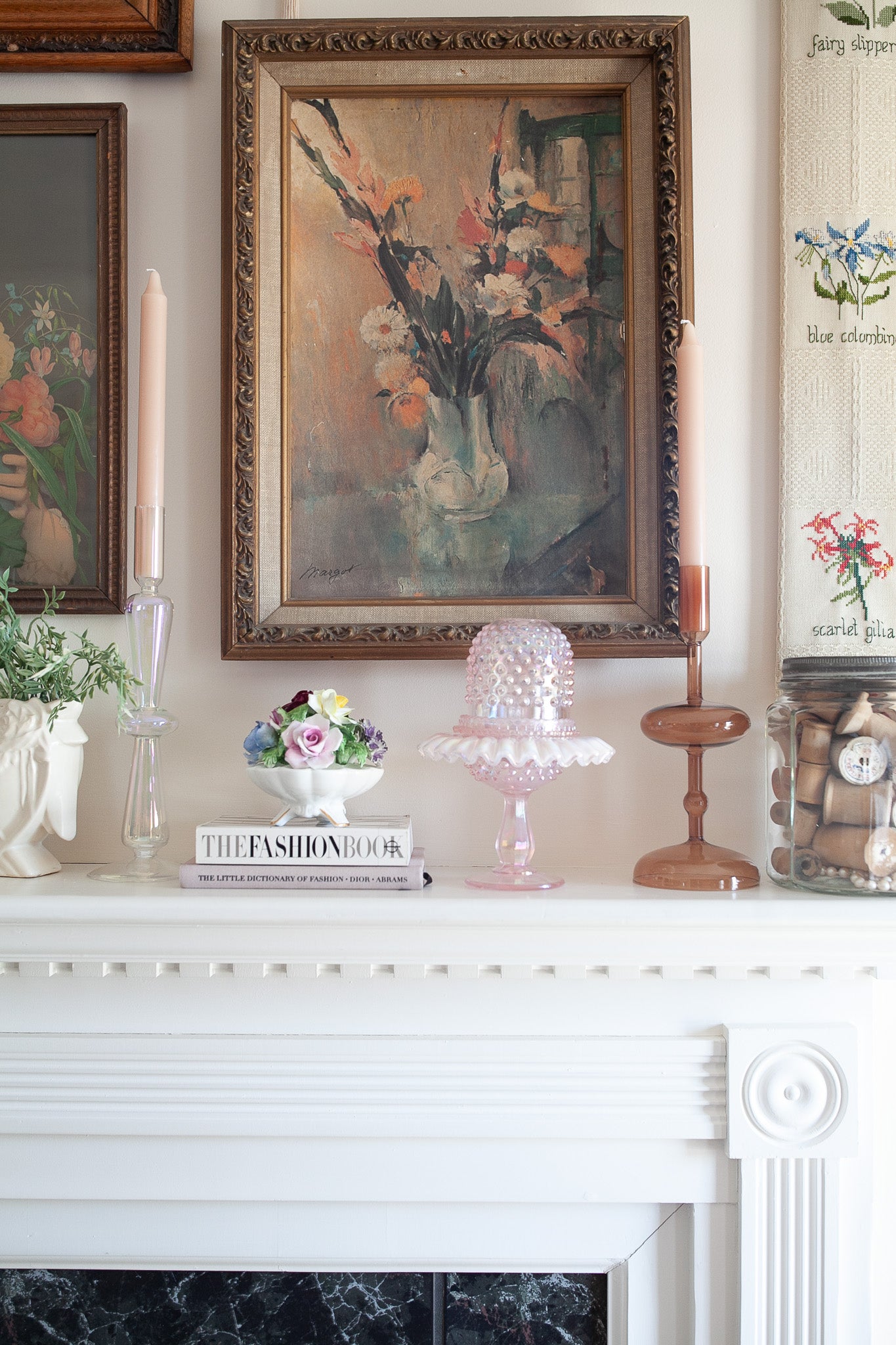 Fenton Pink Fairy Lamp - Fenton 95th Carnival Glass Hobnail Pink 3 Piece Pedestal Fairy Lamp
