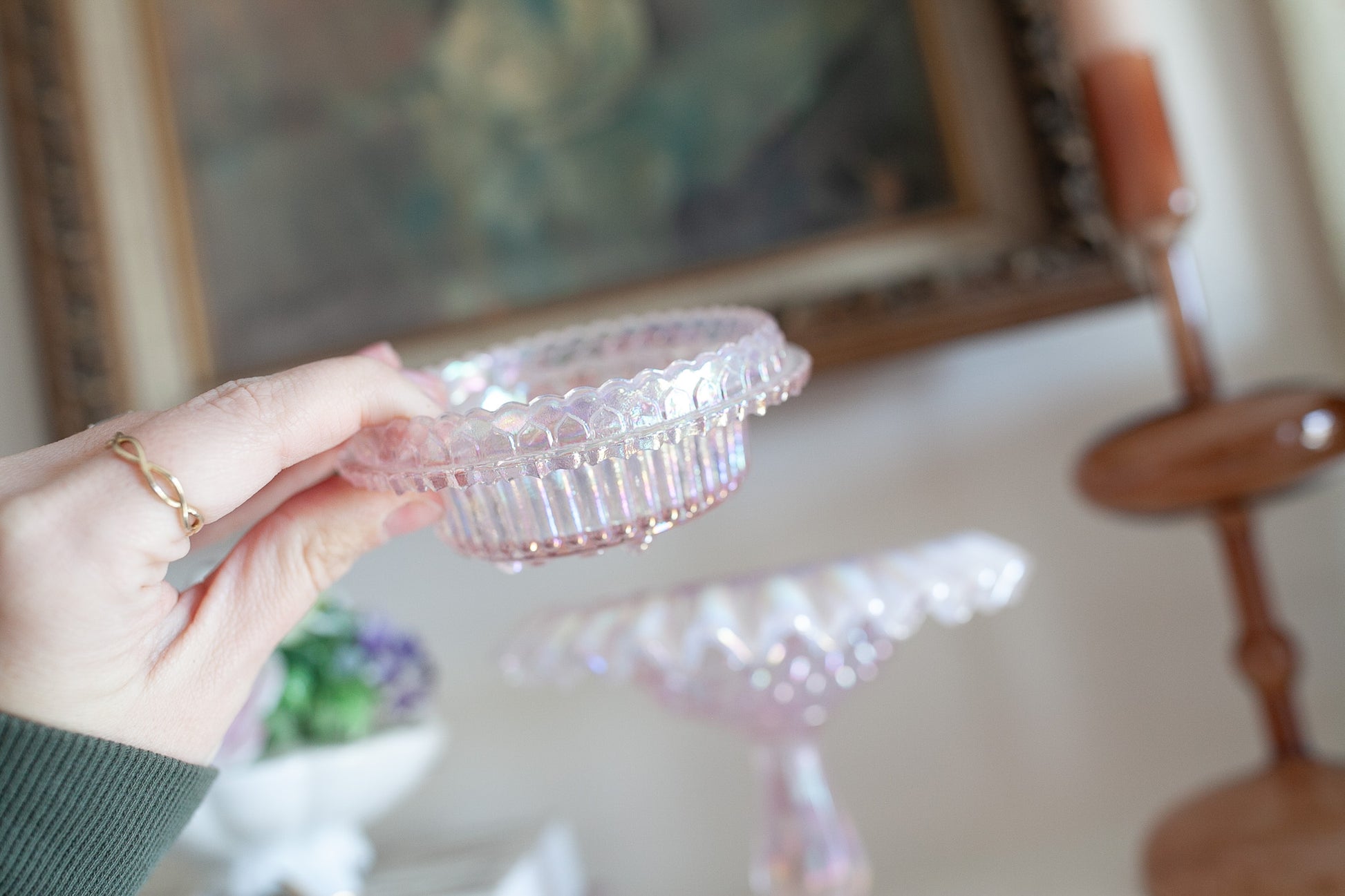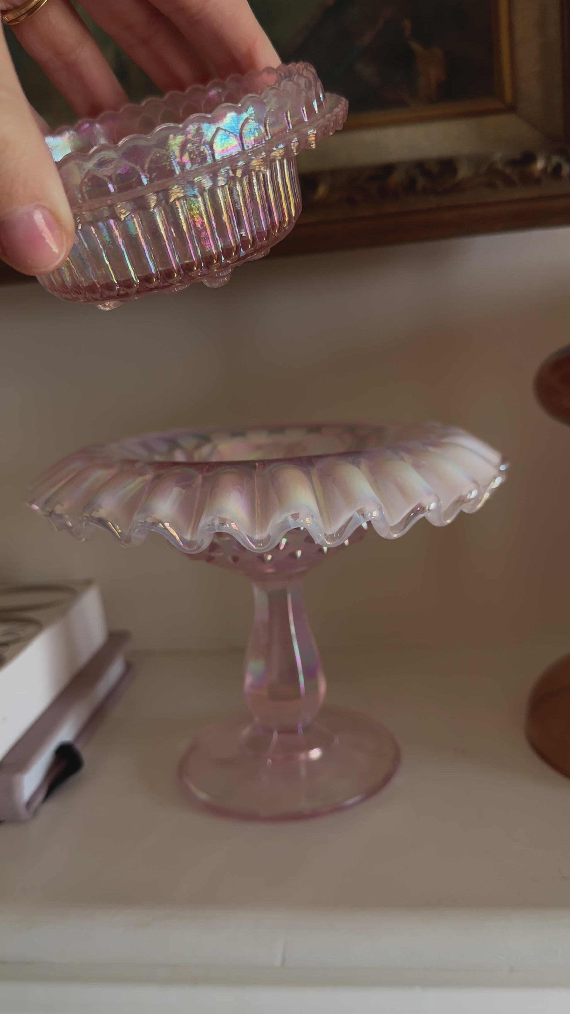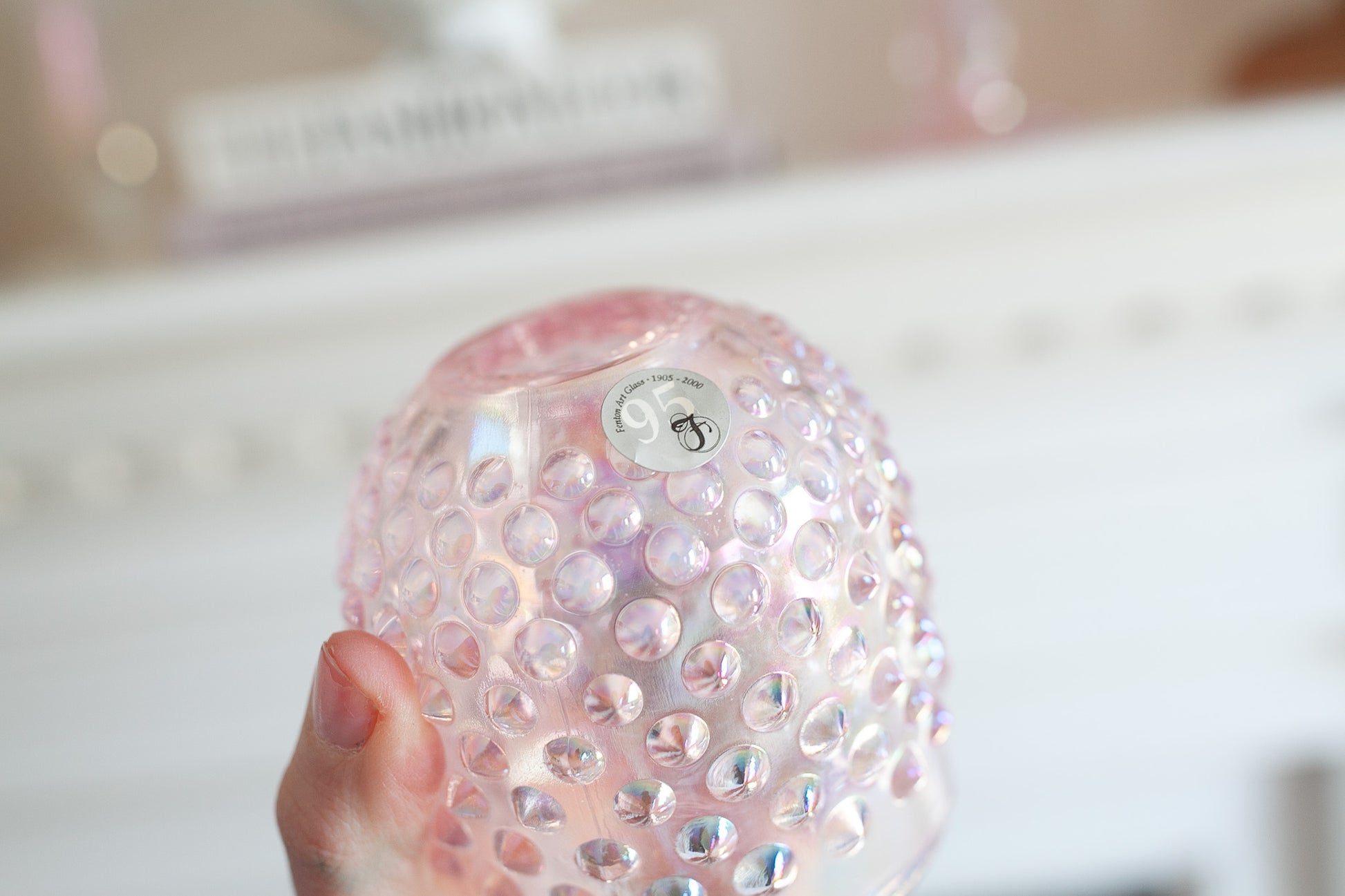 Fenton Pink 95th Carnival Glass Hobnail Pink 3 Piece Pedestal Fairy Lamp