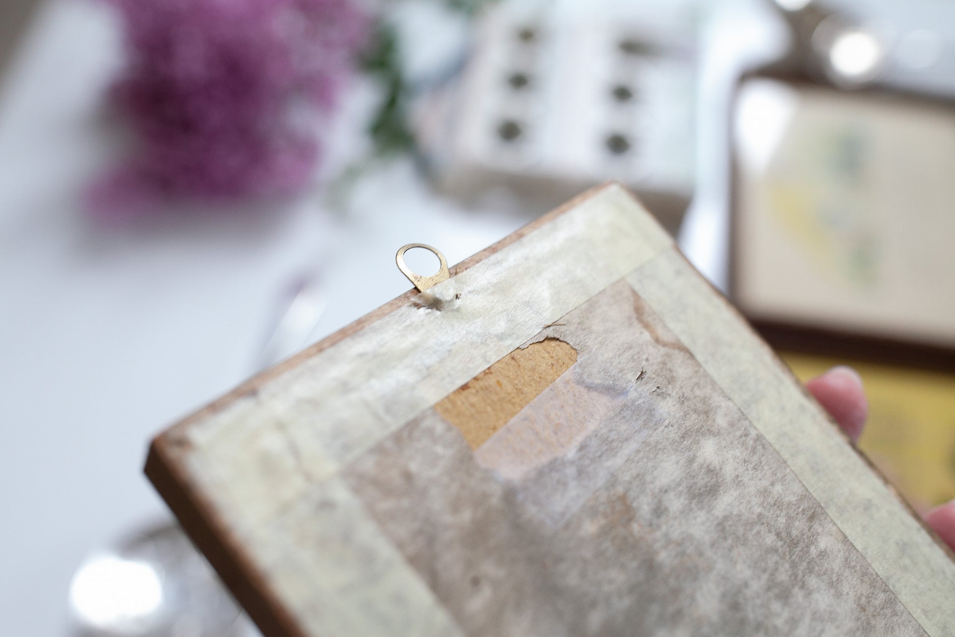 About 7.5"x4.5" in size- tape on the backer and a small loop to hang with. A beautiful piece with great details!