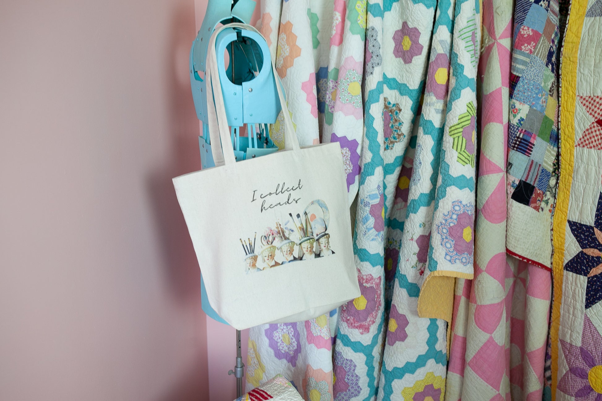 I collect Heads- Canvas Shopping Tote- Lady Head Vase Tote - Shopping Bag