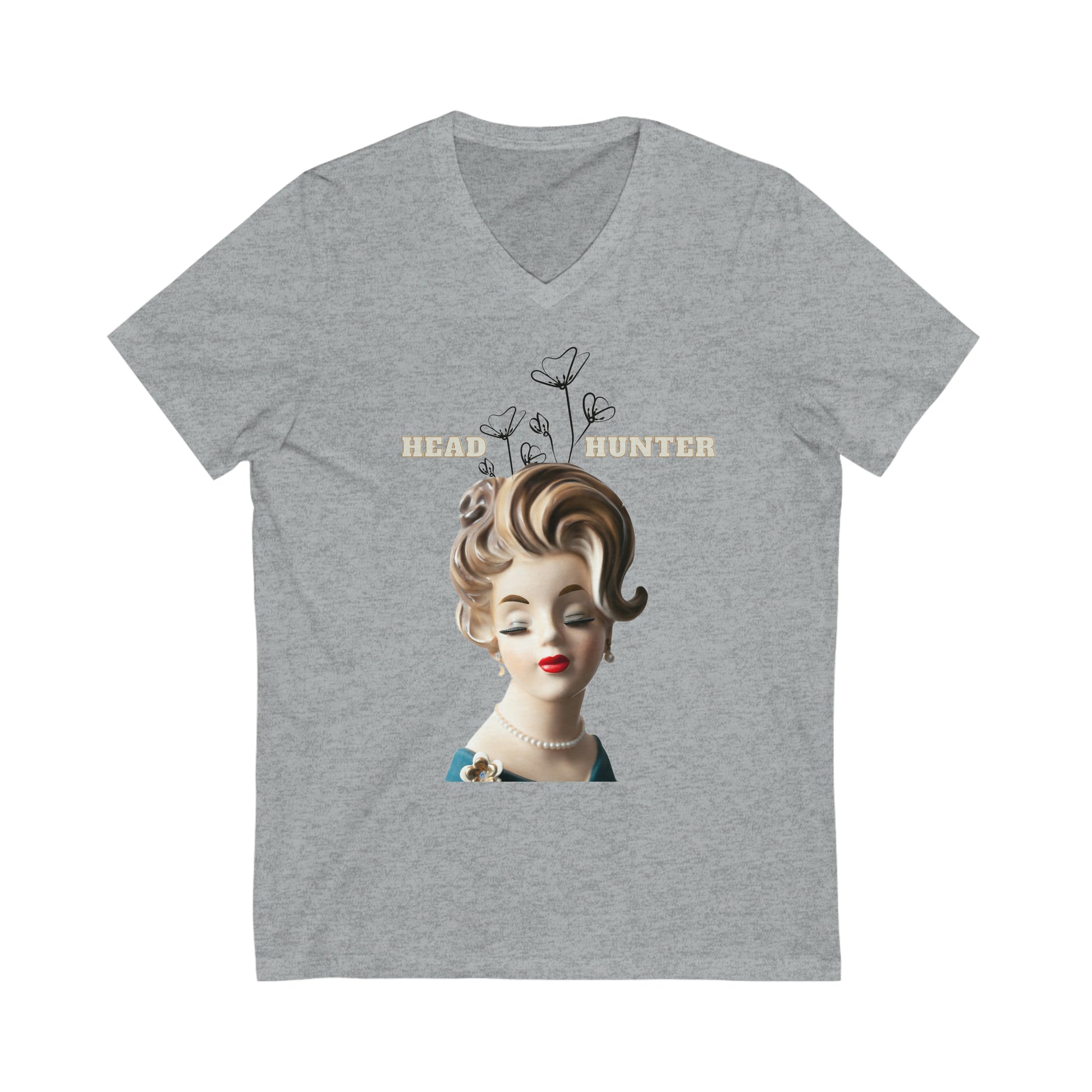 Lady Head Vase -V Neck - Head Hunter T Shirt- Unisex Jersey Short Sleeve V-Neck Tee