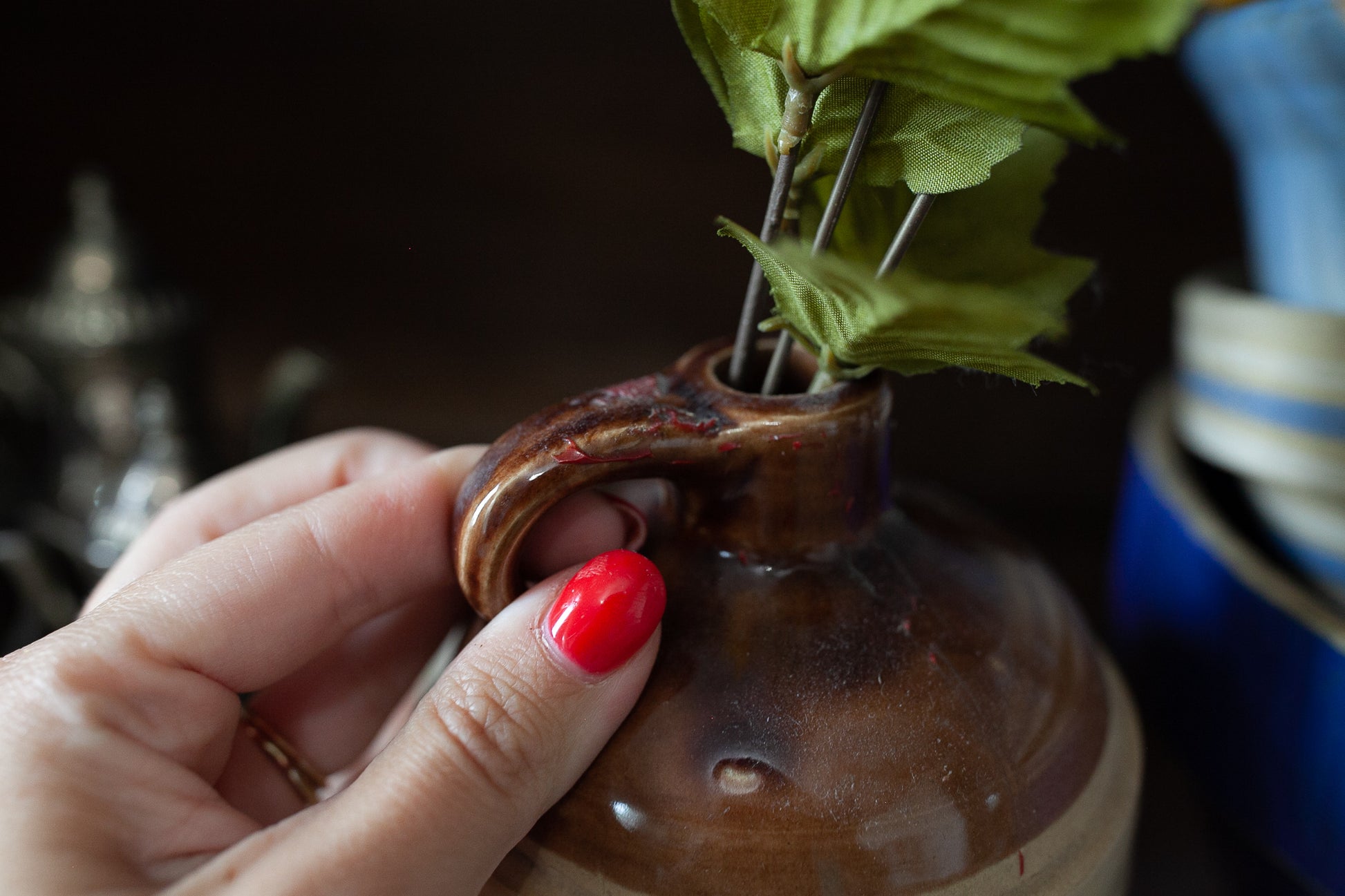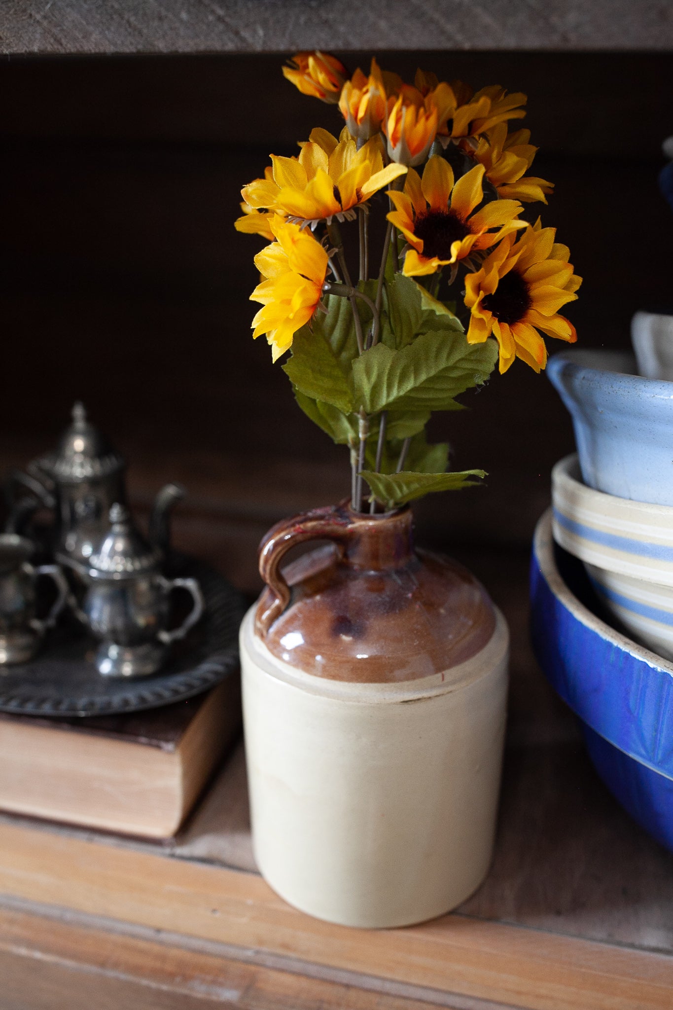 This jar is always good for neutral decor that can go with anything! It is about 7" tall by about 4.25" in diameter. It has some wax visible on the top from the past seal. It comes with the stem of flowers!