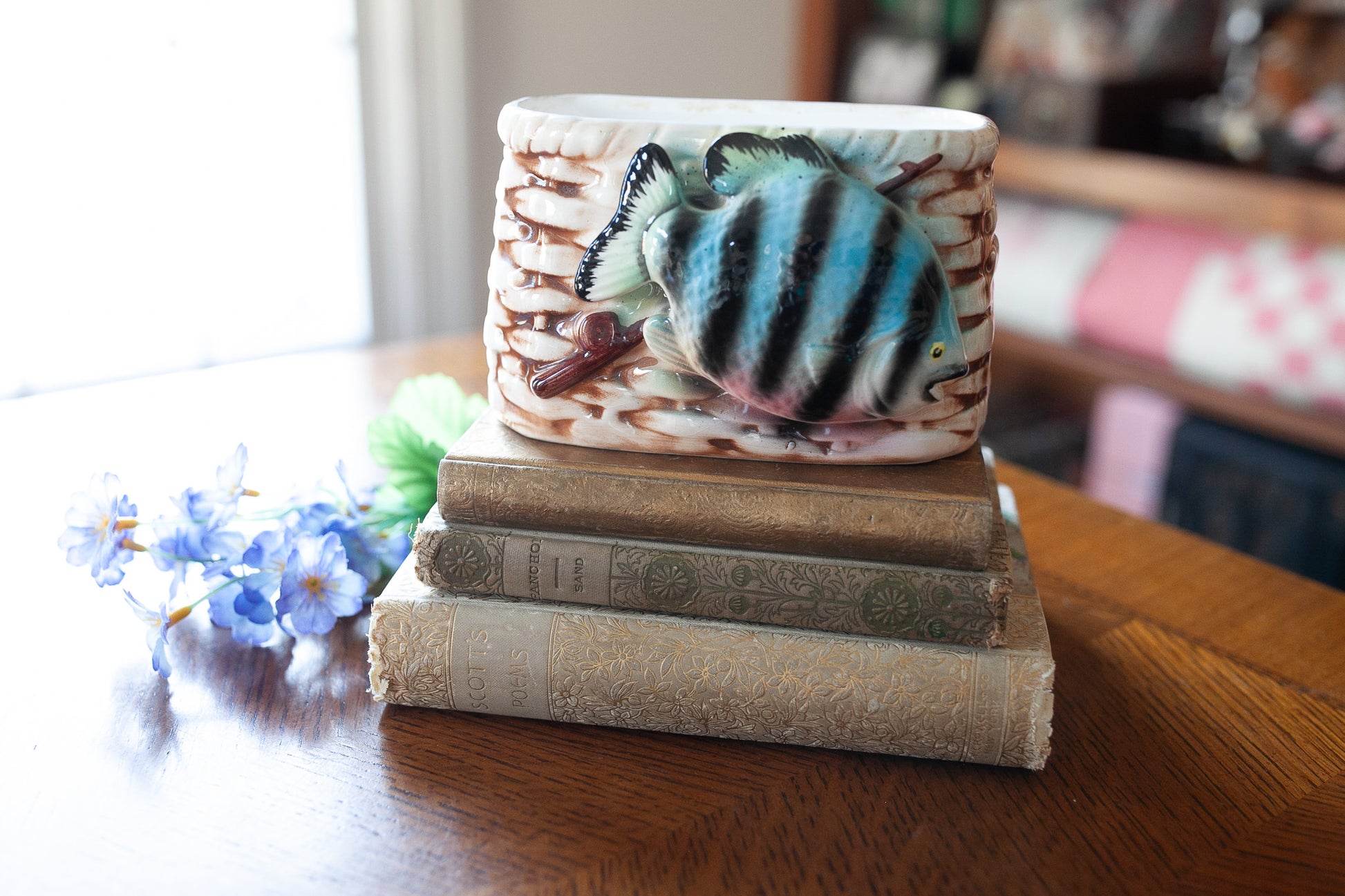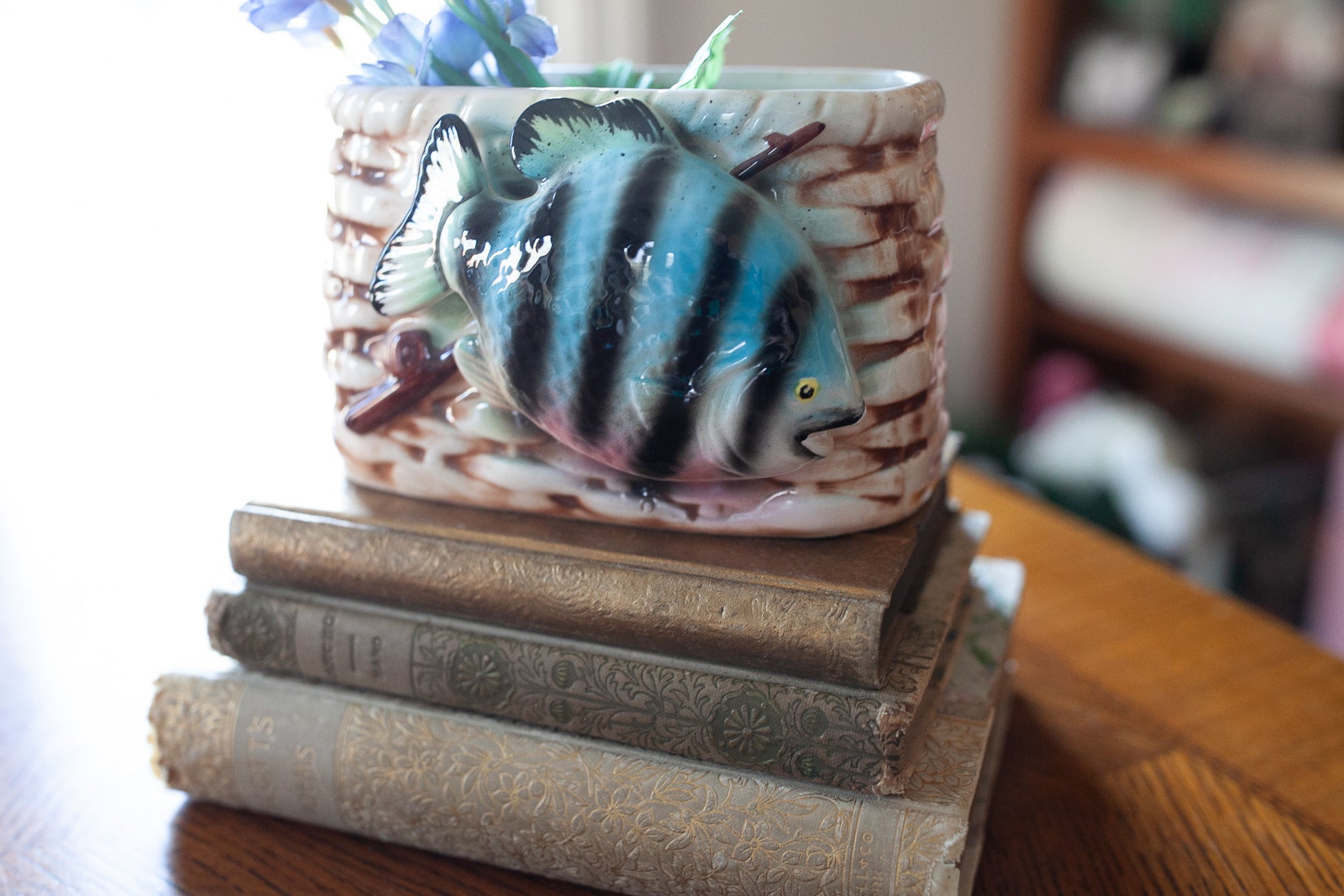 Nancy Pew Japan -Fish Basket -Vintage Porcelain Planter