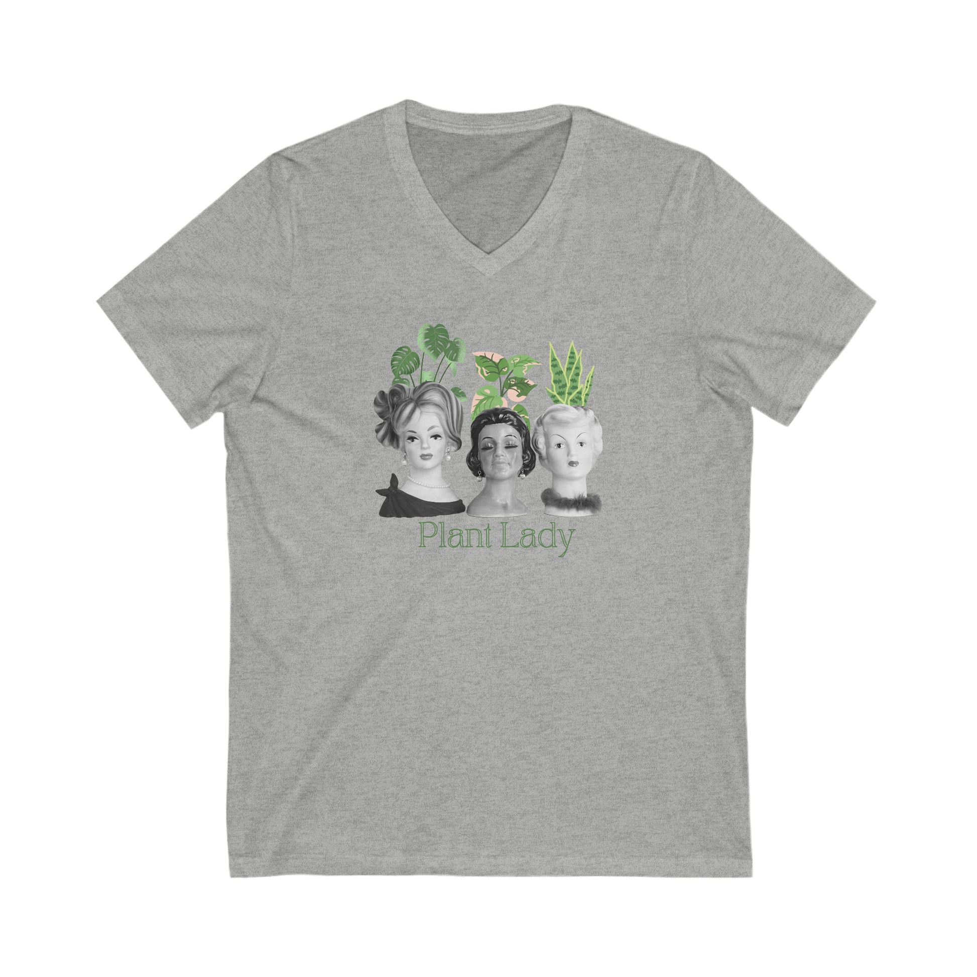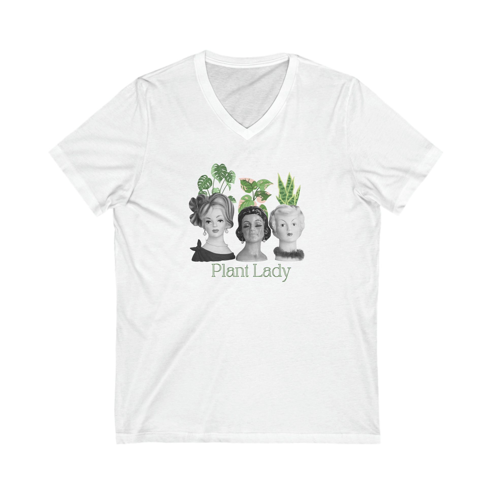Plant Lady Shirt - Vintage Lady Head Vase Shirt - Plant Lady - Retro Shirt - Unisex Jersey Short Sleeve V-Neck Tee