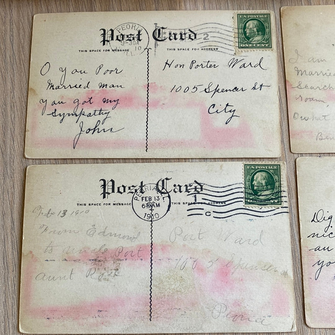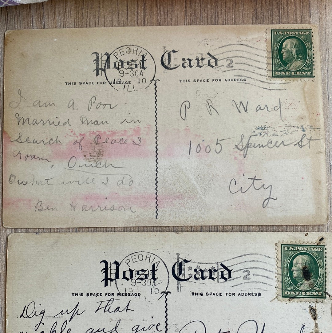 Postcard: Ten Commandments of a Wife No.2,3,4,7— 1910 postcards with funny sayings about commandments of a wife! All are written on and stamped- good overall condition- pink stain on the back of them see photos please. Standard postcard size- 3.5x5.5” all 4 for the price listed.