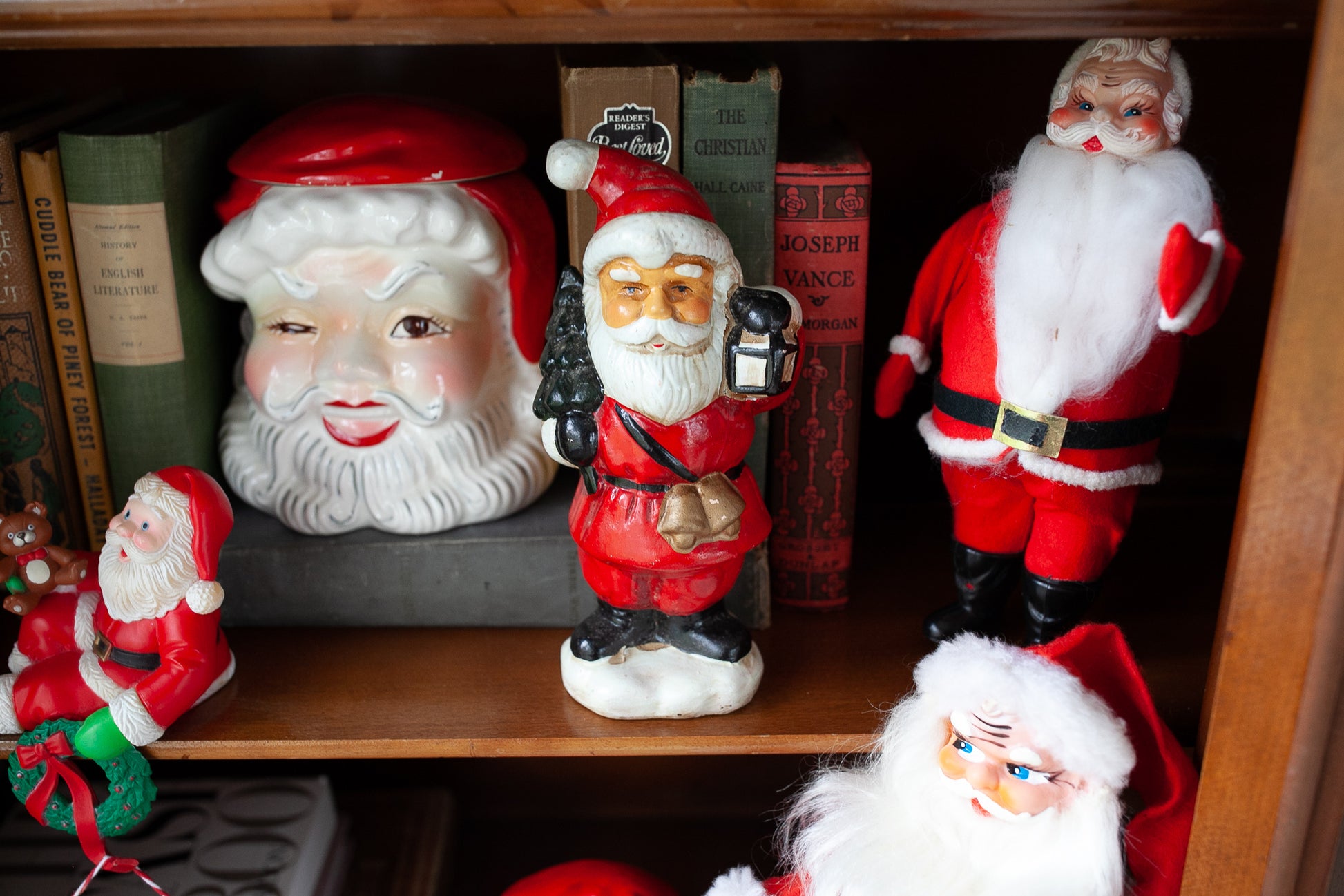 This vintage Santa is a porcelain Santa and is so charming. He is about 9" tall. Some paint chipping, but overall a fun Santa!