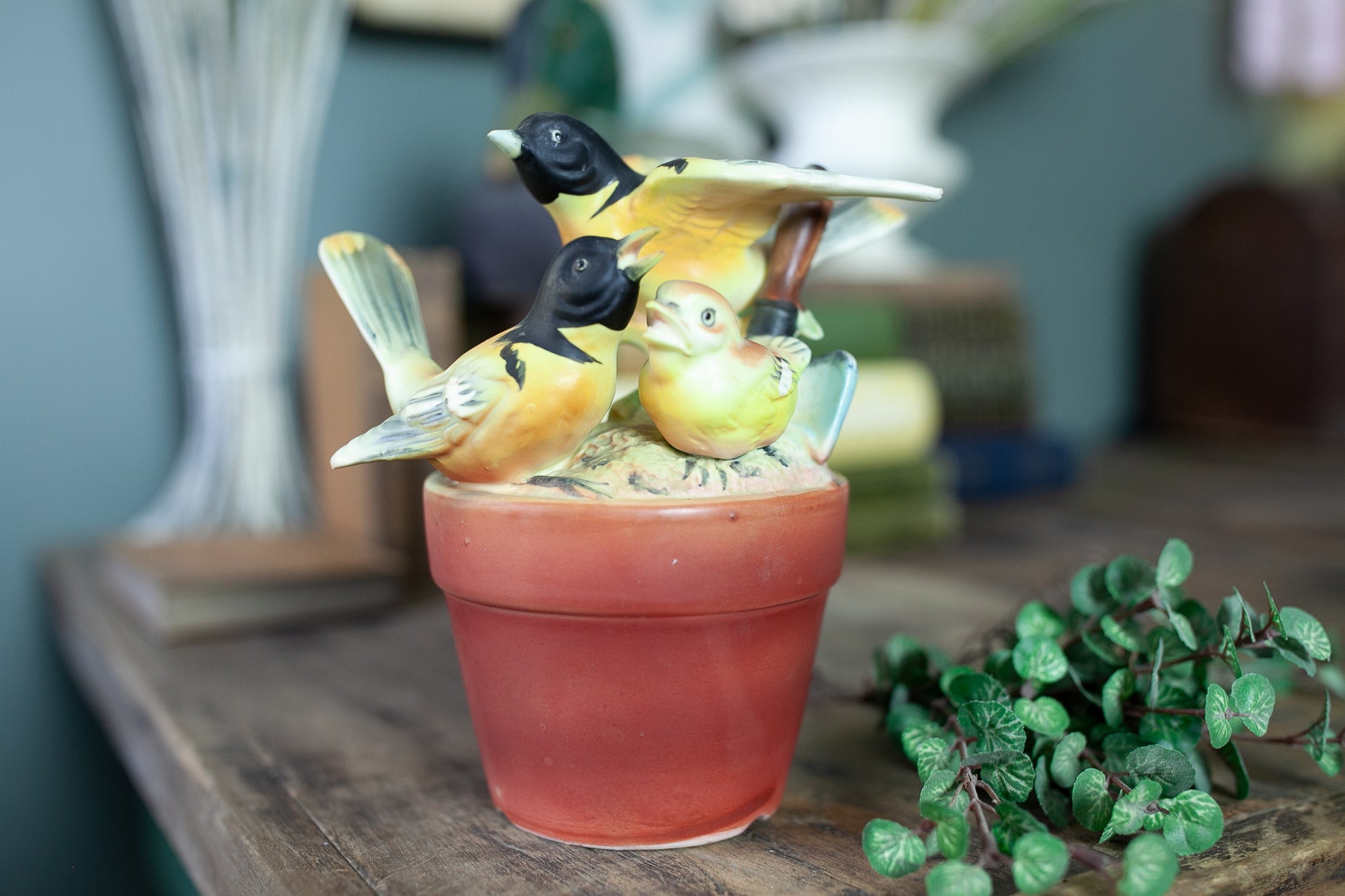 Vintage Bird Planter- Oriole Enesco Planter- Vintage Birds -Porcelain Bird