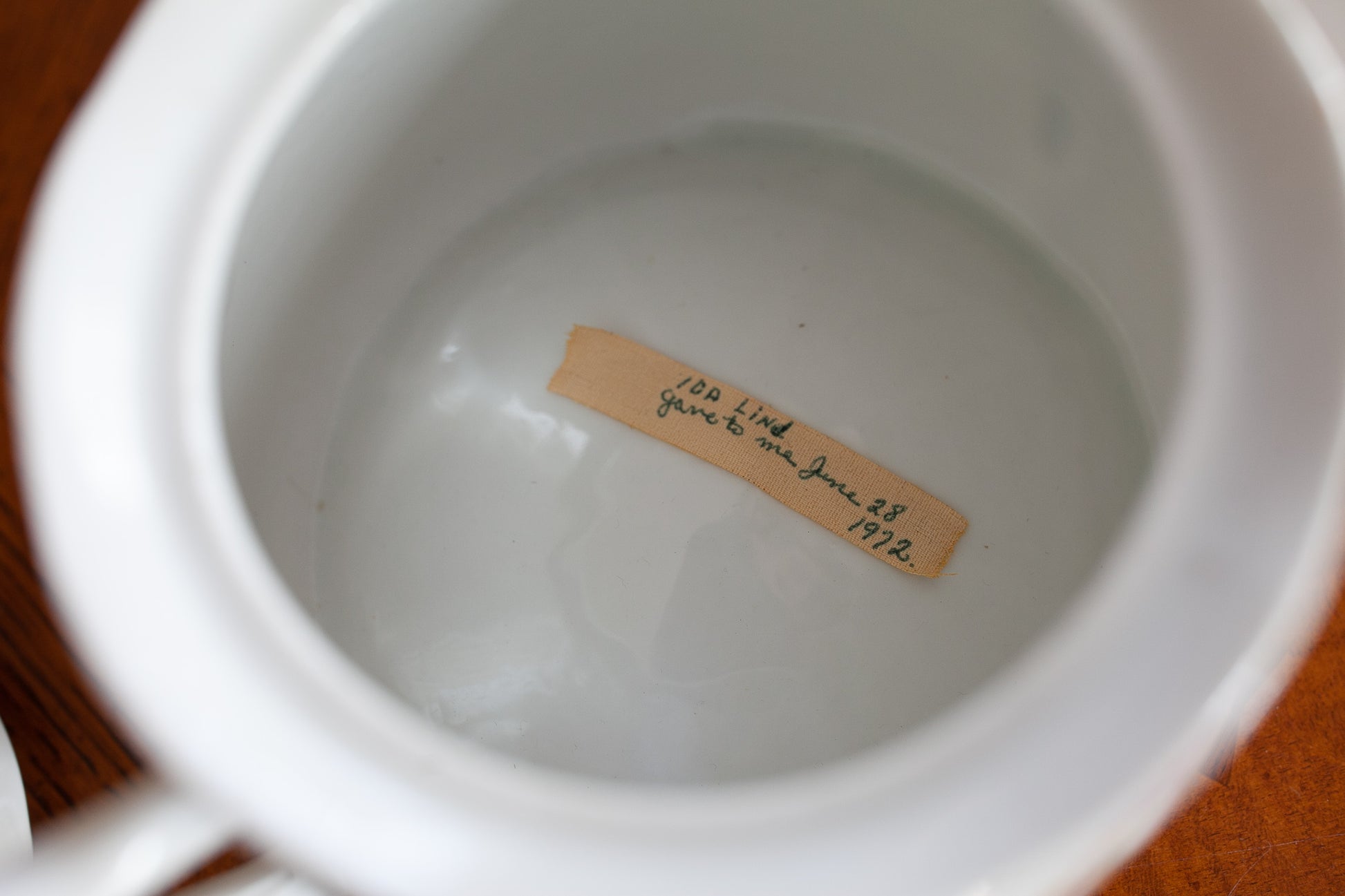 This lidded jar is about 4" tall and 6" tall to the top of the lid. Handle to handle is about 8.5" wide. The inside diameter is about 4.25" wide. There is one chip on one of the handles see the picture please. No other chips or cracks.