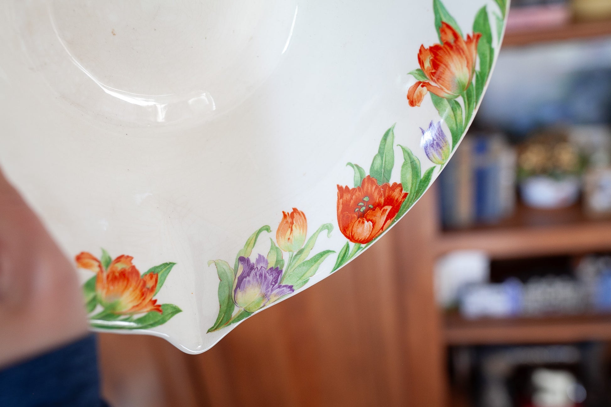 Vintage Bowl- Mixing Spout Bowl with Florals