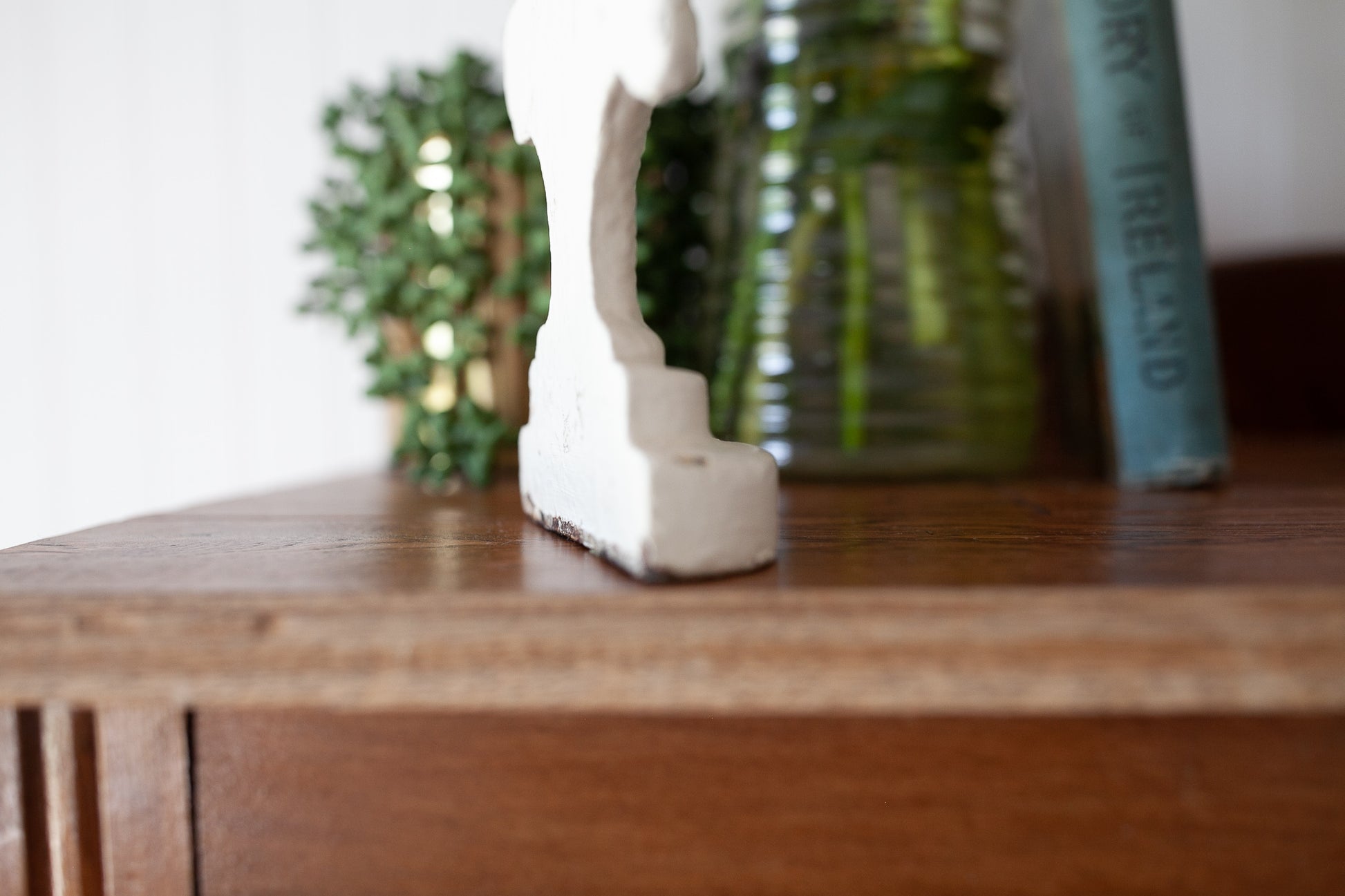 This flower doorstop is a painted white cast iron flower basket. It is a great display item to hold a door open, put on a shelf, or use as a bookend! It is about 8" tall and about 5" wide.