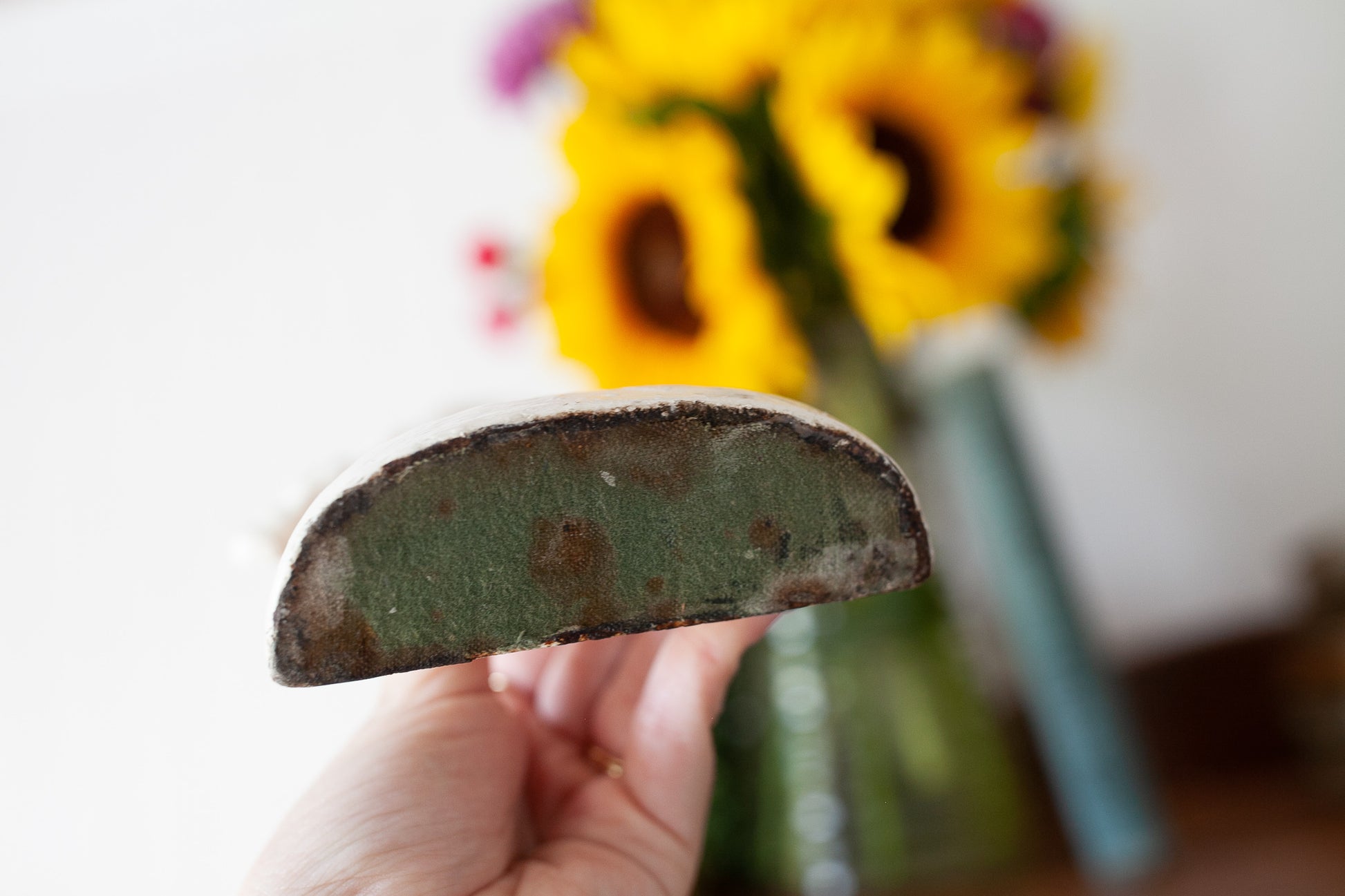 Vintage Doorstop - White Flower Cast Iron Door Stop - Flower Basket