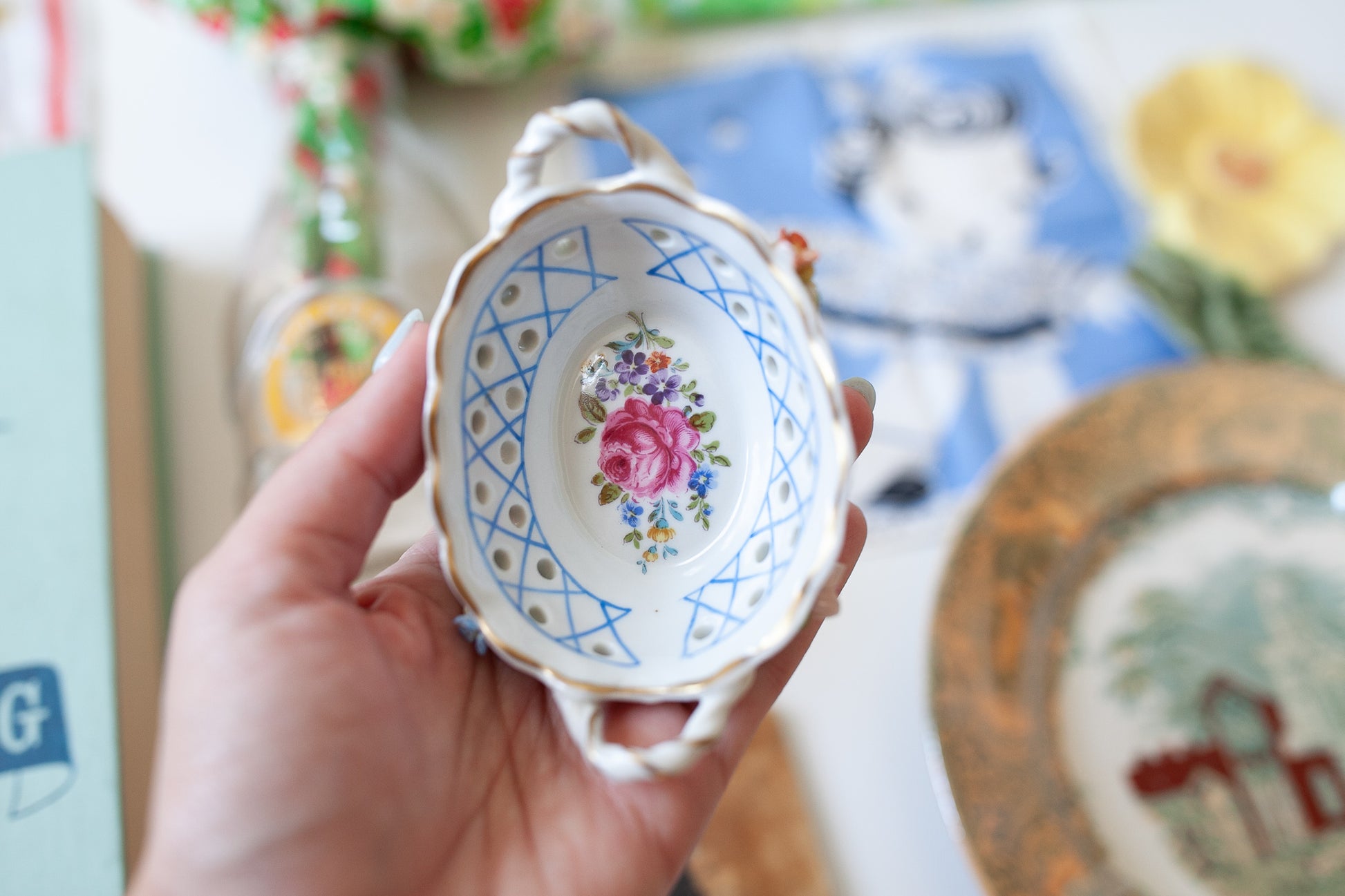 Vintage Dresden- Dresden Dish -Porcelain Floral Basket