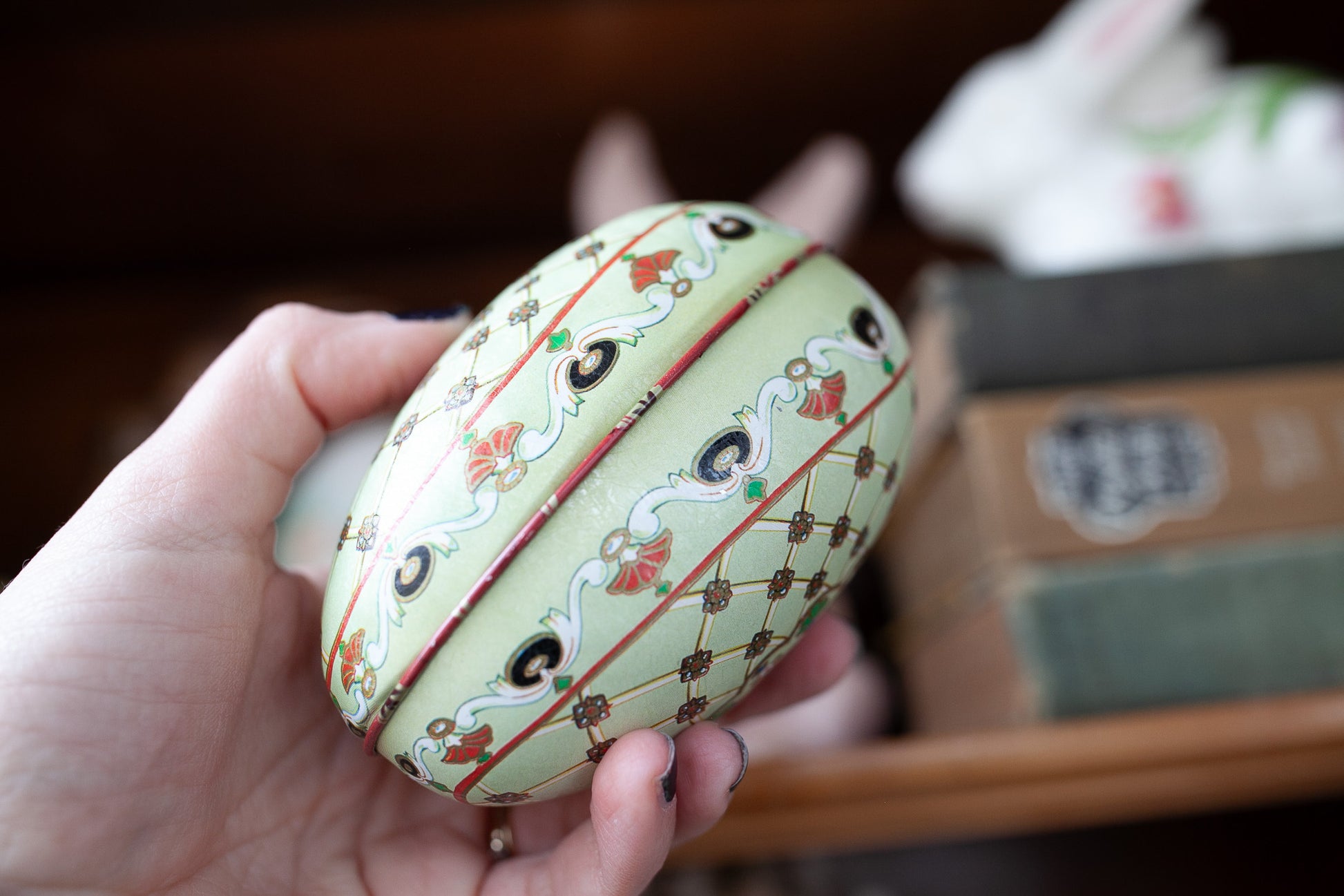 Vintage Faberge Tin Litho Egg Gift Box for Your Special Trinkets or Jewelry 1894