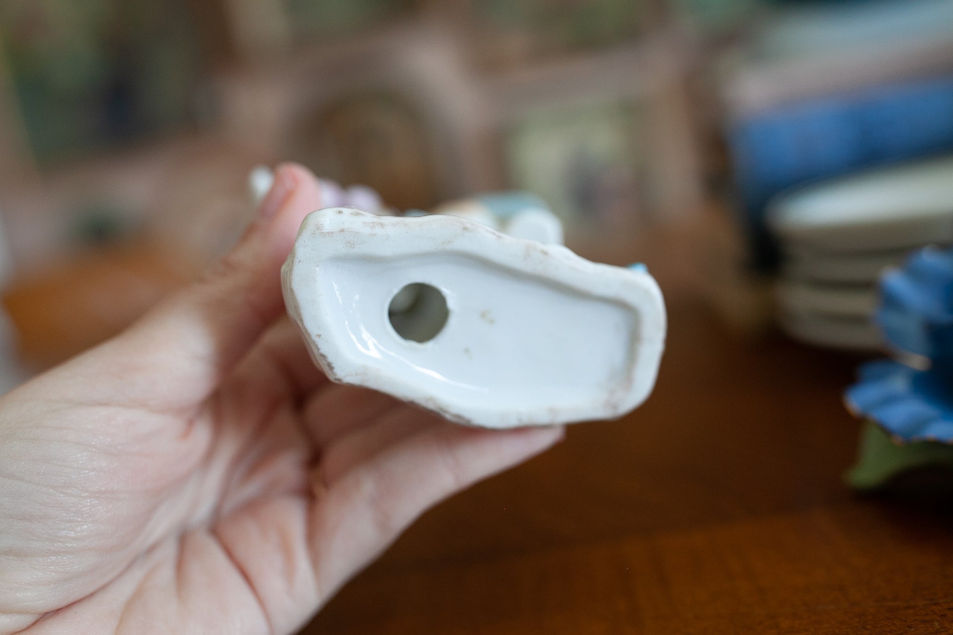 This little lady just couldn't be cuter! She is the best with her little blue details! She is holding what looks like a paintbrush with a paint can hanging on her arm. No chips or cracks.  She stands about 4.5" tall. She has spaghetti trim hair.
