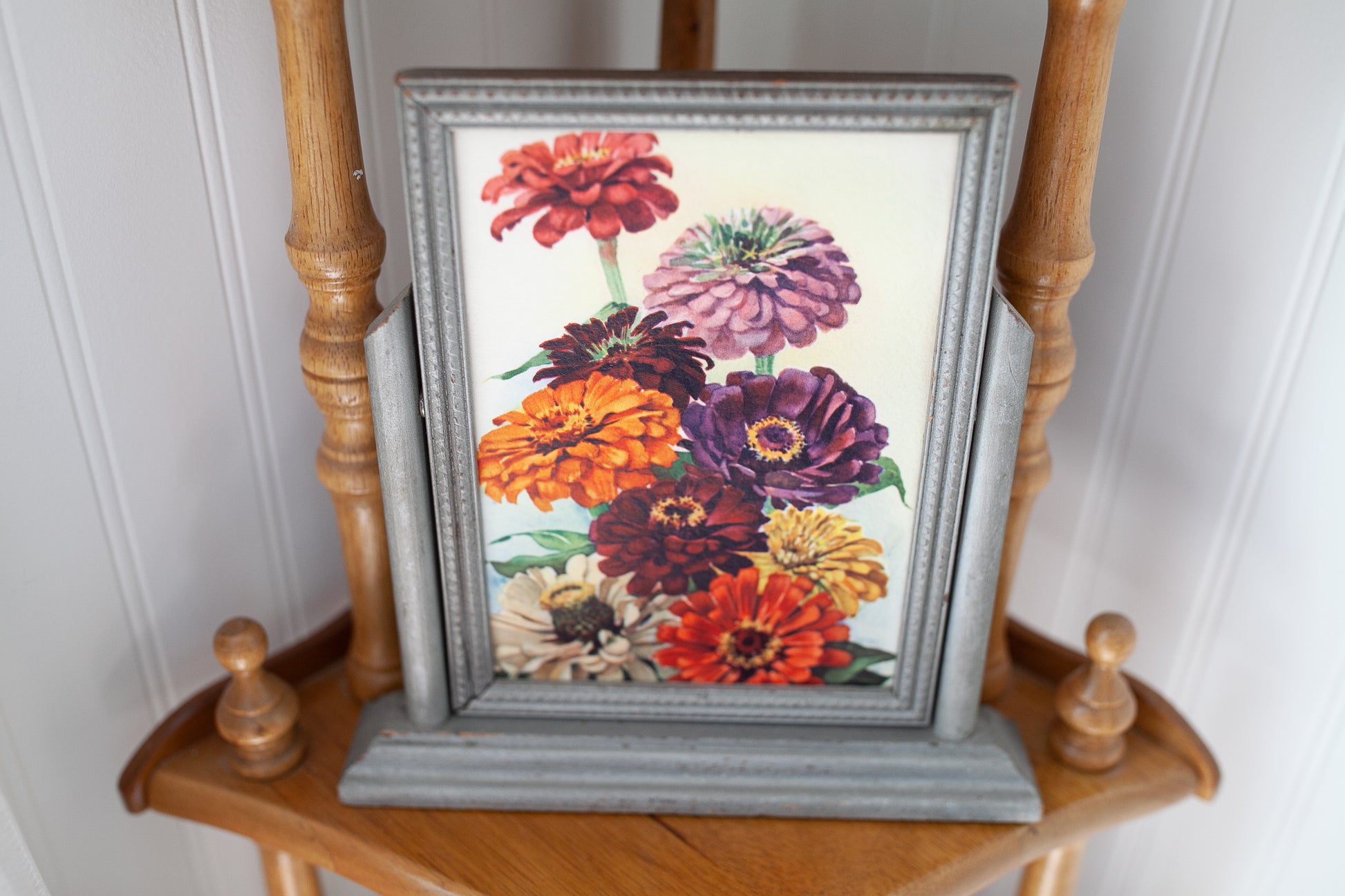 Vintage Floral Print Framed- Wood Frame and Paper Print Floral