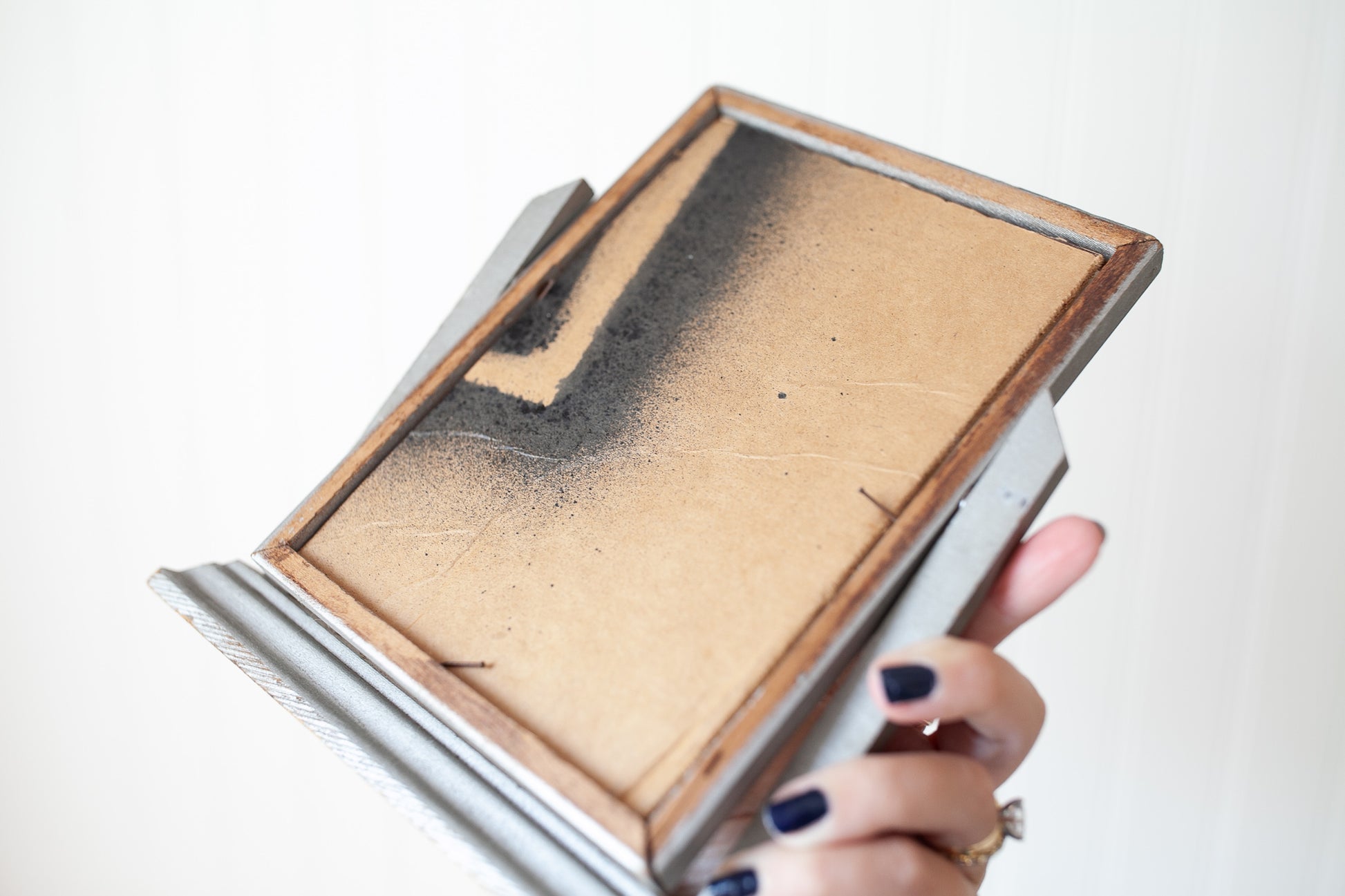 8.5" wide by 8.75" tall- this is a paper floral with vibrant flowers inside a wood frame that was printed silver.