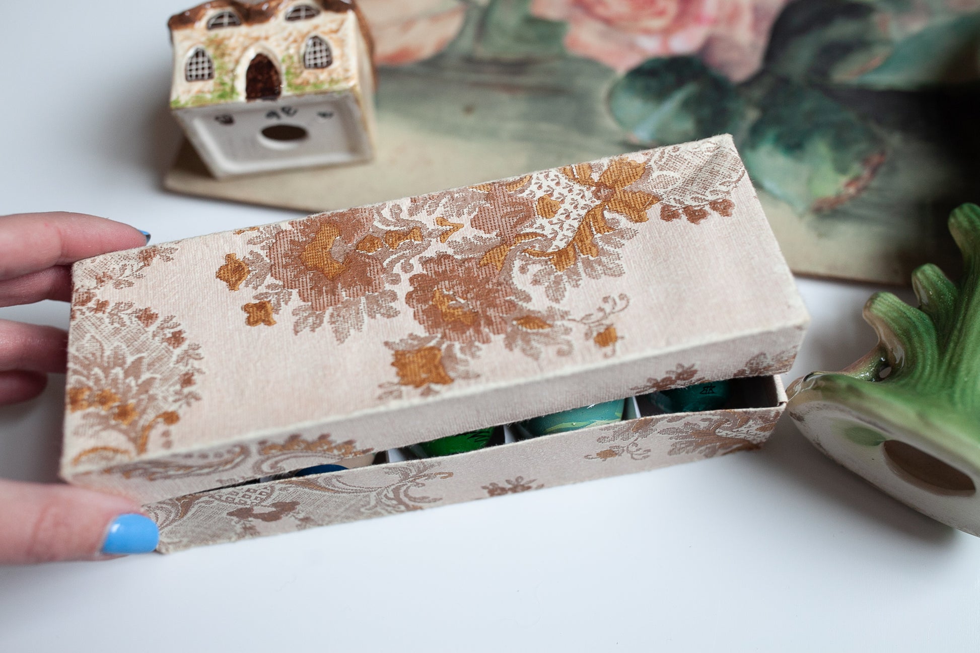 Set of 5 hand painted darling eggs! All are unique and all can hang with the little ribbon topper. The colors are vibrant and just lovely! The eggs are about 2" tall each-made of wood with ribbon hanging loops. And the little box that holds them is adorable and floral too! Win win!