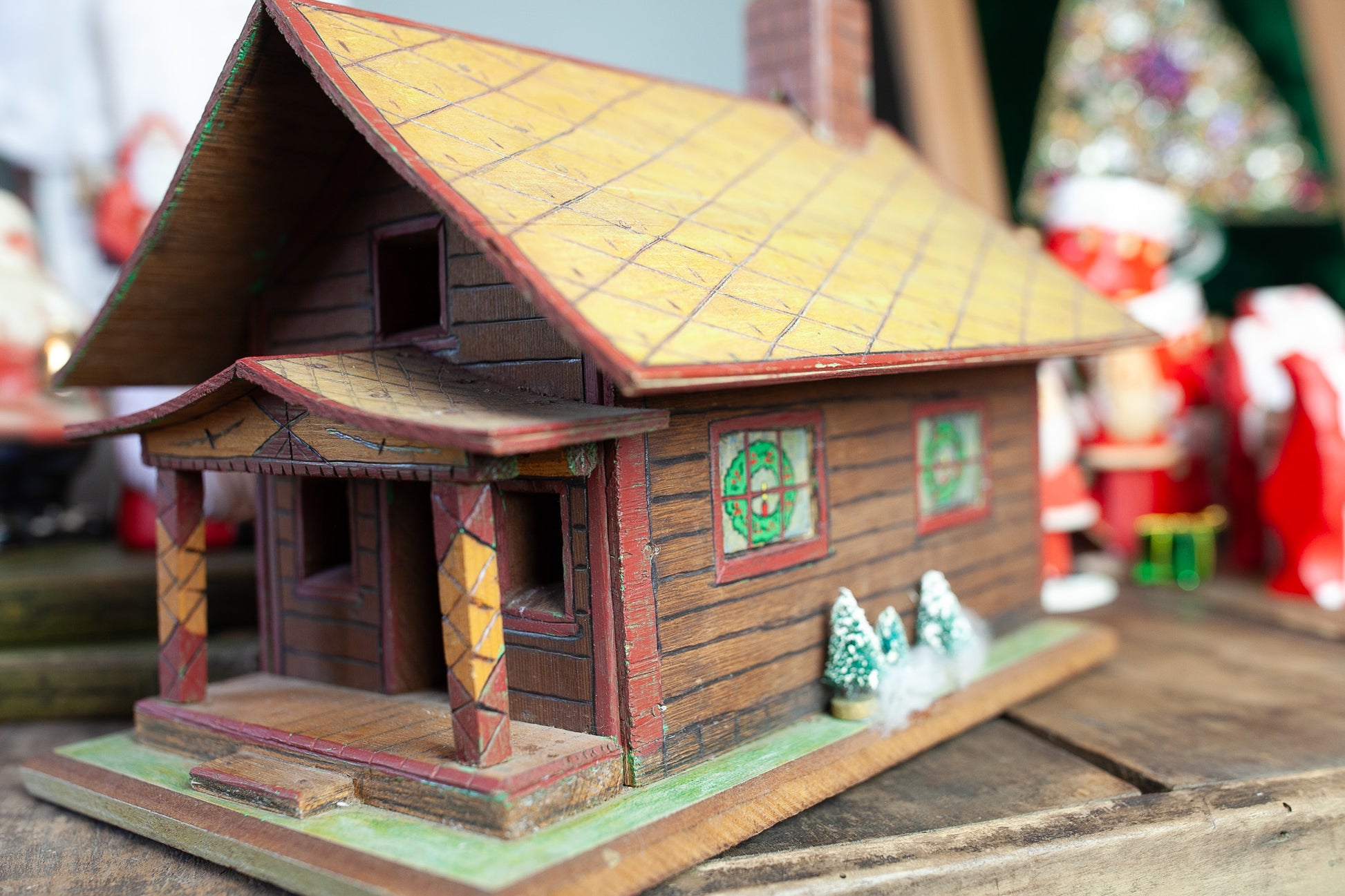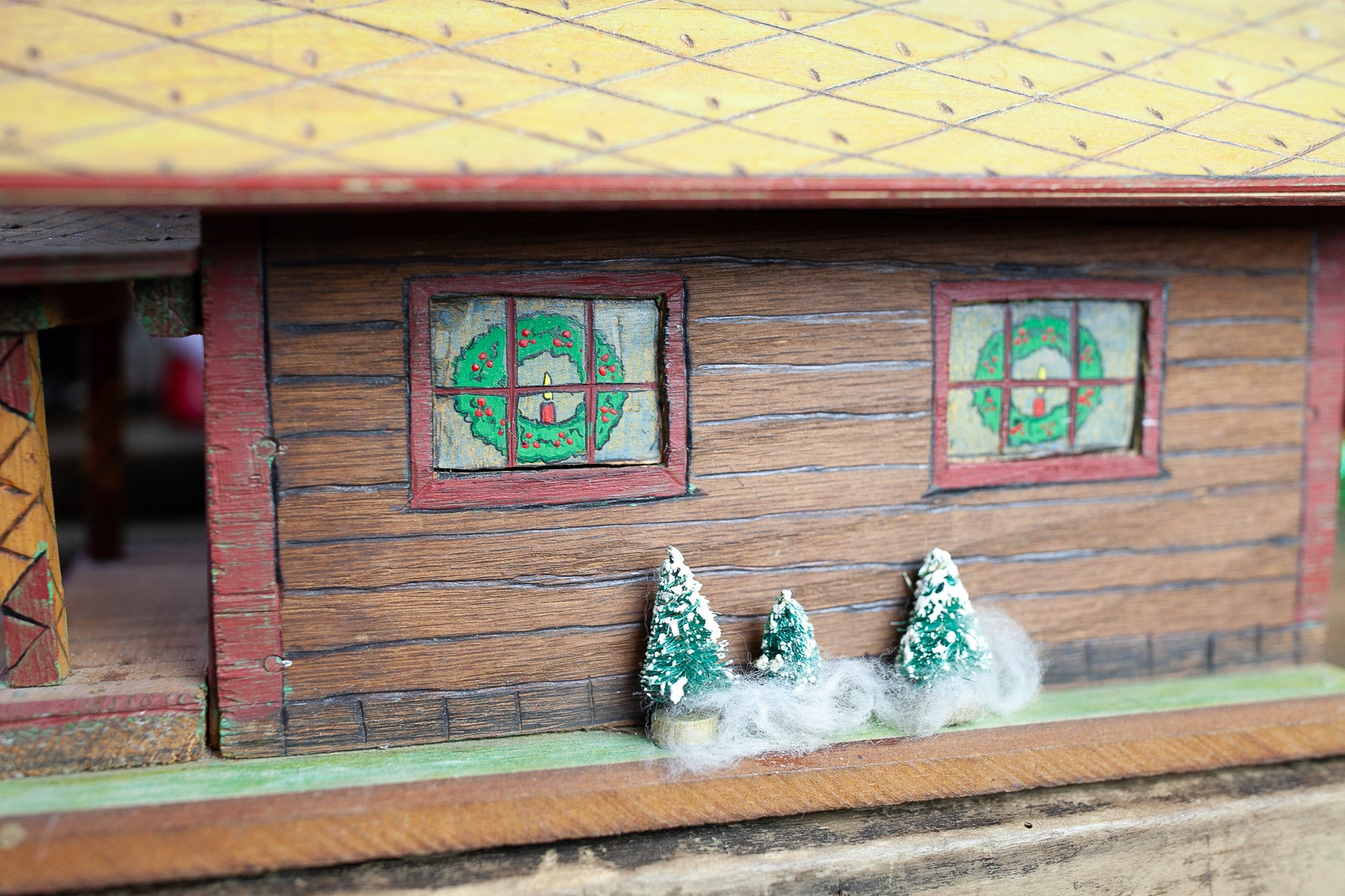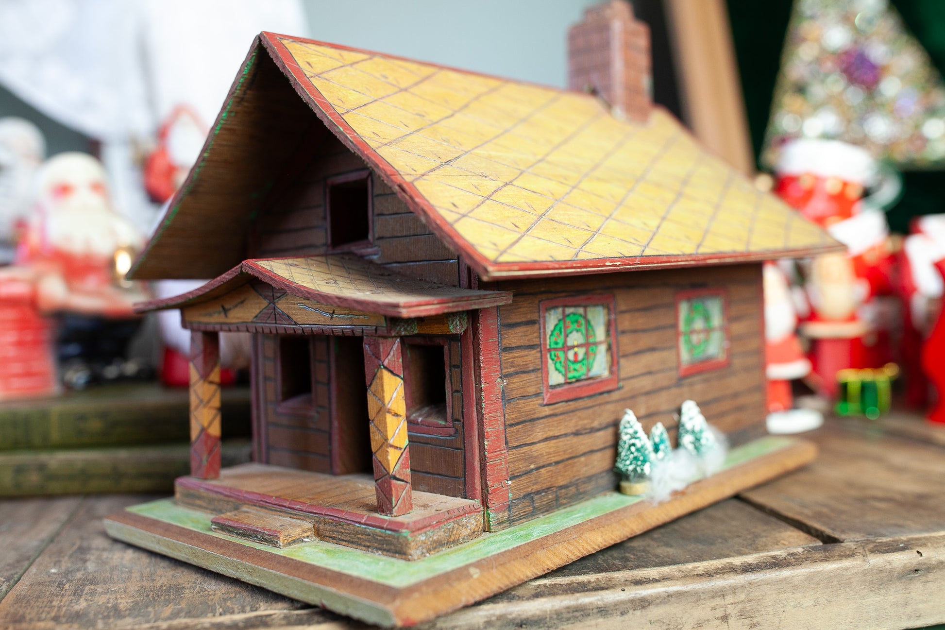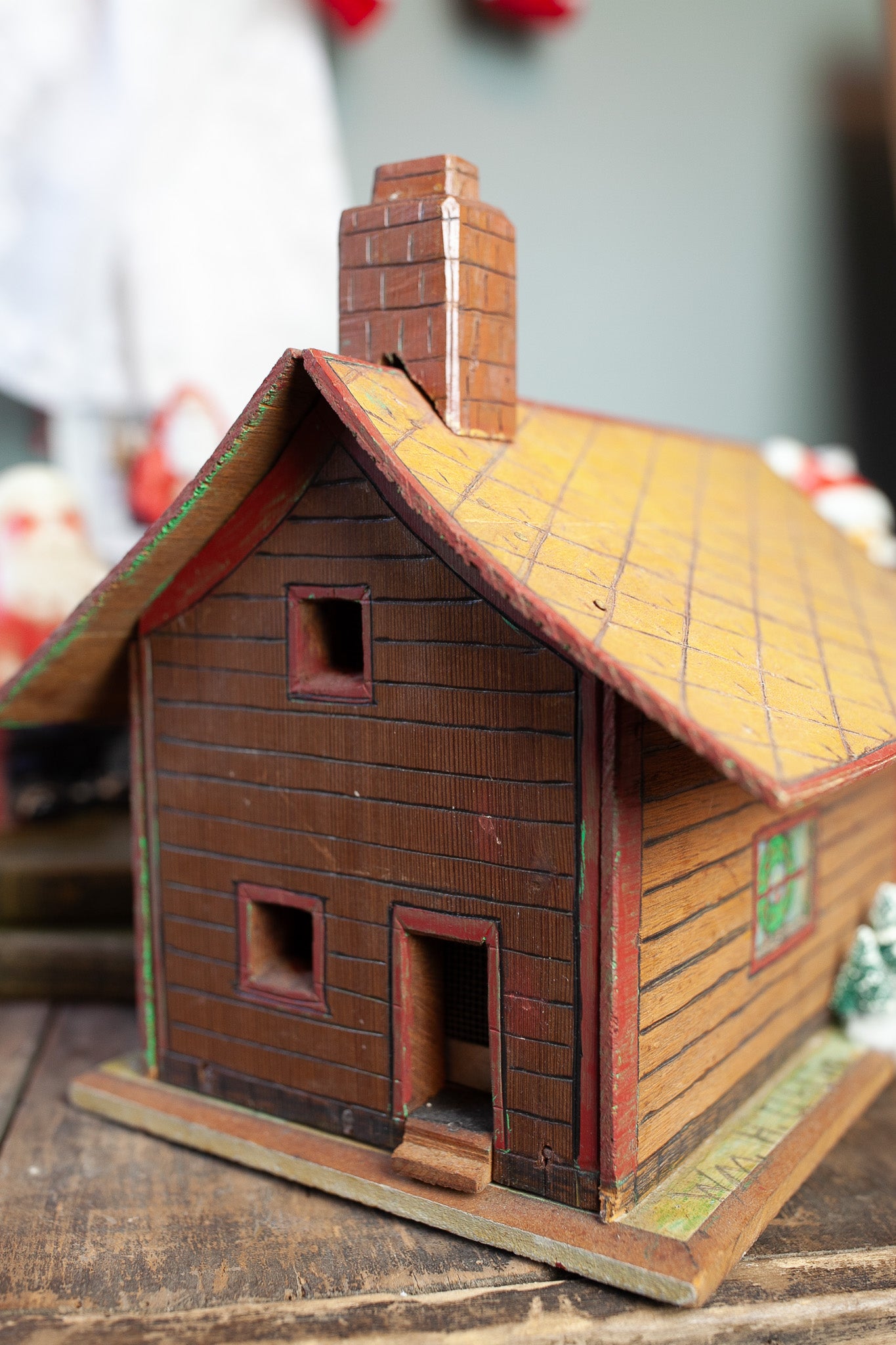 Vintage Handmade Christmas House- Village- Wooden House- Folk art house