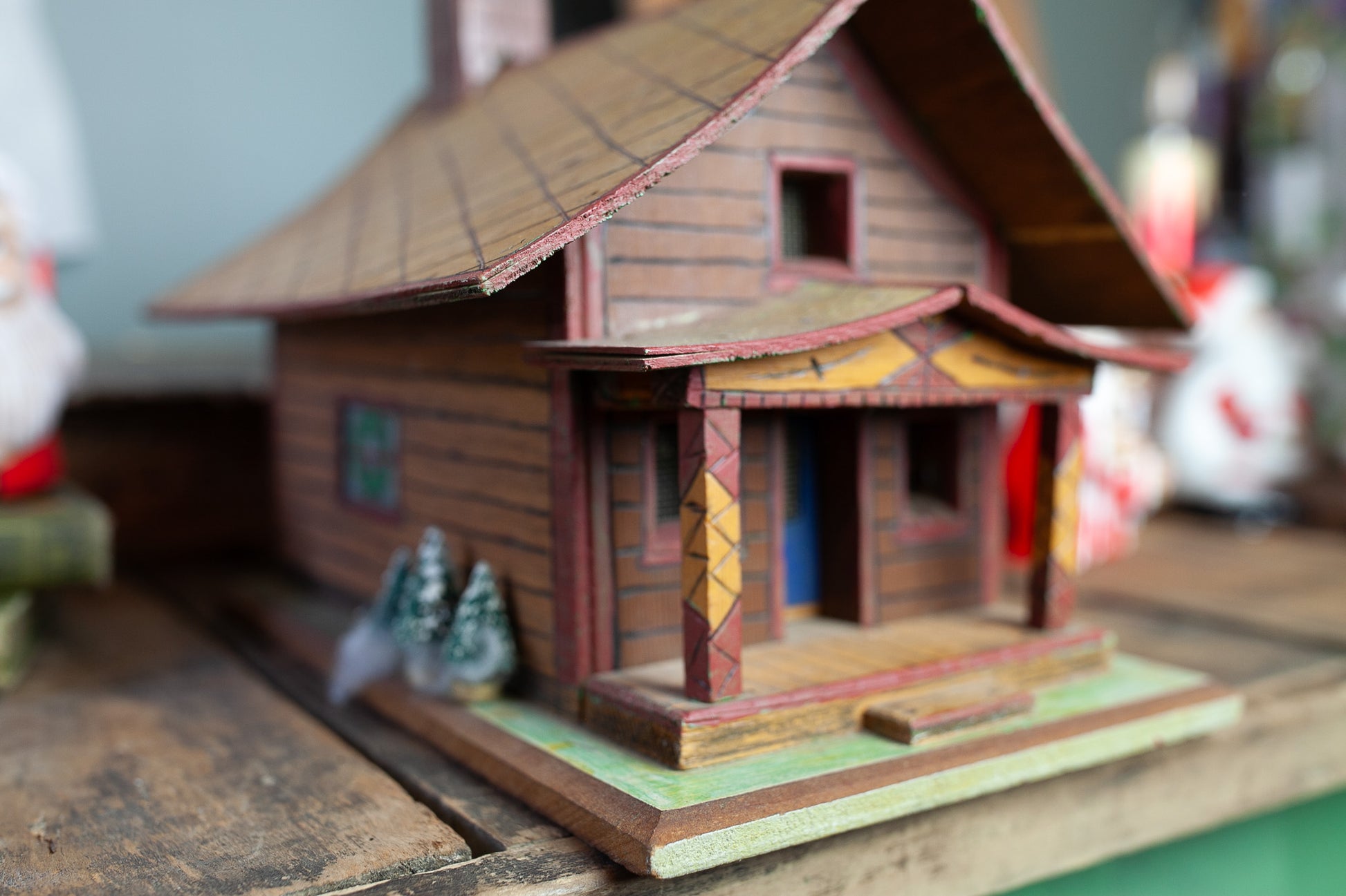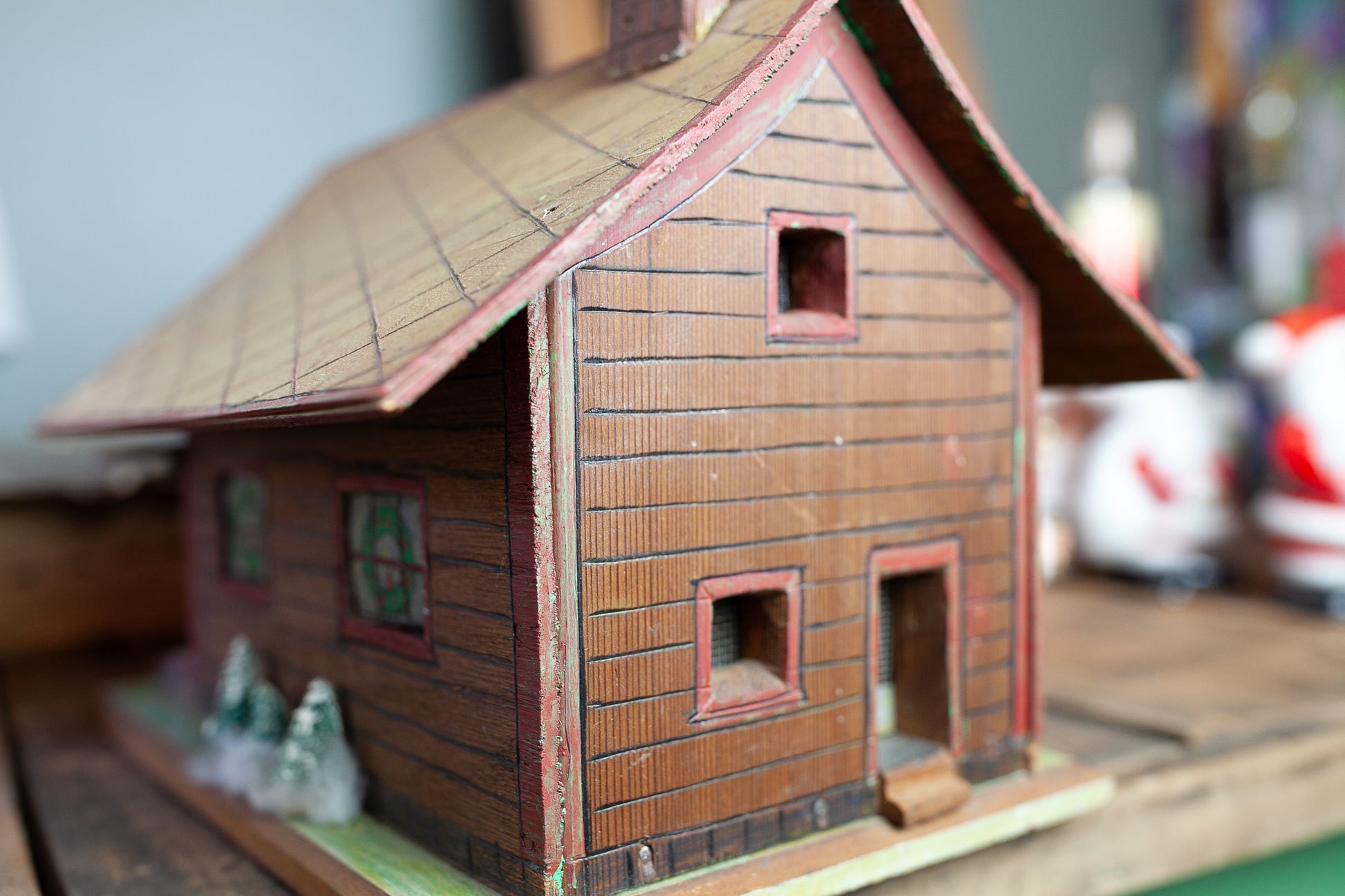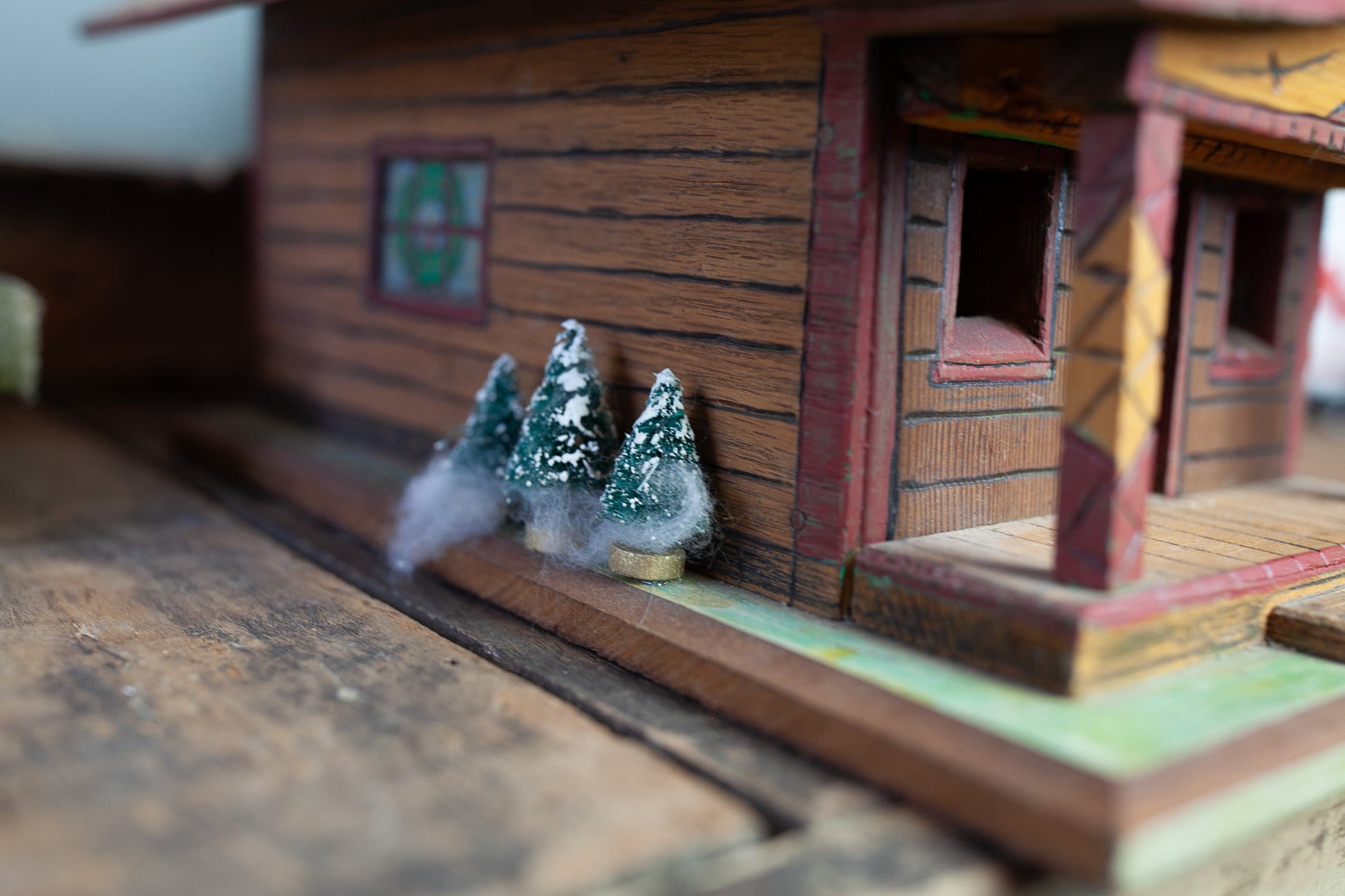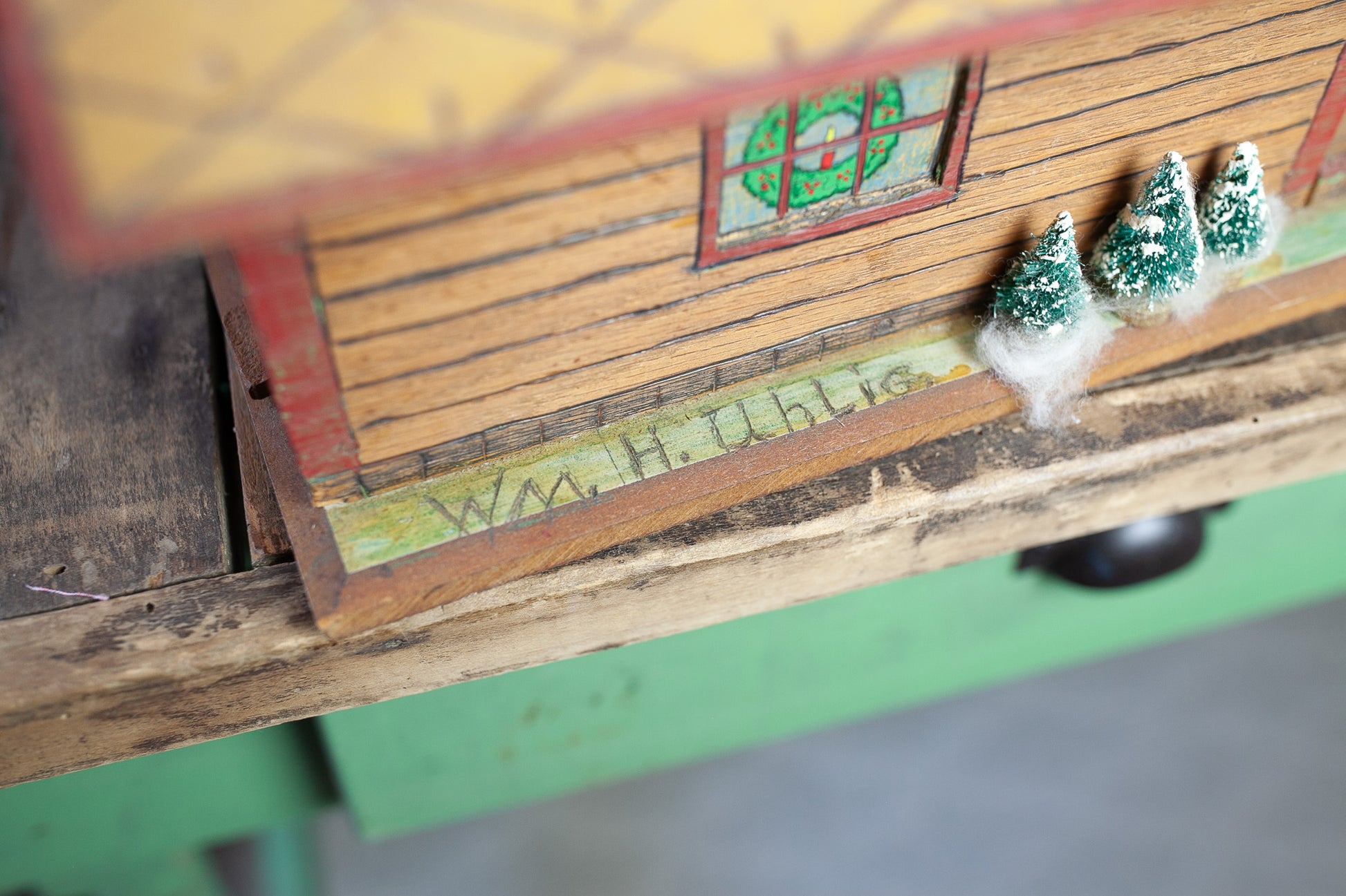 Vintage Handmade Christmas House- Village- Wooden House- Folk art house