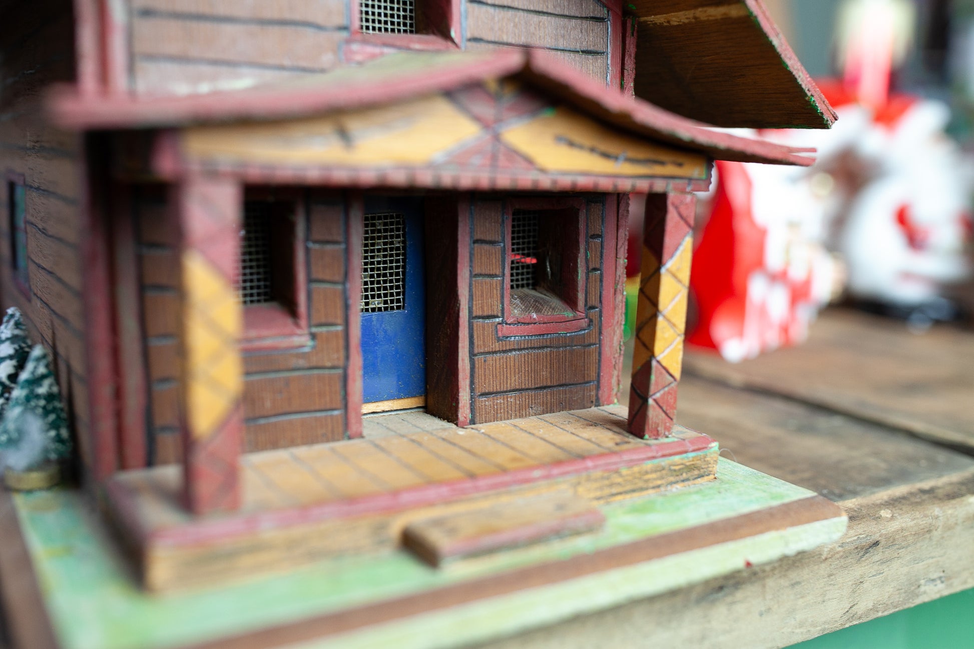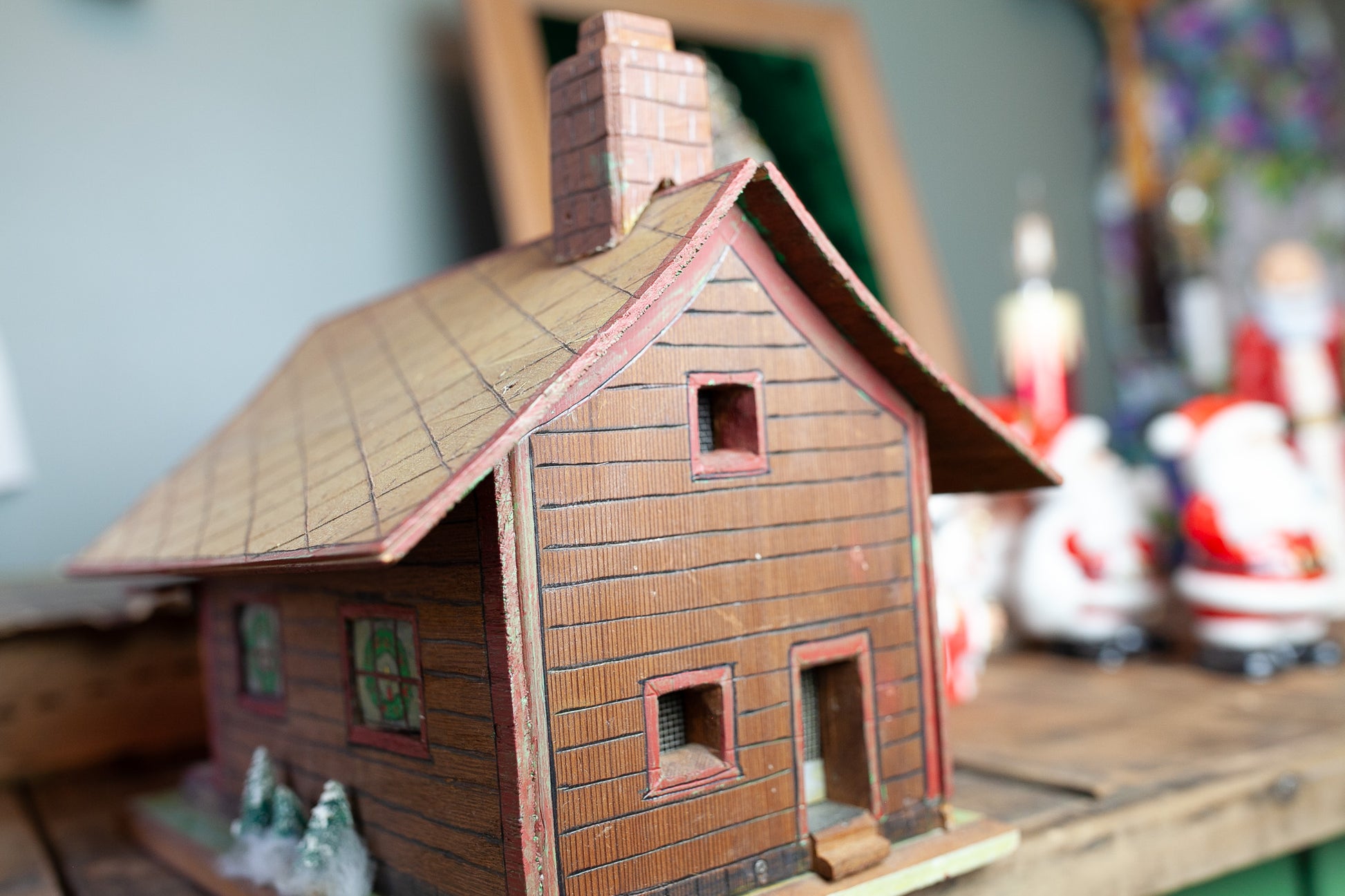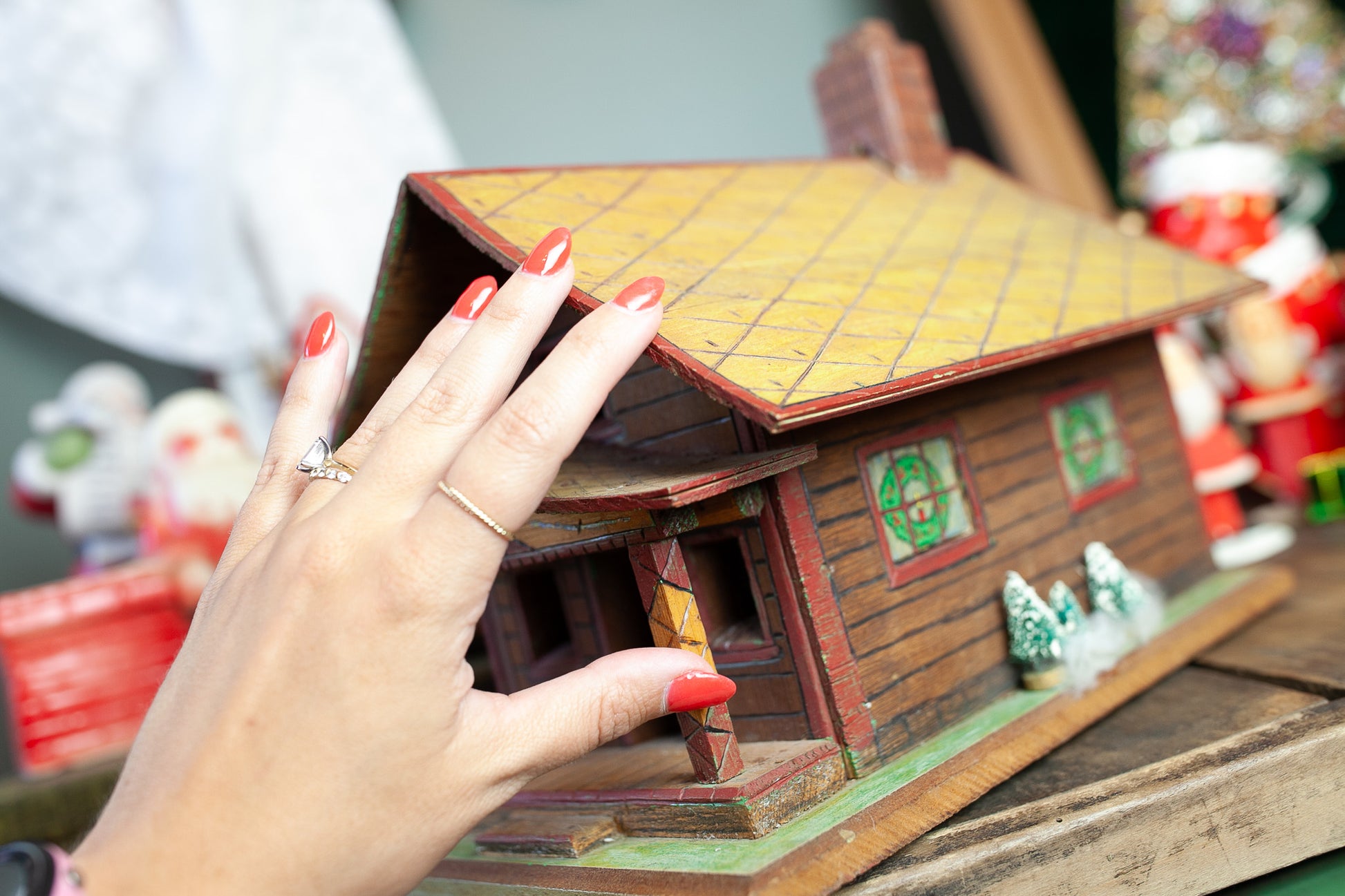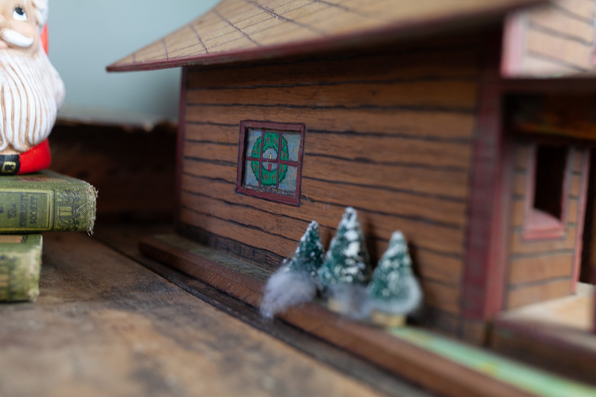 Vintage Handmade Christmas House- Village- Wooden House- Folk art house