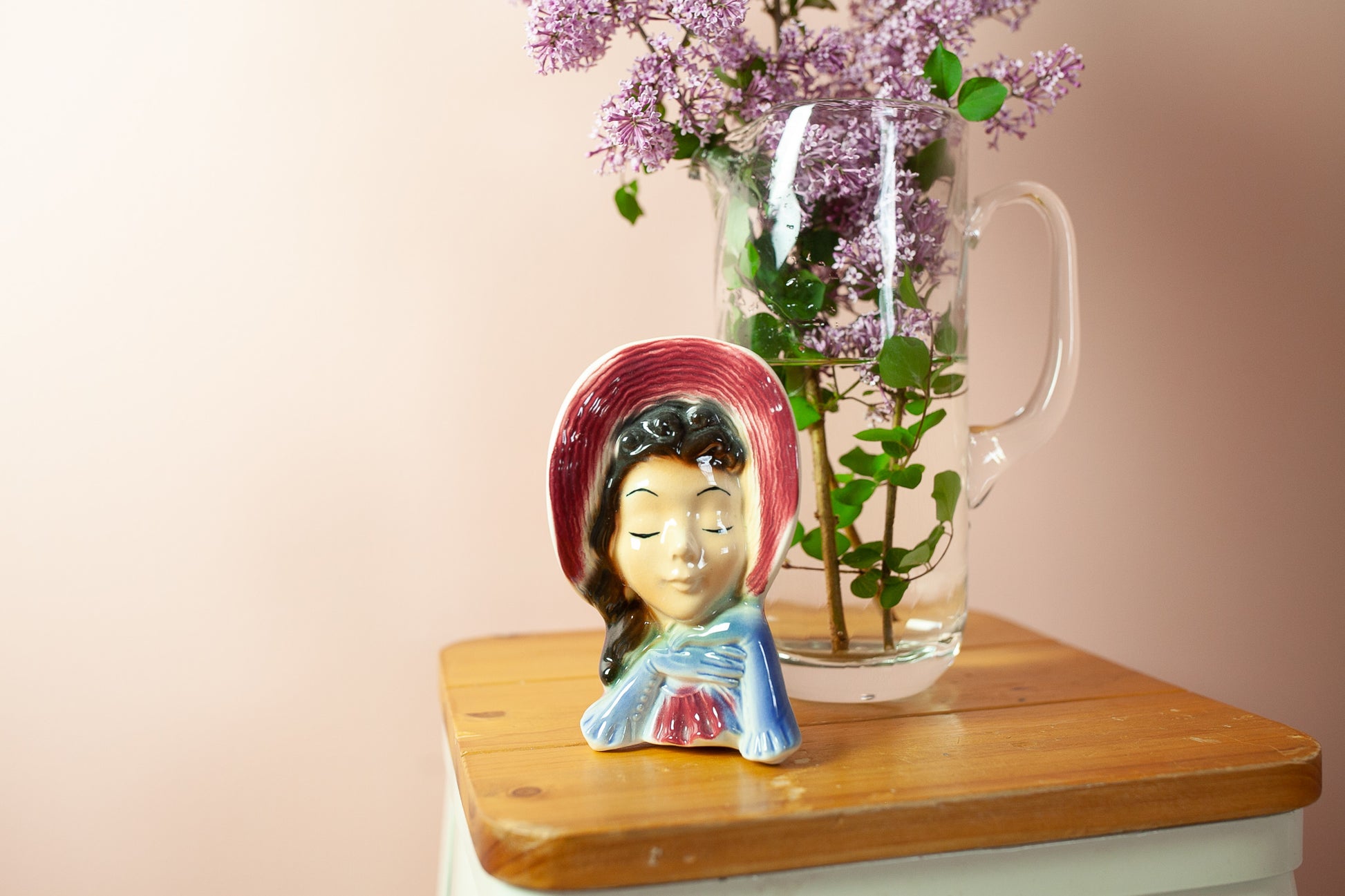 Vintage Head Vase - Lady Head Vase- Royal Copley Wall Pocket