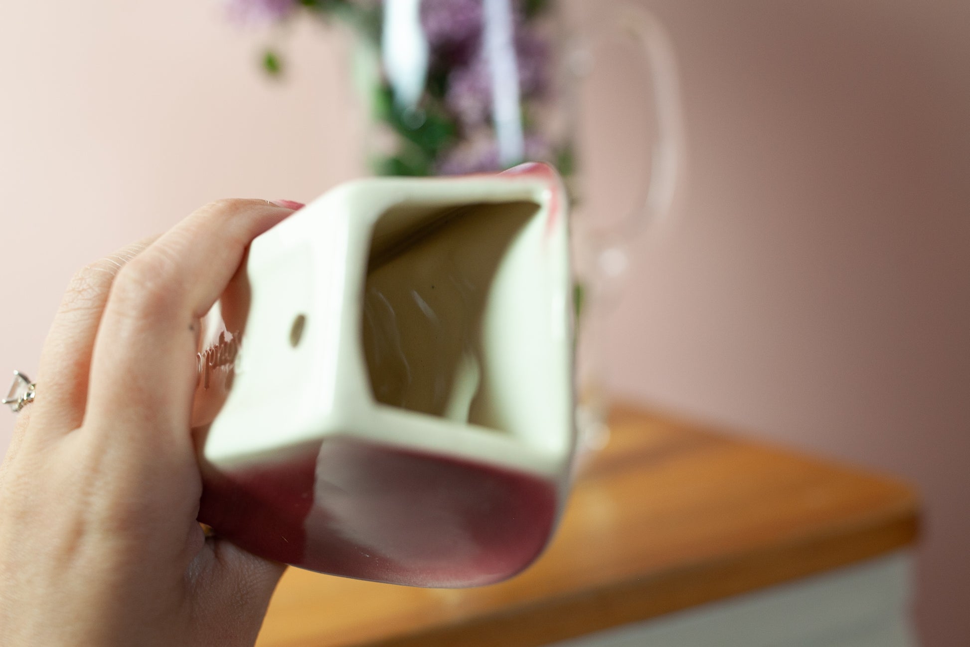 This vintage wall pocket is a lovely lady with her bonnet on and her hands up under her chin. She is free of chips and cracks but has some light crazing in her glaze. She has a hole on the back to hang with or you can use her as a vase. About 5.5" tall by 3.5".