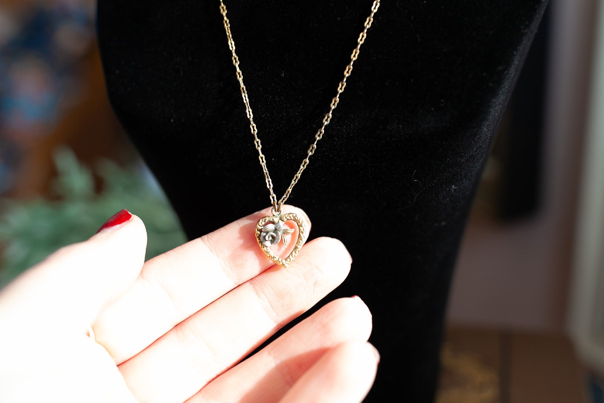 Vintage Jewelry 1928 Brand Heart Necklace with a rose- Heart and Rose