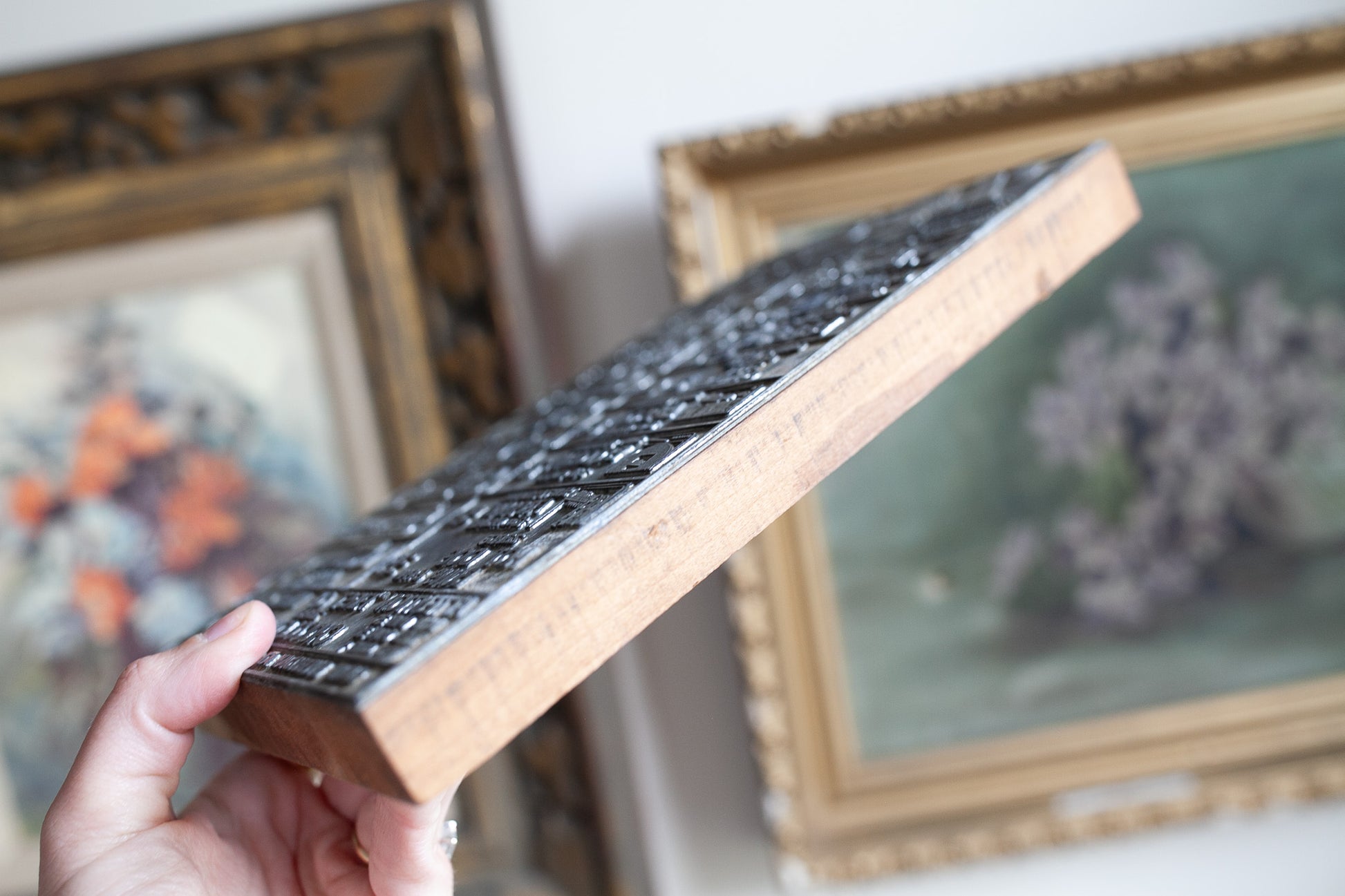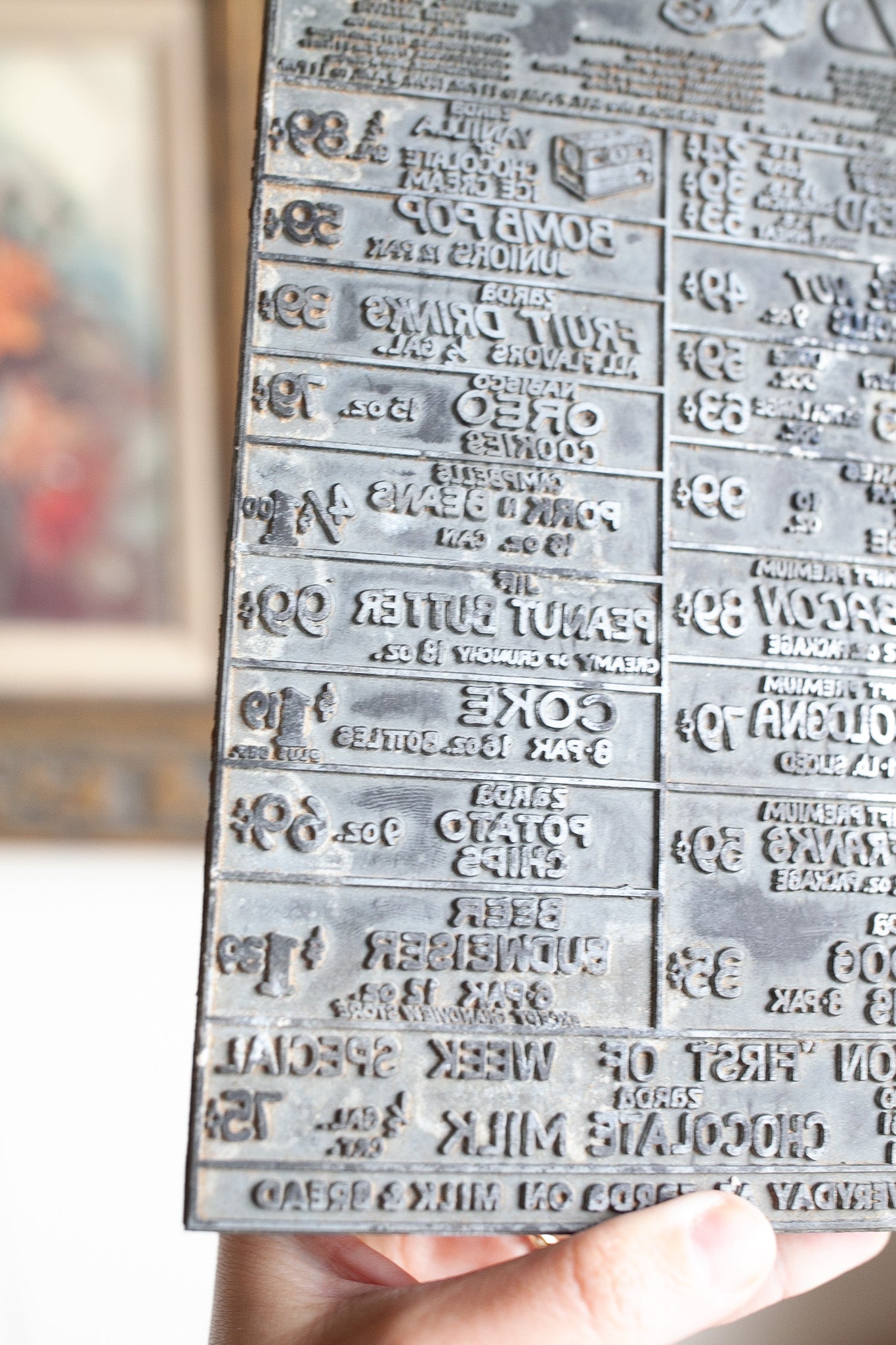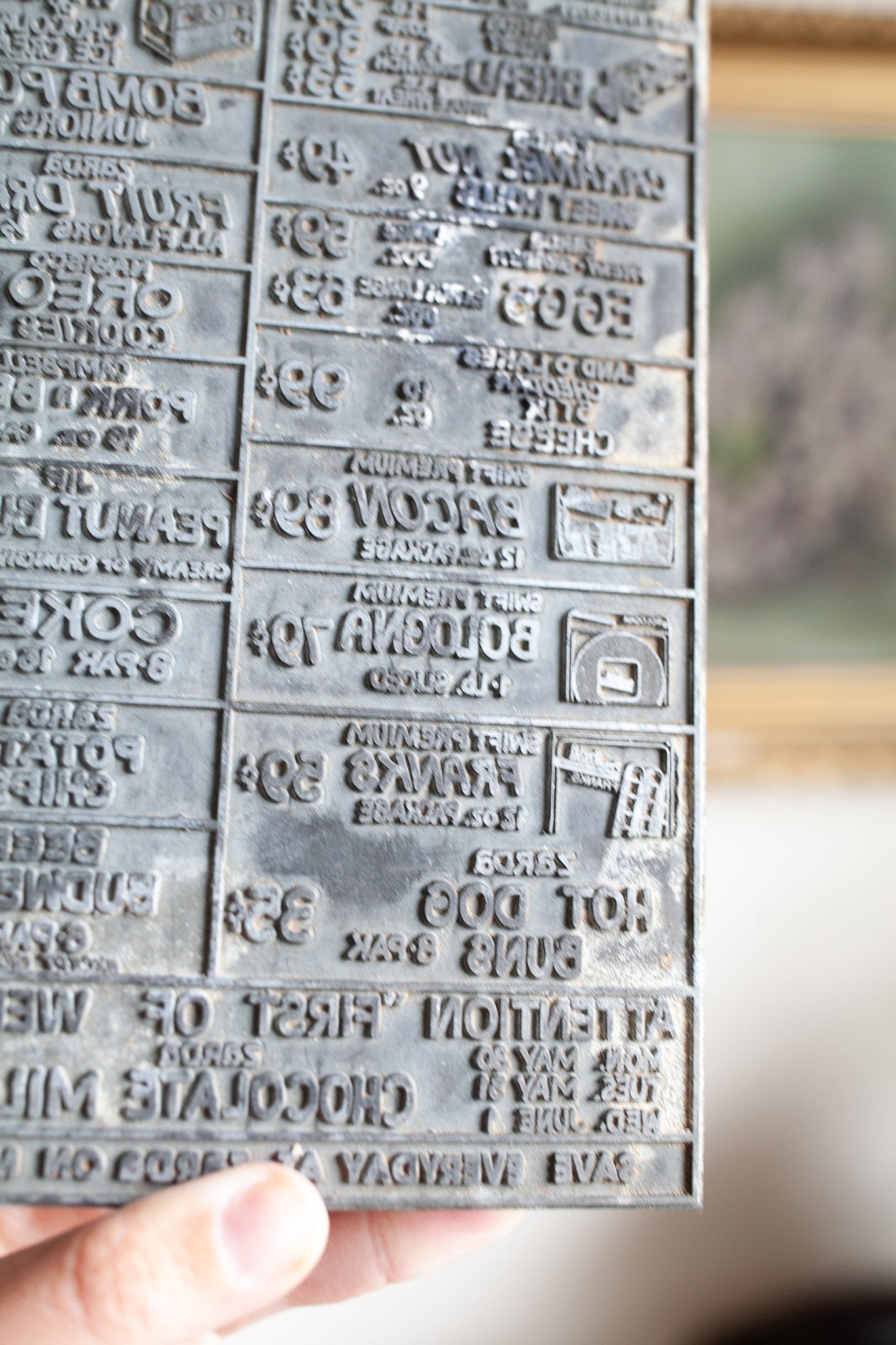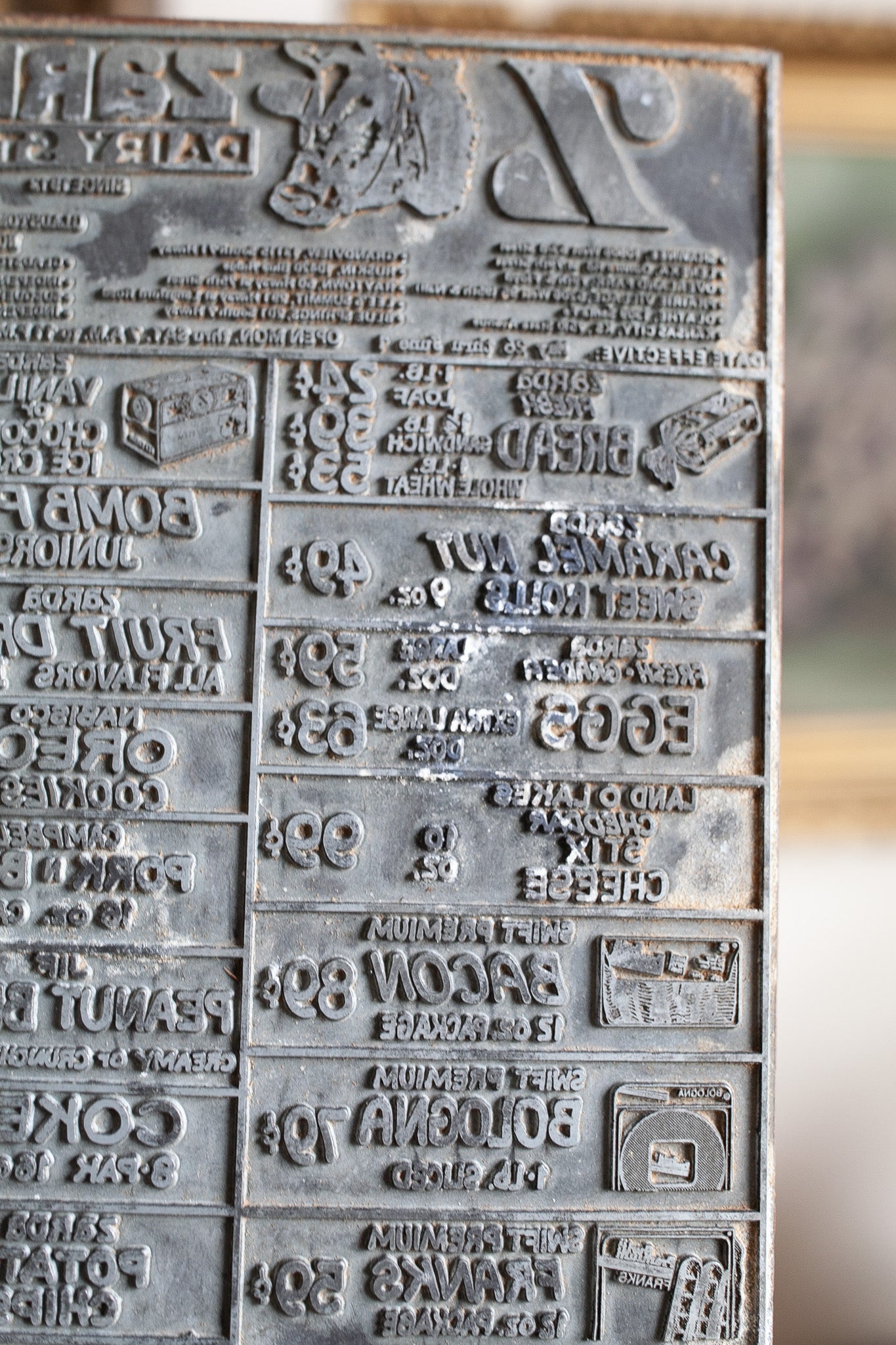 This is a Zarda Dairy Store Menu Stamp/letterpress. The Zarda family created one of the largest dairies in Kansas. Founded by Frank Zarda and his brothers not long after their arrival. It says since 1913 on the menu and was said to have closed and sold the business in 1987. The prices are great... 59cents for a dozen of eggs and ice cream and more on the menu! I could imagine this being a fun decoration for a kitchen! Size is 9.75" x 6 x 1".
