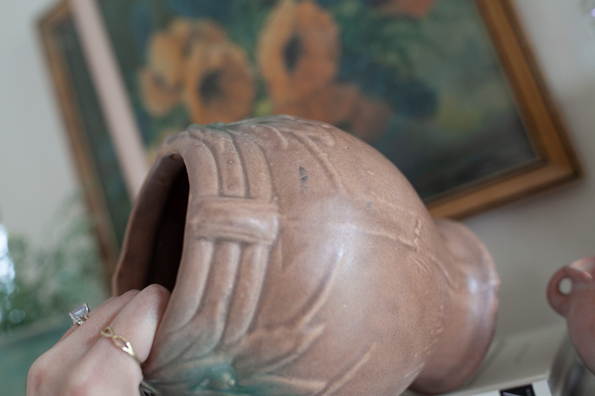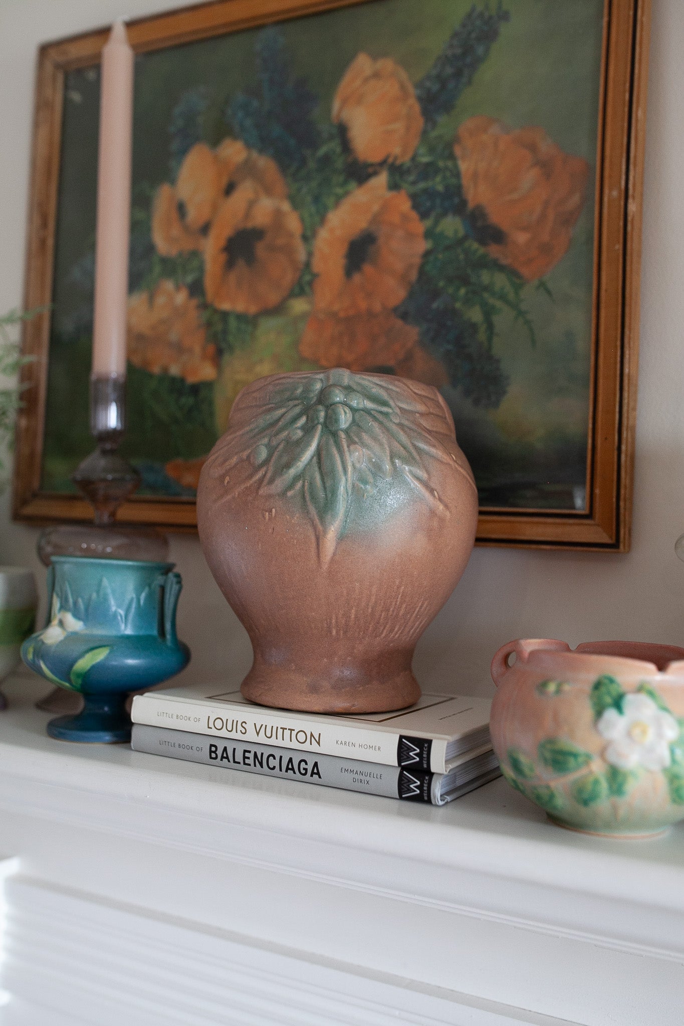 Vintage McCoy Pottery Vase - Leaves and Berries Matte Brown Ceramic Vase