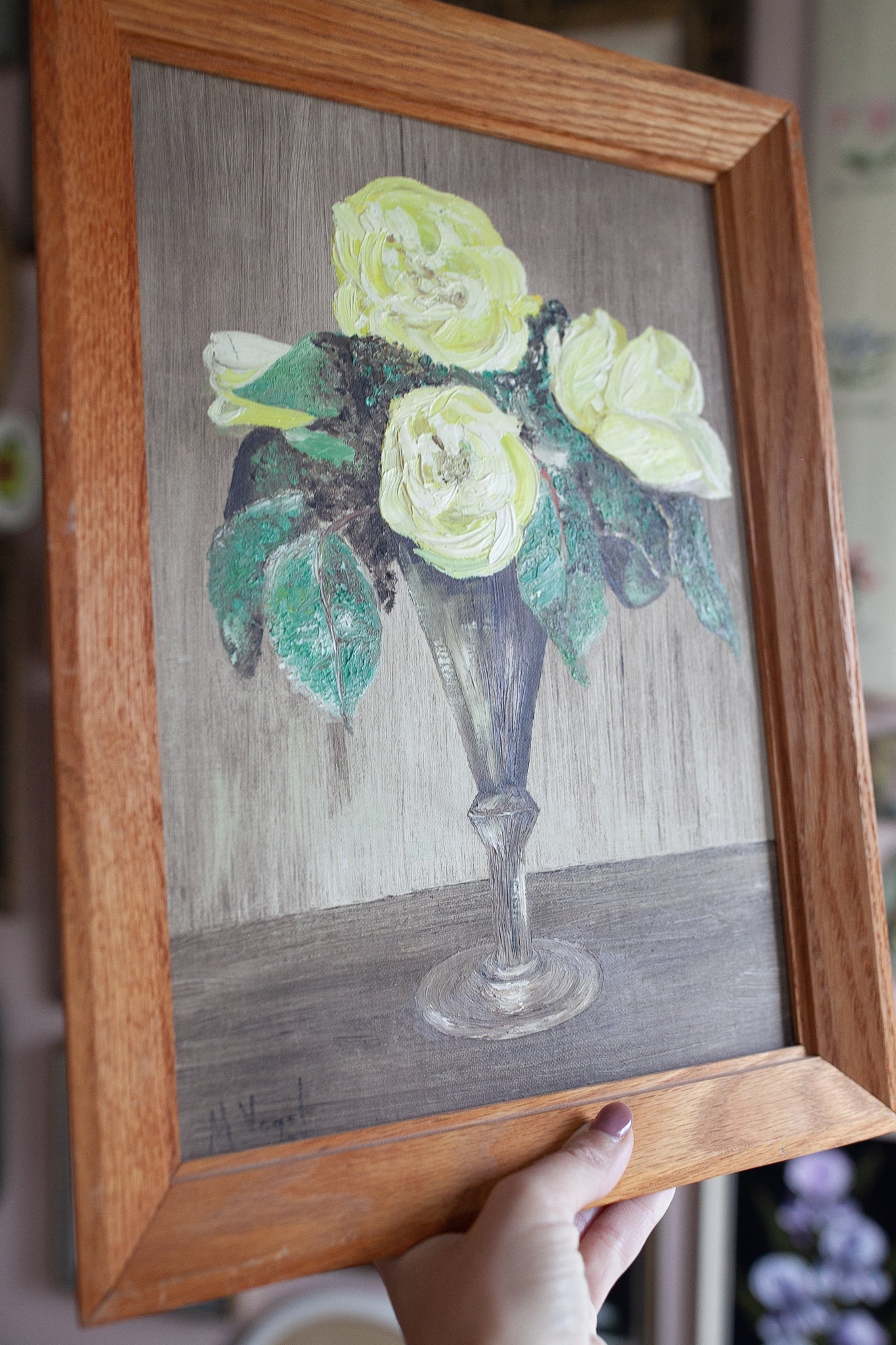 Vintage Rose Floral - Yellow Roses- Original Painting Framed
